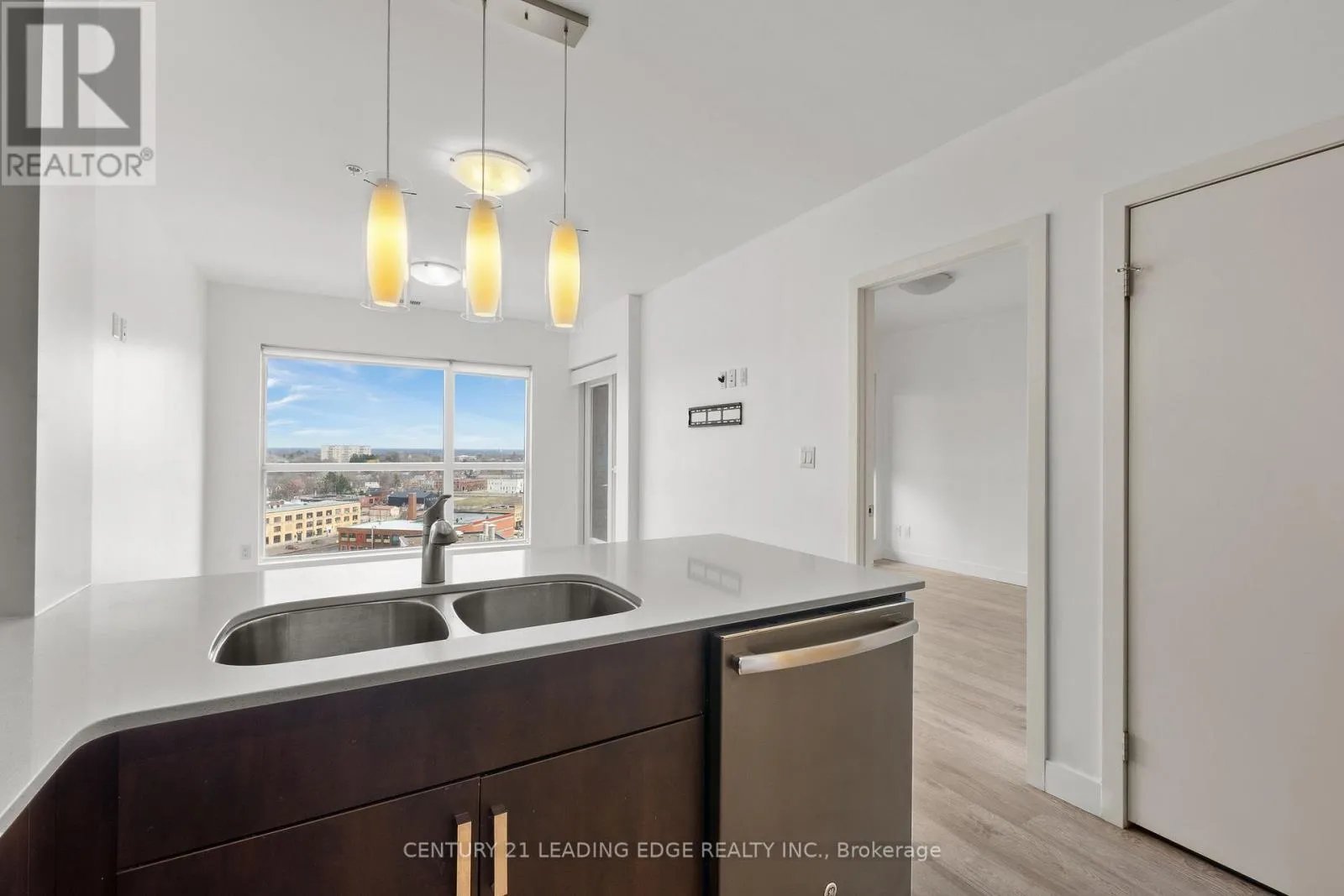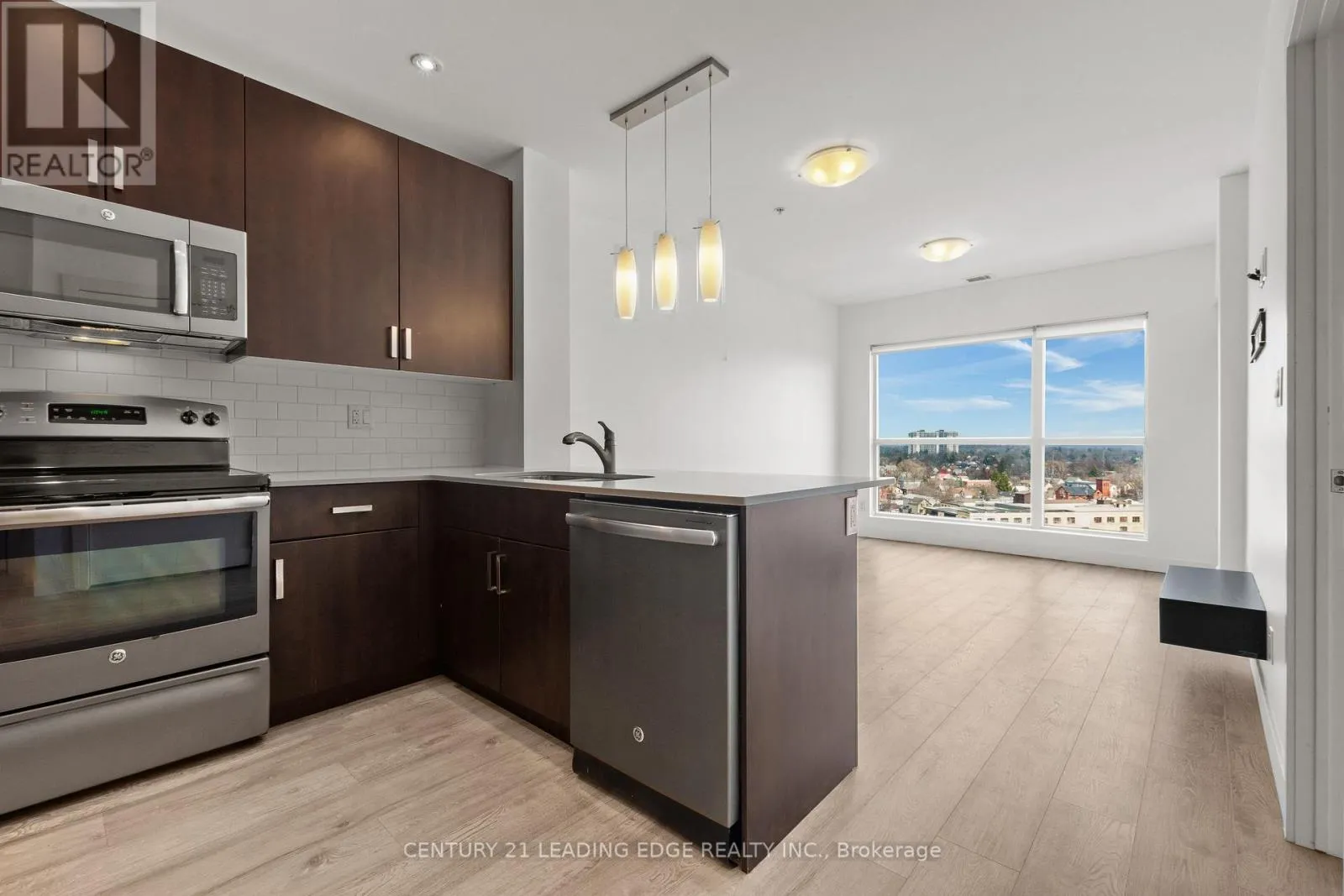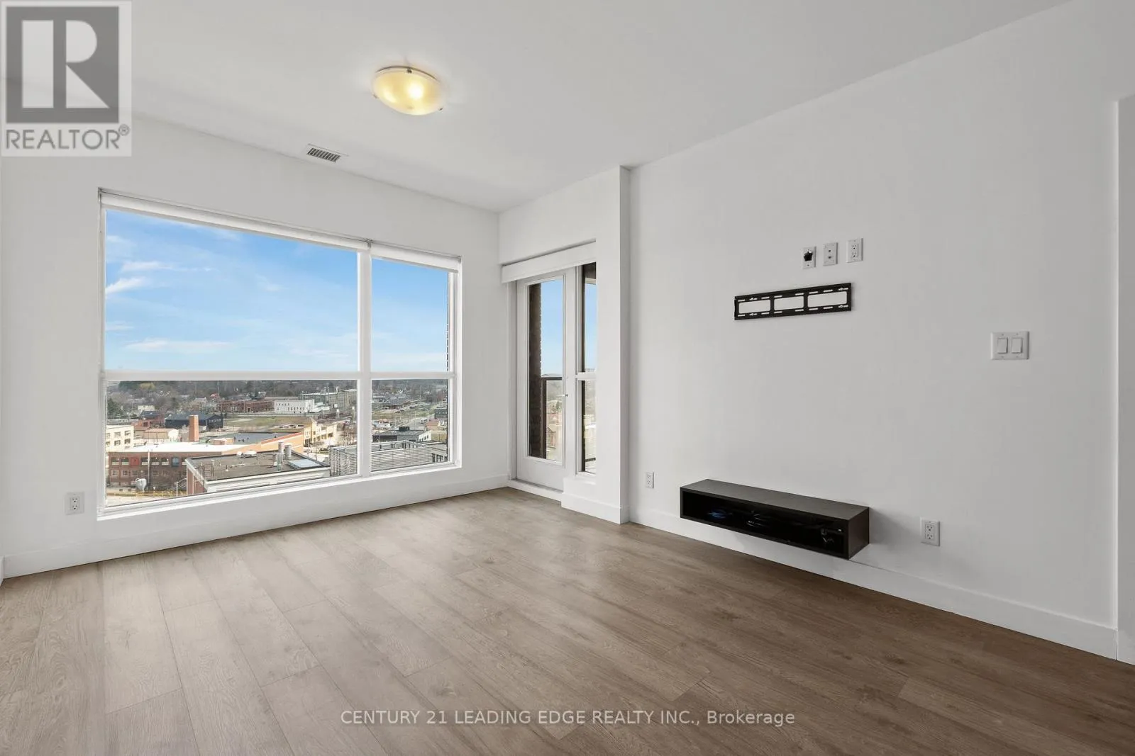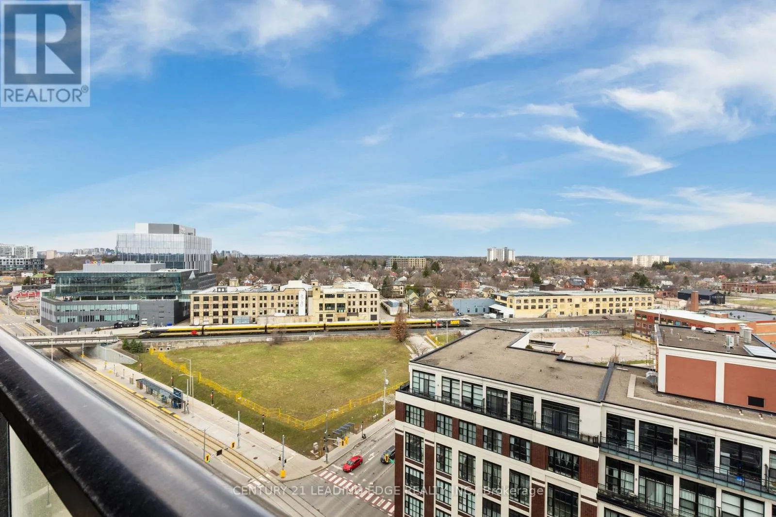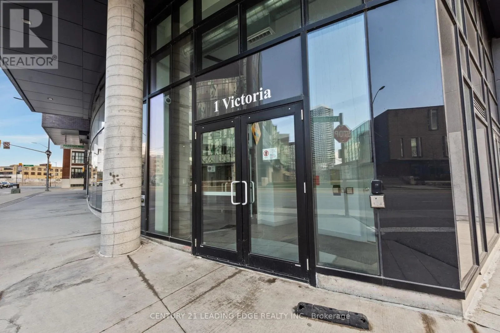 Cross Streets: King St W. ** Directions: Corner of King St W and Victoria St S. Welcome to this 1-bedroom plus den condo at 1 Victoria Street South, located in the heart of downtown Kitchener. This bright and modern suite features a functional open-concept layout, ideal for professionals, first-time buyers, or investors. The spacious primary bedroom offers comfort and privacy, while the versatile den is perfect for a home office or guest space. Floor-to-ceiling windows fill the unit with natural light and provide beautiful city views from the 13th floor. Enjoy premium building amenities, including a fully equipped fitness centre, theatre/media room, stylish party lounge, and a rooftop terrace with stunning city views. One parking space and one locker are included. Steps to the LRT, tech hubs, Kitchener GO Station, Google headquarters, restaurants, cafés, shopping, and Victoria Park. Enjoy convenient urban living in a prime location. (id:27476)