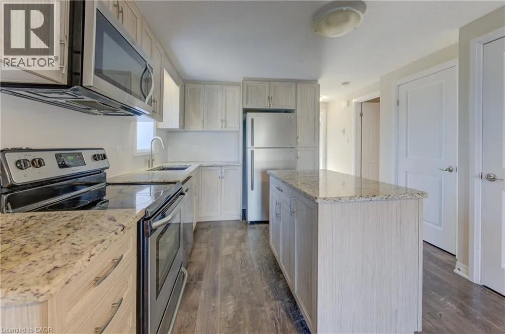 OTTAWA STREET, SOUTH FROM WESTMOUNT ROAD Welcome to this bright and inviting CORNER END UNIT urban townhouse condo! This desirable âBrocktonâ model is a bungalow-style end unit, offering added privacy along with a spacious, open-concept layout. Featuring 2 bedrooms, 1 bath, ensuite laundry, a welcoming front patio, and a private balcony overlooking peaceful greenspace, Thoughtful upgrades include granite countertops, a functional kitchen island, stainless steel appliances, and the added use of a washer, dryer, and water softener. Situated in a well-maintained modern complex with a playground, and ideally located close to shopping, highway access, walking trails, and public transit. Available for June 1st occupancy in a smoke-free building. (id:27476)