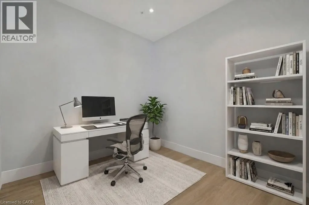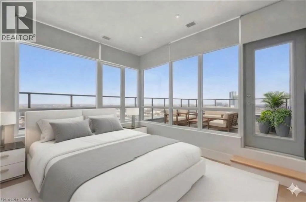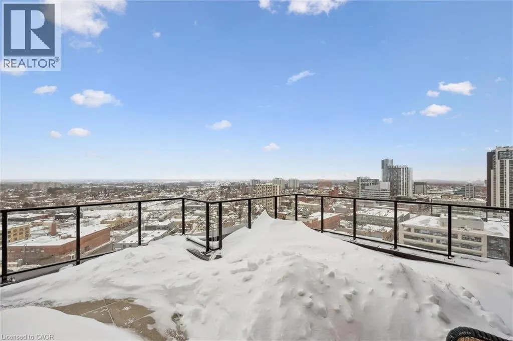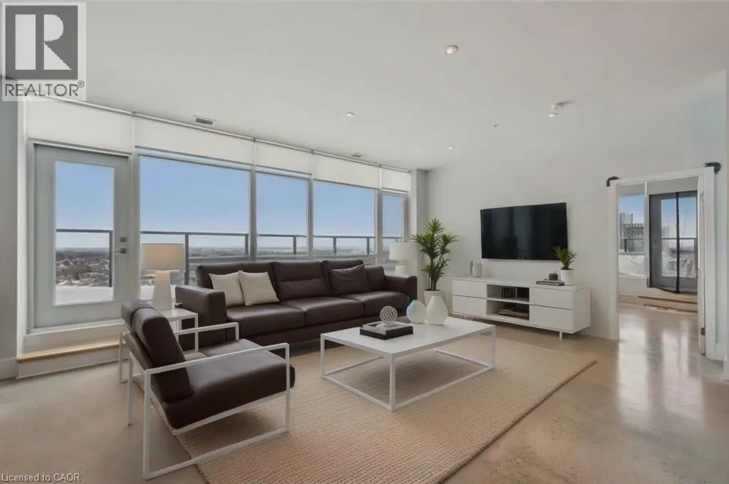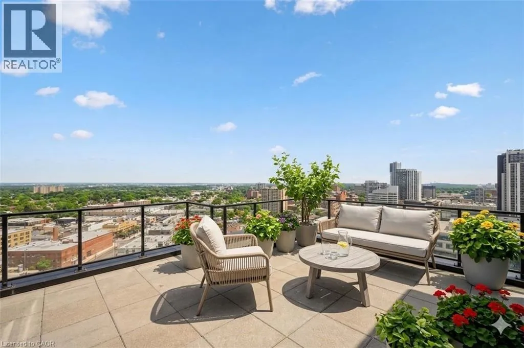 Welcome to this stunning 3-bedroom, 2-bathroom penthouse condo offering approximately 1,400 sq ft of modern urban luxury. Perched high above the city, this rare suite features a massive wrap-around balcony with sweeping views and even a gas hook up for your BBQ or fire table â perfect for entertaining, relaxing, and soaking in the downtown skyline. Inside, the unit showcases polished concrete floors throughout for a sleek, contemporary feel, complemented by custom cabinetry and premium finishes. The chef-inspired kitchen is equipped with quartz countertops, a gas stove, and a fridge with built-in water and ice, blending style and functionality seamlessly. Enjoy the convenience of upscale building amenities including a fully equipped gym, stylish party room, private theatre room, and a beautifully designed rooftop terrace complete with planters, BBQs, and outdoor dining areas. An exceptional opportunity to own a spacious penthouse in one of downtown Kitchenerâs most sought-after buildings â steps to transit, tech hubs, dining, and entertainment. (id:27476)