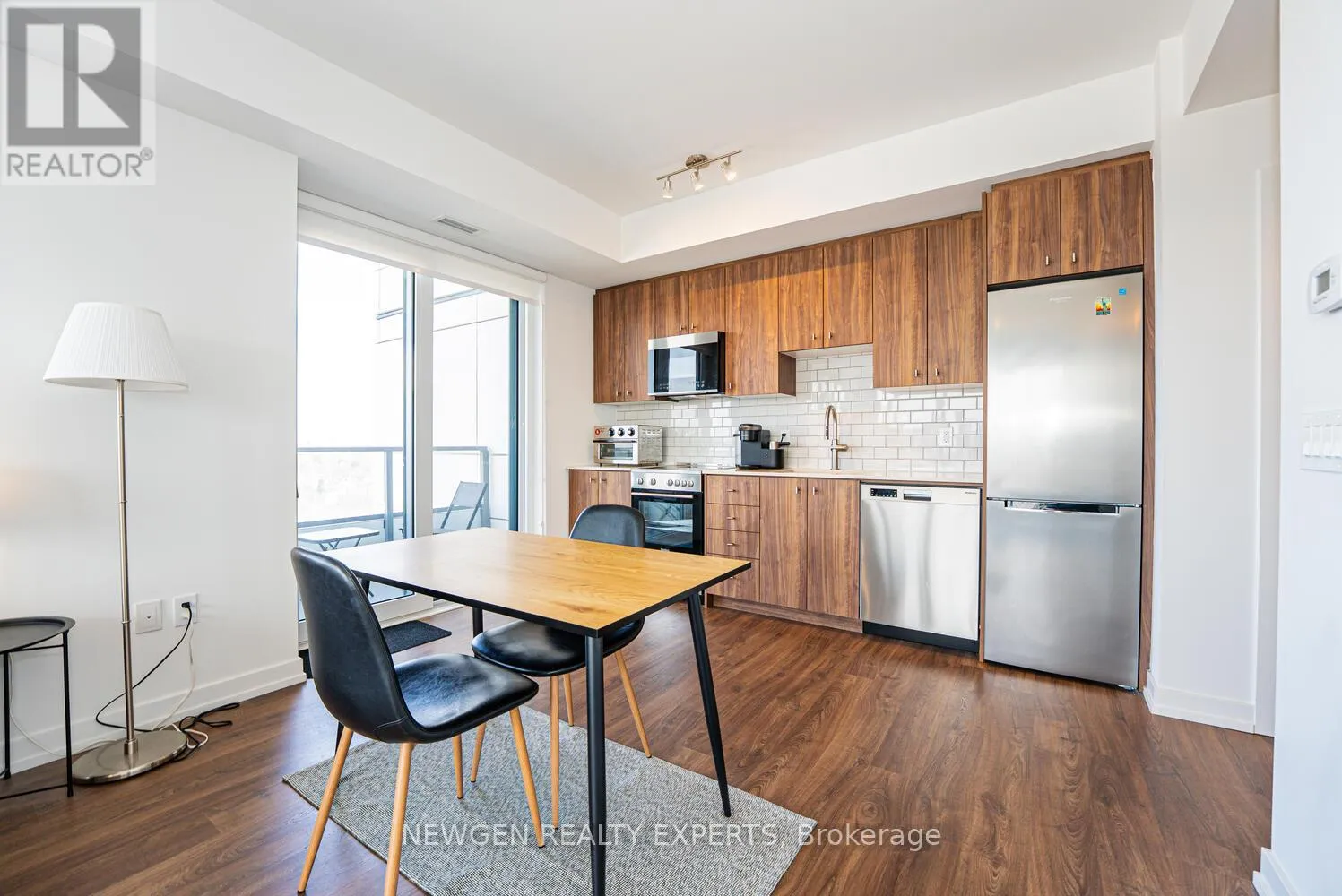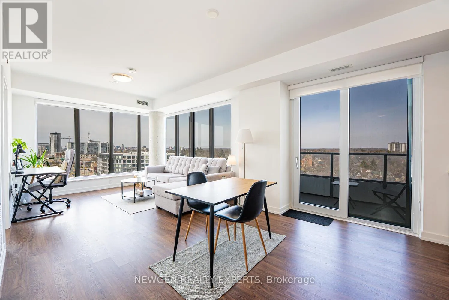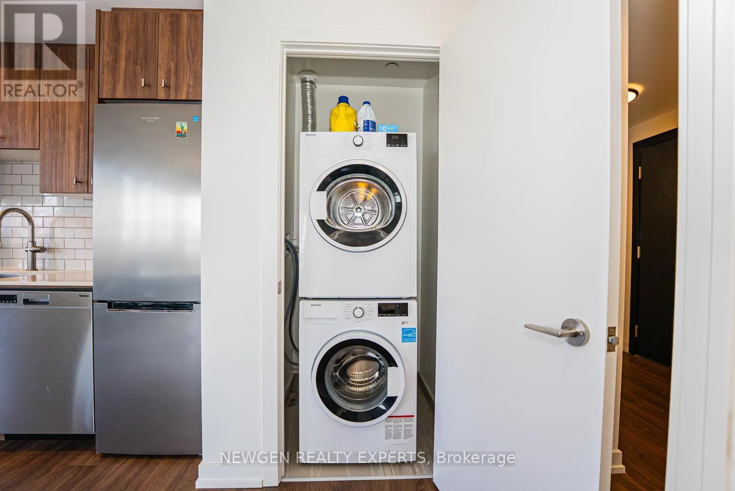 King St. W. & Wellington St. S Step Into This Spectacular Corner Unit Condo In The Highly Desirable Station Park Towers, One Of Waterloo Region's Newest And Most Prestigious Residences, Ideally Located In The Heart Of The Kitchener-Waterloo Downtown Tech And Innovation District. Offering 625 Sq Ft Of Living Space With An Additional 60 Sq Ft Balcony. Total 685 Square Feet, This Modern 1 Bedroom, 1 Bathroom Unit Showcases Elegant & Luxurious Finishes, Keyless Entry & 11Ft. Ceilings Throughout, And Breathtaking Panoramic North And West City Views. The Open Concept Living Space Is Perfect For Entertaining Guests Or Unwinding After A Busy Day. The Kitchen Features Sleek Quartz Countertops, Stainless Steel Appliances, And Sliding Doors To The Private Balcony. The Living Room Boasts Large Floor-To-Ceiling Windows Allowing Lots Natural Light To Flood The Space. The Bedroom Features A Large Closet, Floor to Ceiling Window, And The Bathroom Thoughtfully Designed With Modern Finishes. Additional Features Include In-Suite Laundry And One Underground Parking Space. Amenities include: Two-lane Bowling Alley with lounge, Premier Lounge Area with Bar, Pool Table and Foosball, Private Hydro pool Swim Spa & Hot Tub, Fitness Area with Gym Equipment, Yoga/Pilates Studio & Peloton Studio , Dog Washing Station / Pet Spa, Landscaped Outdoor Terrace with Cabana Seating and BBQs, Concierge Desk for Resident Support, Private bookable Dining Room with Kitchen Appliances, Dining Table and Lounge Chairs, A Smart Parcel Locker System for secure parcel and food delivery service. Located Just Steps Away From The Go Train, Ion Light Rail Transit, Google, Trendy Shops, And Vibrant Nightlife. This Condo Delivers The Perfect Blend Of Style, Comfort, And Urban Convenience. (Heat and Internet Is Included, Hydro and Water not included) (id:27476)