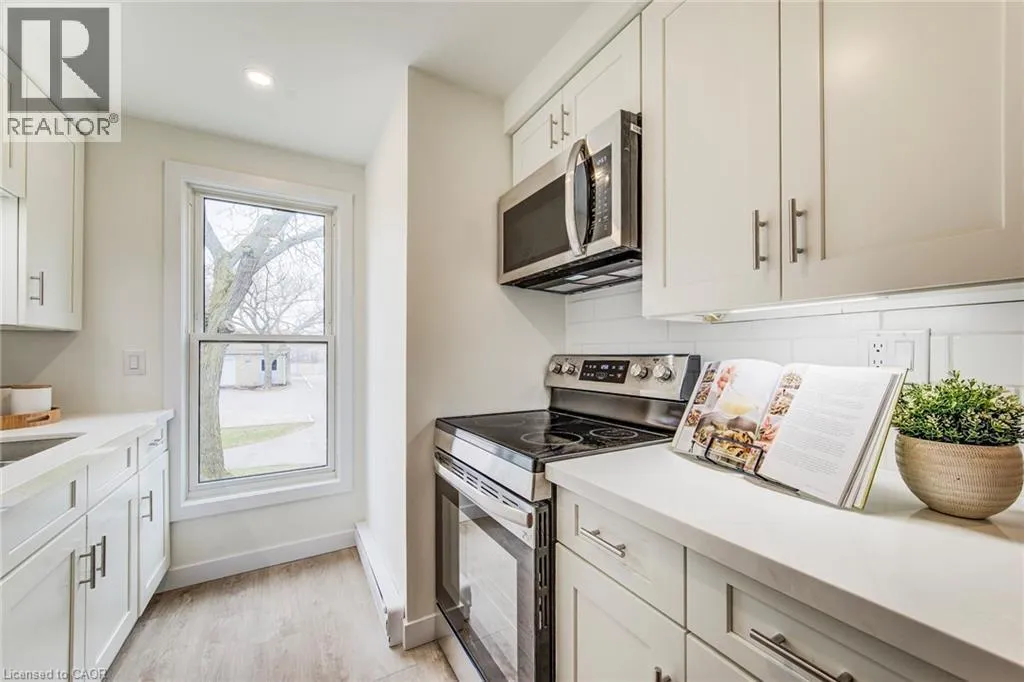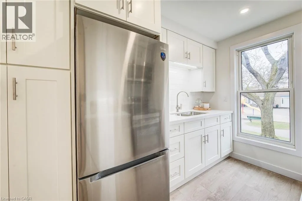 nearest intersection Ottawa & River Fully renovated and move-in ready, this 2-bedroom townhouse condo has been professionally refreshed from top to bottom. Featuring all new flooring, trim, modern lighting, an updated kitchen with clean contemporary finishes, and a fully redone bathroom, the space feels bright, cohesive, and low-maintenance. The layout offers a functional living and dining area with two nicely-sized bedrooms, plus a lower level with in-suite laundry and flexible space for storage, a gym, or rec area. One parking space included with additional street parking or rentable on site parking. Turnkey, updated, and ready to go. (id:27476)