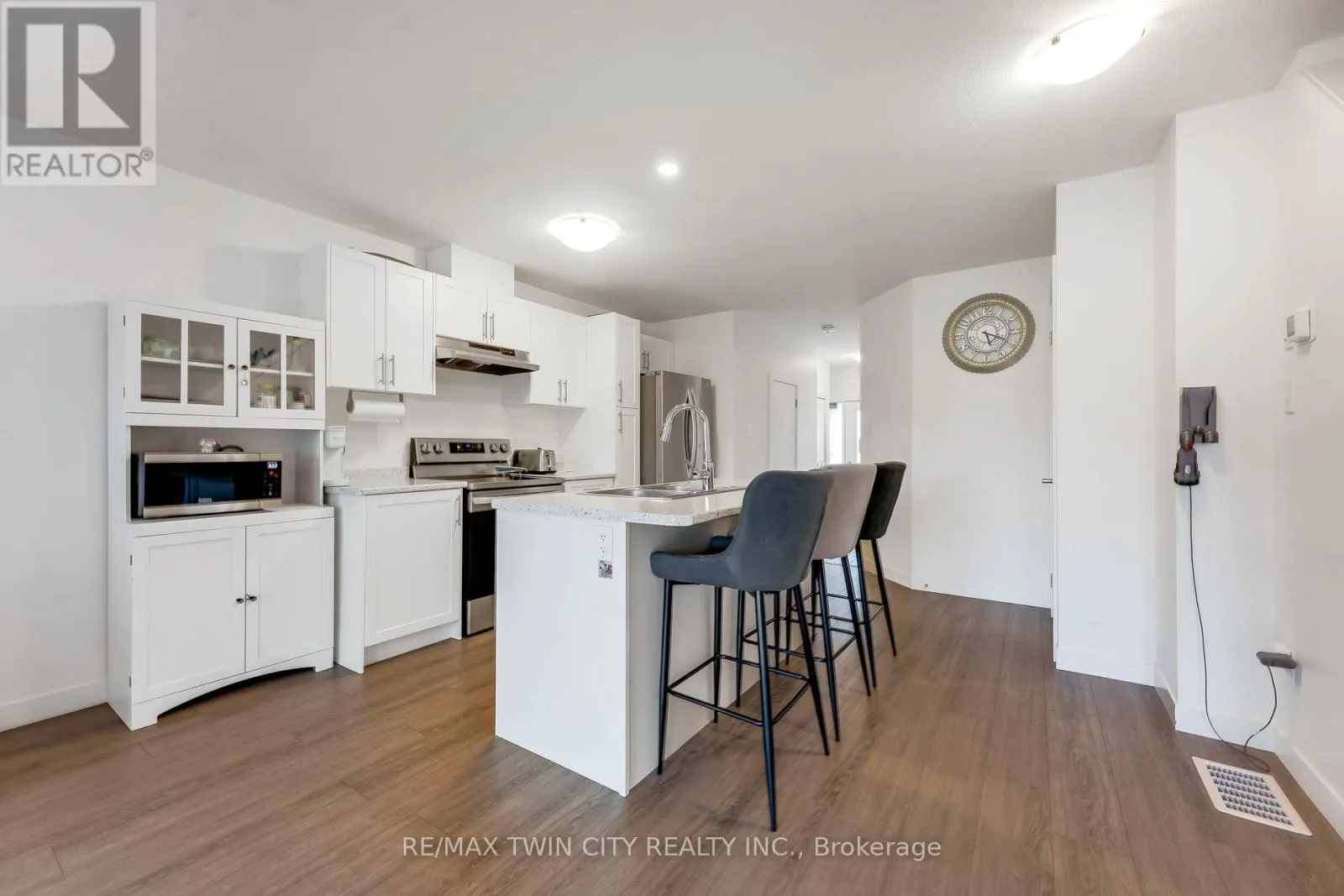 Cross Streets: SADDLEBROOK CRT. ** Directions: Saddlebrook Court To Pony way. Welcome to 91 Pony Way, a stunning, move-in ready freehold townhouse that feels just like new, perfectly situated in the highly desirable and family-friendly Huron Park neighbourhood of Kitchener. Step inside to discover a bright and airy open-concept main floor, enhanced by durable, contemporary vinyl flooring that flows seamlessly throughout. Designed with both living and entertaining in mind, the spacious layout effortlessly connects the living and dining areas, creating a warm and inviting atmosphere filled with natural light. Beautifully appointed kitchen featuring a large center island, sleek cabinetry and stainless steel appliances. From the Living area, step out to the finished deck overlooking the backyard, an ideal space for summer barbecues, morning coffee or relaxing evenings. Upstairs, there are 3 generously sized bedrooms, including a luxurious primary retreat complete with a walk-in closet and a private 4pc ensuite. 2 additional well-proportioned bedrooms and another full 4pc bathroom offer ample space for growing families. Adding to the home's modern convenience, network cable wiring is available throughout the home, making it ideal for remote work, gaming or seamless connectivity in every room. The partially finished basement adds incredible value and potential, already framed and with electrical wiring in place, ready for your personal touch to create additional living space, a recreation room or even a home gym. This home also offers exceptional convenience with parking for up to 3 vehicles (1-car garage and 2 on driveway. Perfectly located near top-rated schools such as Oak creek, Jean Steckle Public School, Huron Heights Secondary School, this home is ideal for families. Enjoy the convenience of Huron Natural Area and easy access to shopping, dining and everyday amenities. This is a rare opportunity to own a stylish, turnkey home in one of Kitchener's most sought-after neighborhoods. Don't miss your chance to call this exceptional property home. (id:27476)