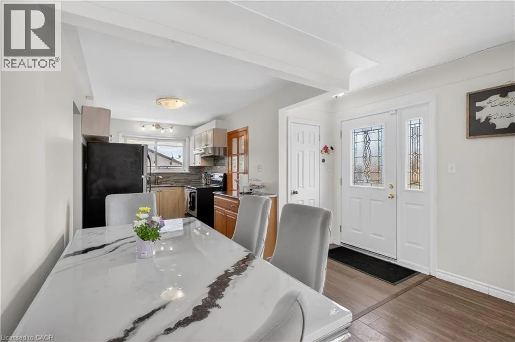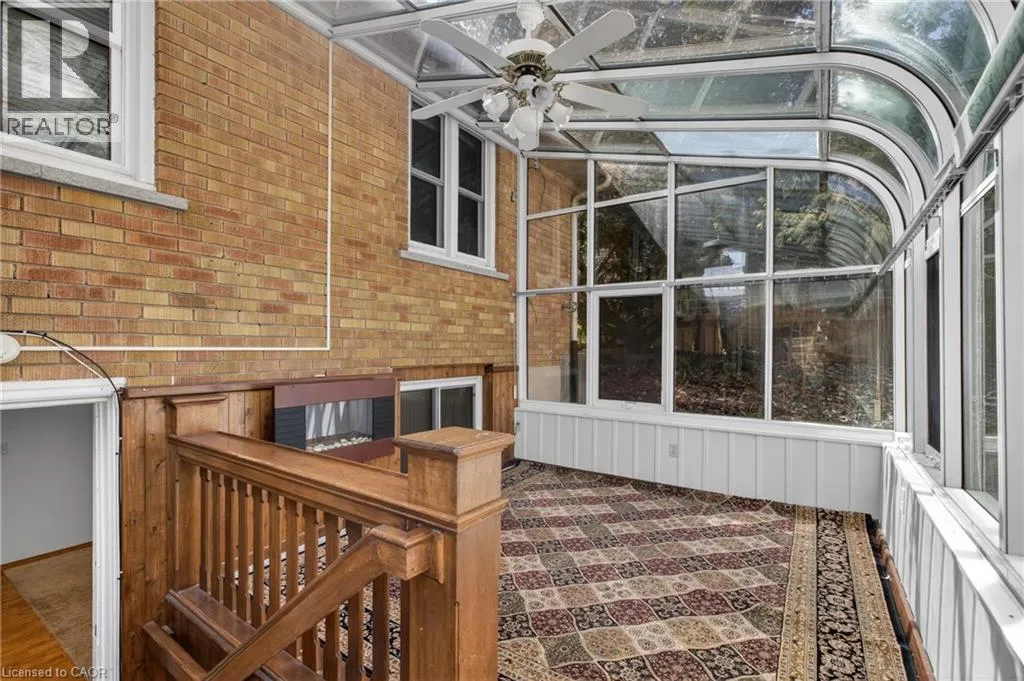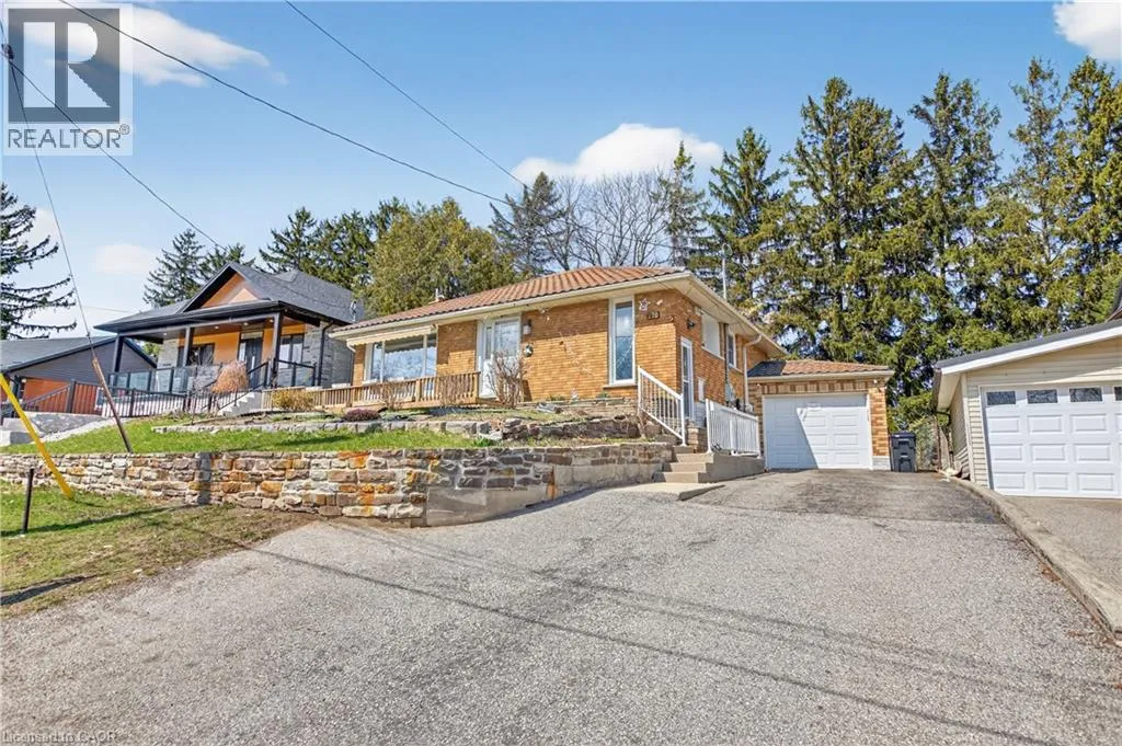 Head West off of Stirling. Charming brick bungalow located in a desirable Kitchener neighbourhood, just minutes from the scenic wooded trails of Lakeside Park, with quick access to the expressway, shopping centres, and all everyday amenities. This home features 3 bedrooms on the main level, along with an open-concept living and kitchen area highlighted by large windows that fill the space with natural light. The basement offers a self-contained accessory apartment with a separate entrance, featuring a kitchenette, bedroom, full bathroom, and a spacious living area with an electric fireplace plus access to a sunroom/solarium for year-round enjoyment. This versatile space can be used for additional family living or as a rental suite to generate income and help offset mortgage costs. Enjoy the outdoors in a sprawling backyard complete with a shed and ample space to create your own beautiful garden retreat. A heated detached garage, durable steel roof and driveway parking for 3+ vehicles add convenience and functionality. Vacant possession availableâupstairs tenant leaving end of April. (id:27476)