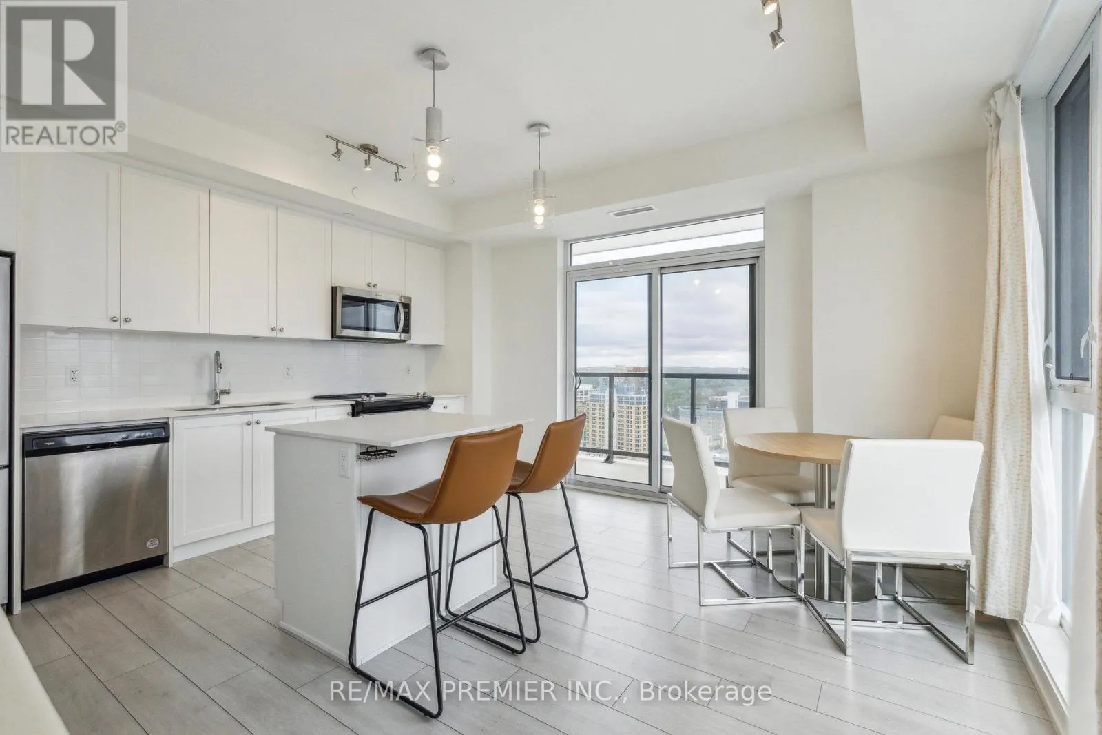 King St and Yonge St Need a Furnished Unit...Welcome to 55 Duke Street West, Unit 1709, Kitchener! This Bright & Spacious 996 Sq Ft Corner End Unit with Wrap Around 167 Sq Ft balcony will take your breath away. This 2-bedroom, 2-bathroom condo unit is on the 17th floor of Young Condos and offers modern urban living in the heart of downtown Kitchener. The open-concept design features a sleek kitchen with stainless steel appliances, microwave hood fan, breakfast island, plenty of storage, and chic finishes. The kitchen overlooks the dining room and flows effortlessly into the spacious living area, filled with natural light from the wall of windows that offer stunning south west facing views of the city and Victoria Park. Its the perfect space to relax or entertain guests! Step outside to your private wrap around balcony and take in two separate views of the amazing downtown Kitchener skyline ideal for unwinding after a busy day or sipping your morning coffee. The primary bedroom is a cozy retreat with a generous walk-in closet and its own ensuite bathroom. The second bedroom, with its large windows and beautiful city views, makes a great space for guests, family, or a home office. Living here means you'll have access to fantastic amenities like a fully-equipped gym, a bike studio, and a rooftop walking track with sweeping views of Kitchener-Waterloo. You can also entertain in the party room or enjoy a BBQ in the outdoor area. Plus, this unit includes a bike locker and is just steps from downtown Kitchener, the LRT and public transit, making commuting a breeze. With restaurants, shops, city hall, Google, universities, and entertainment all within reach, you'll have everything you need right at your doorstep. Don't miss out book a viewing today! Ideal for working professionals, students, couples. Available For Mid and Long Term Rental. (id:27476)