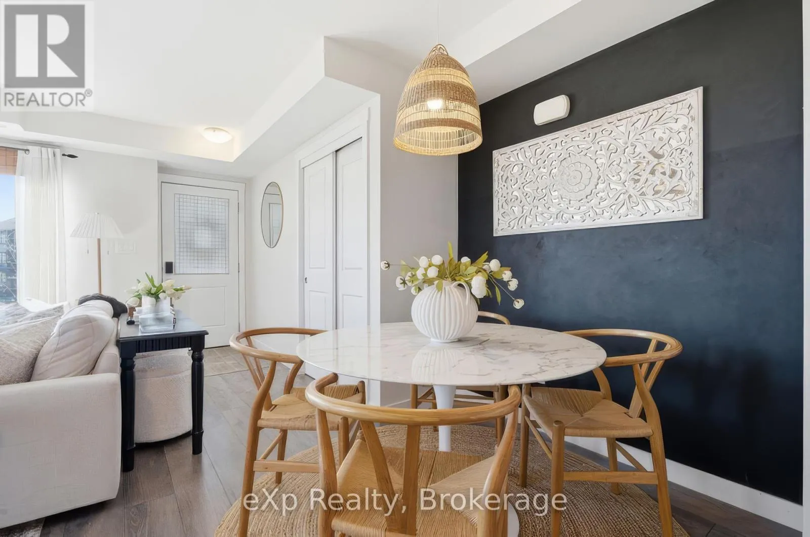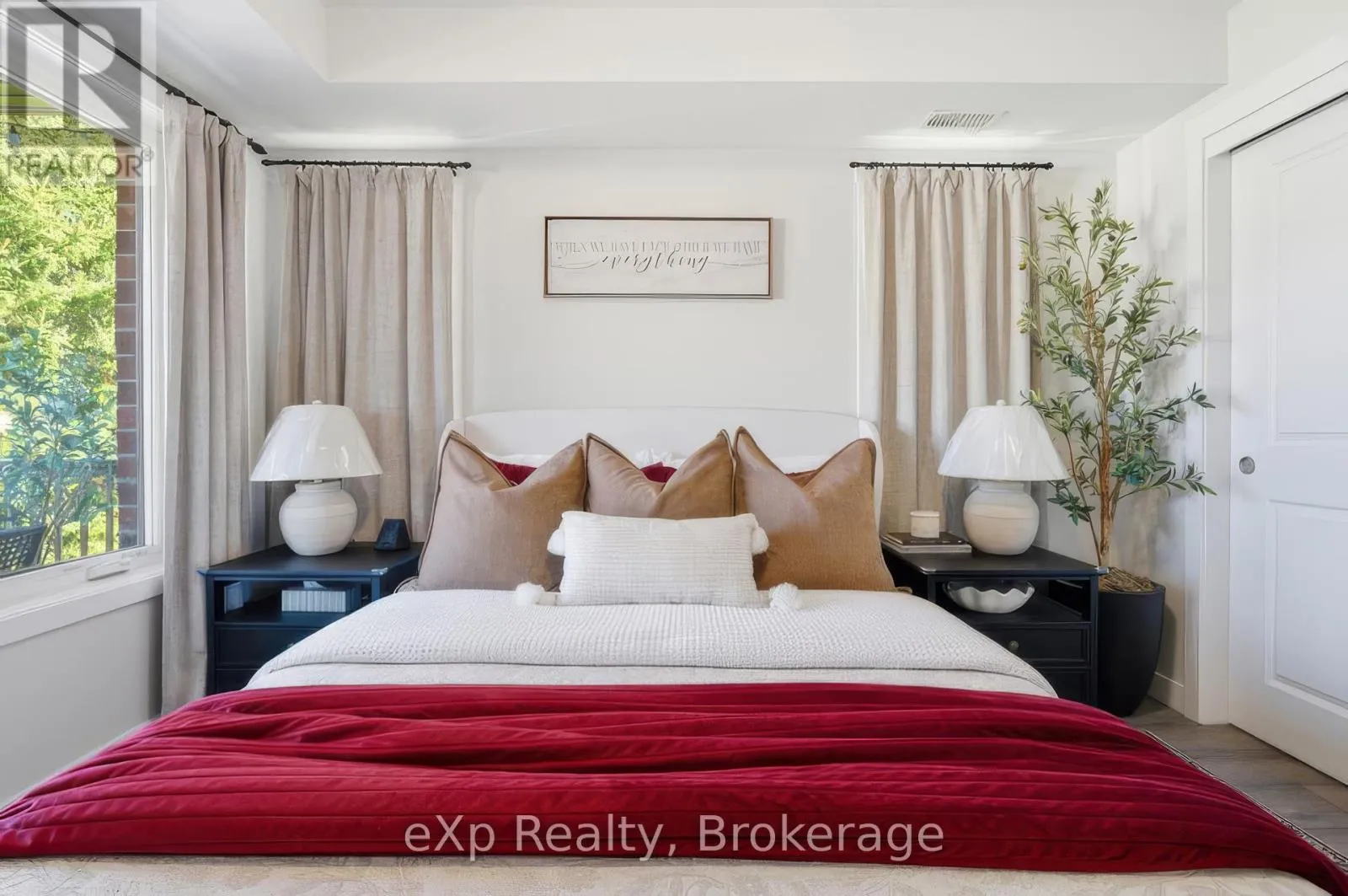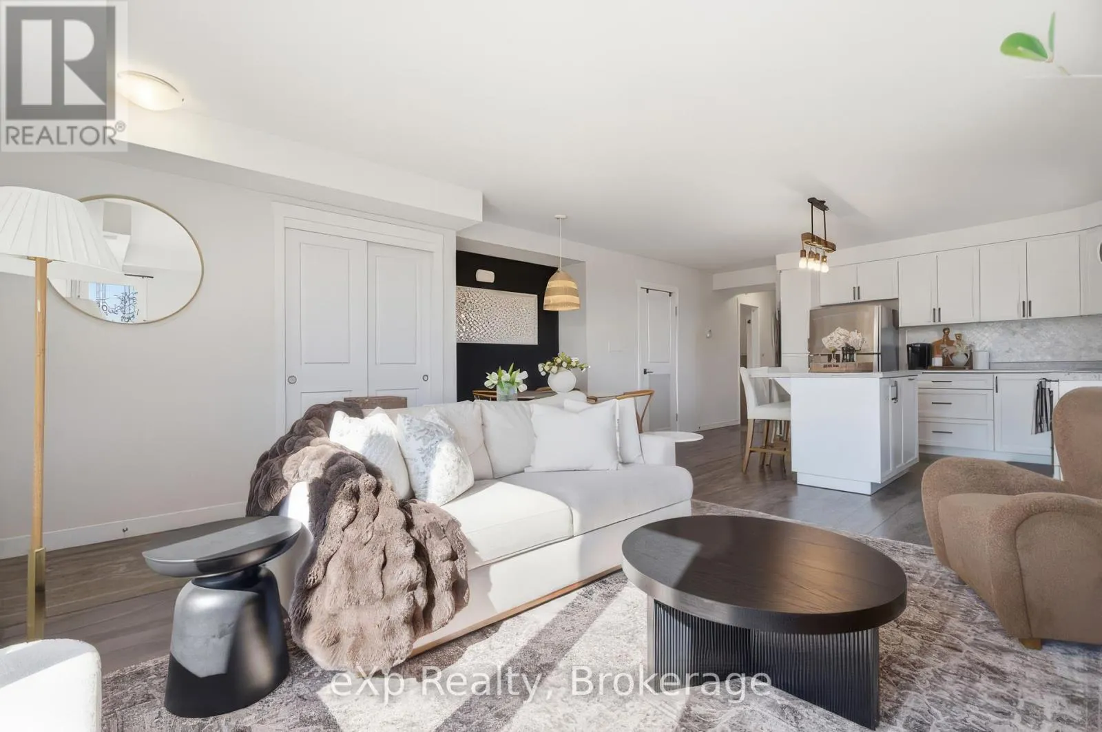 Cross Streets: Parkvale Dr & Huron Rd. ** Directions: Huron Rd to Parkvale Dr to Maitland St to Rochefort St. Welcome to stylish living in one of Kitchener's most desirable Huron communities. This nearly new 2-bedroom, 2 full bathroom condo townhome offers the perfect blend of modern design and everyday comfort. Step inside to a bright, open-concept layout where natural light fills the spacious living and dining area, creating an inviting space to relax or entertain. The kitchen is complete with stainless steel appliances, lots of cabinet space, and an island with breakfast bar. Enjoy carpet free living throughout, with quality laminate flooring in the main areas and bedrooms, complemented by stylish tiles in both bathrooms. The primary bedroom offers a private retreat with a 3 piece ensuite and direct access to a generous covered balcony-perfect for morning coffee or unwinding at the end of the day. A second bedroom and full bath provides flexible space for guests, family, or a home office. Additional highlights include a full-size in-suite laundry, one dedicated parking space, and ample visitor parking. Located just steps from parks, trails, and green space, including RBJ Schlegel Park and Huron Natural Area. Close to schools, shopping, and Conestoga College, this home also offers quick access to Highways 7/8 and 401 for easy commuting. (id:27476)
