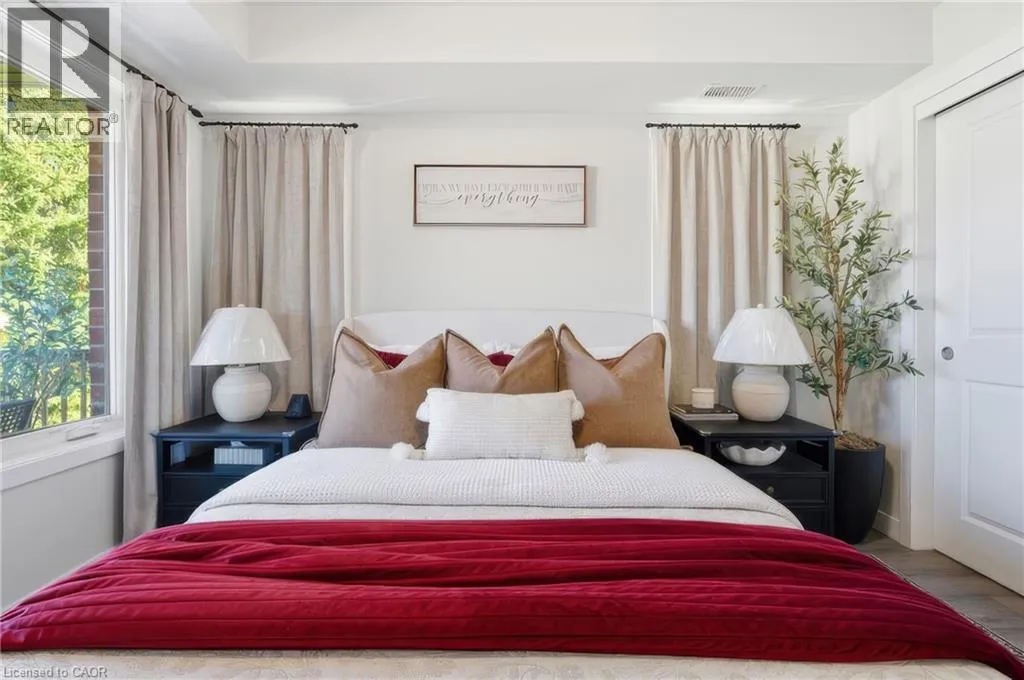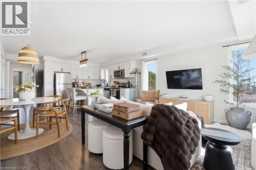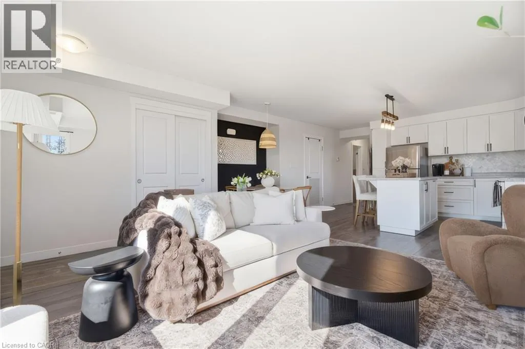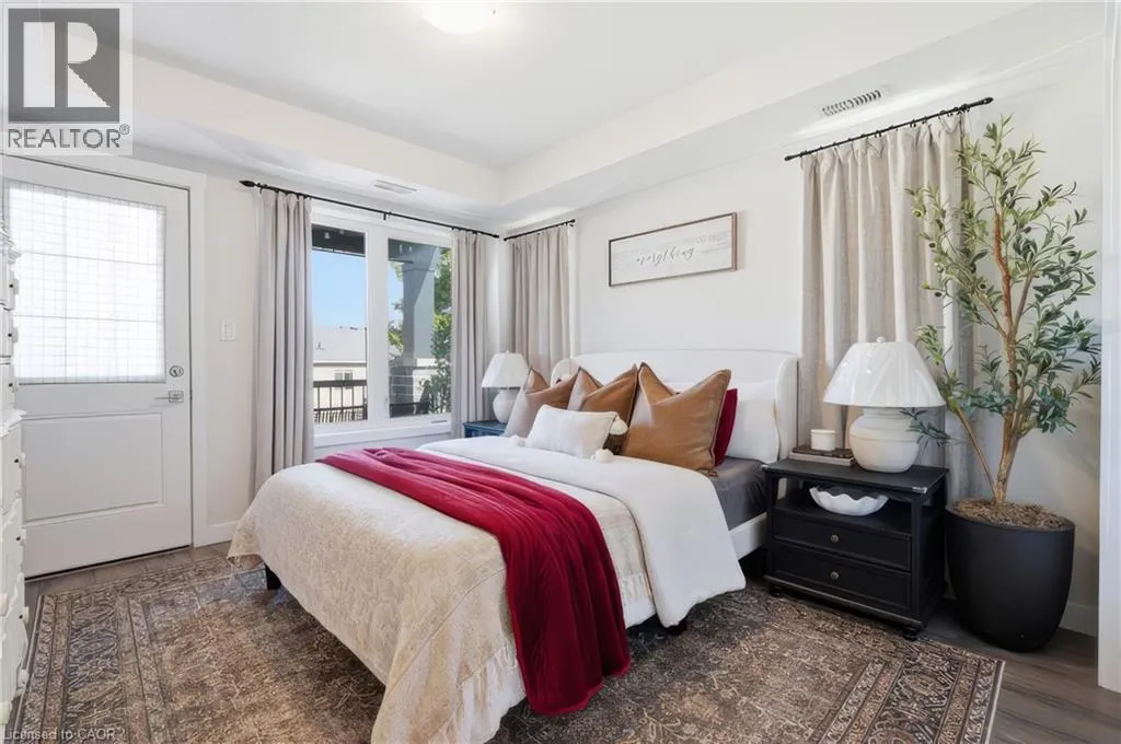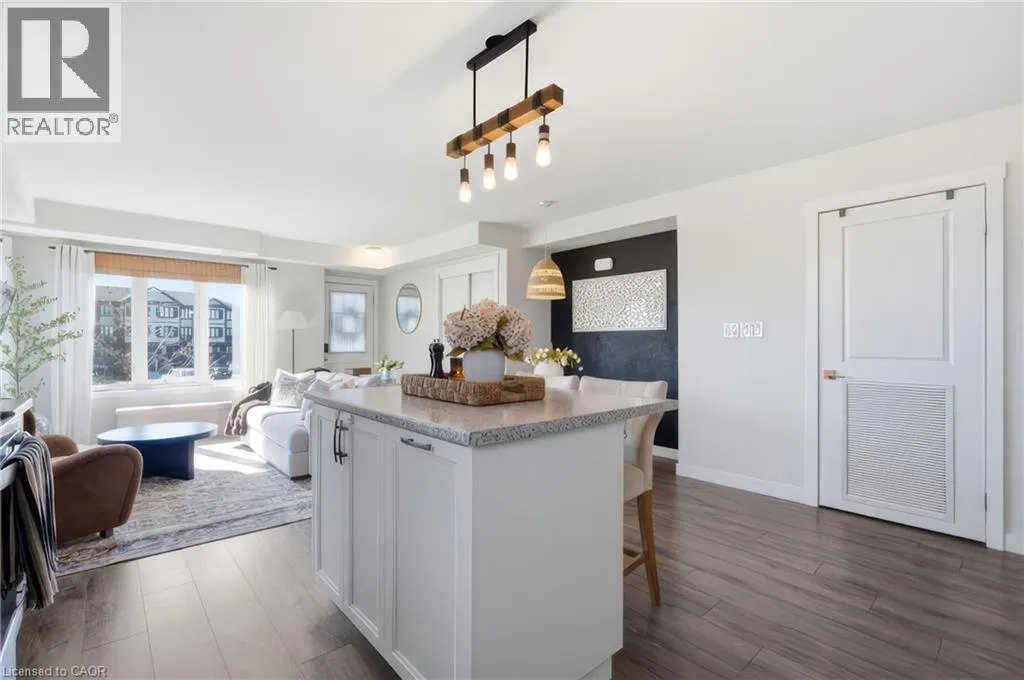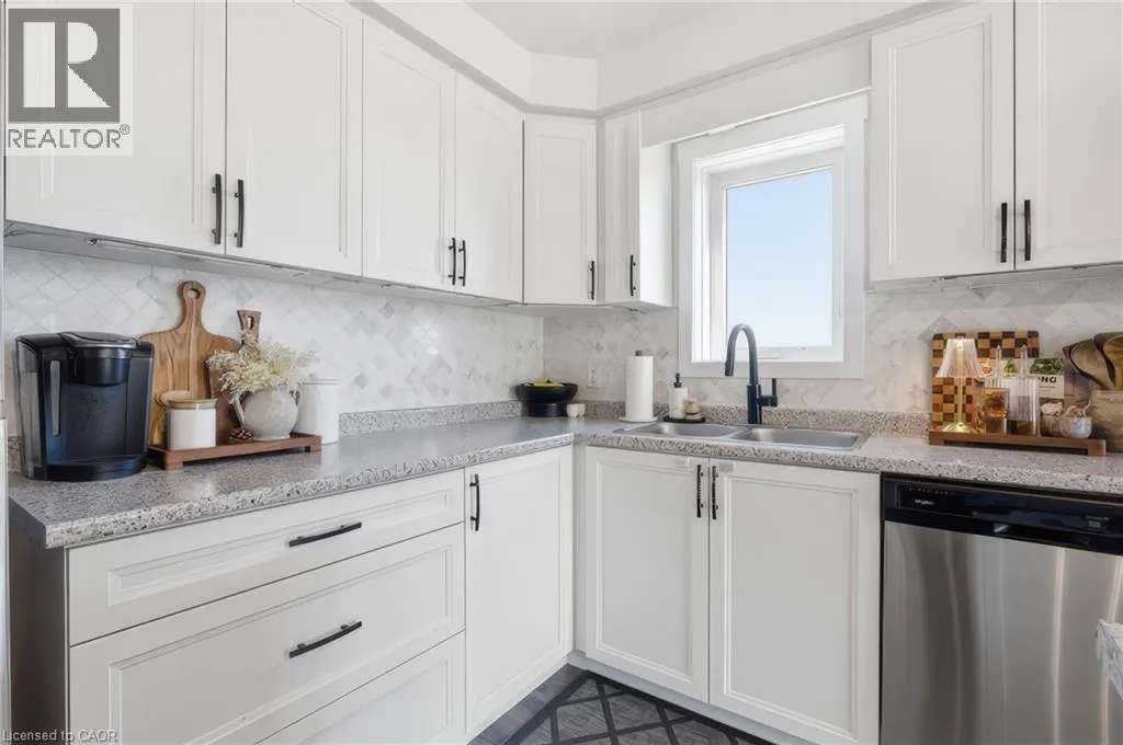 Huron Rd to Parkvale Dr to Maitland St to Rochefort St Welcome to stylish living in one of Kitchener's most desirable Huron communities. This nearly new 2-bedroom, 2 full bathroom condo townhome offers the perfect blend of modern design and everyday comfort. Step inside to a bright, open-concept layout where natural light fills the spacious living and dining area, creating an inviting space to relax or entertain. The kitchen is complete with stainless steel appliances, lots of cabinet space, and an island with breakfast bar. Enjoy carpet free living throughout, with quality laminate flooring in the main areas and bedrooms, complemented by stylish tiles in both bathrooms. The primary bedroom offers a private retreat with a 3 piece ensuite and direct access to a generous covered balcony-perfect for morning coffee or unwinding at the end of the day. A second bedroom and full bath provides flexible space for guests, family, or a home office. Additional highlights include a full-size in-suite laundry, one dedicated parking space, and ample visitor parking. Located just steps from parks, trails, and green space, including RBJ Schlegel Park and Huron Natural Area. Close to schools, shopping, and Conestoga College, this home also offers quick access to Highways 7/8 and 401 for easy commuting. (id:27476)