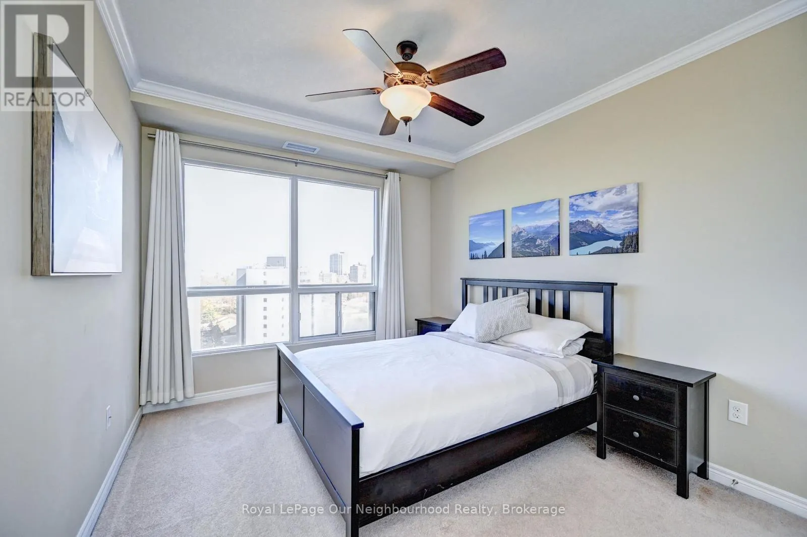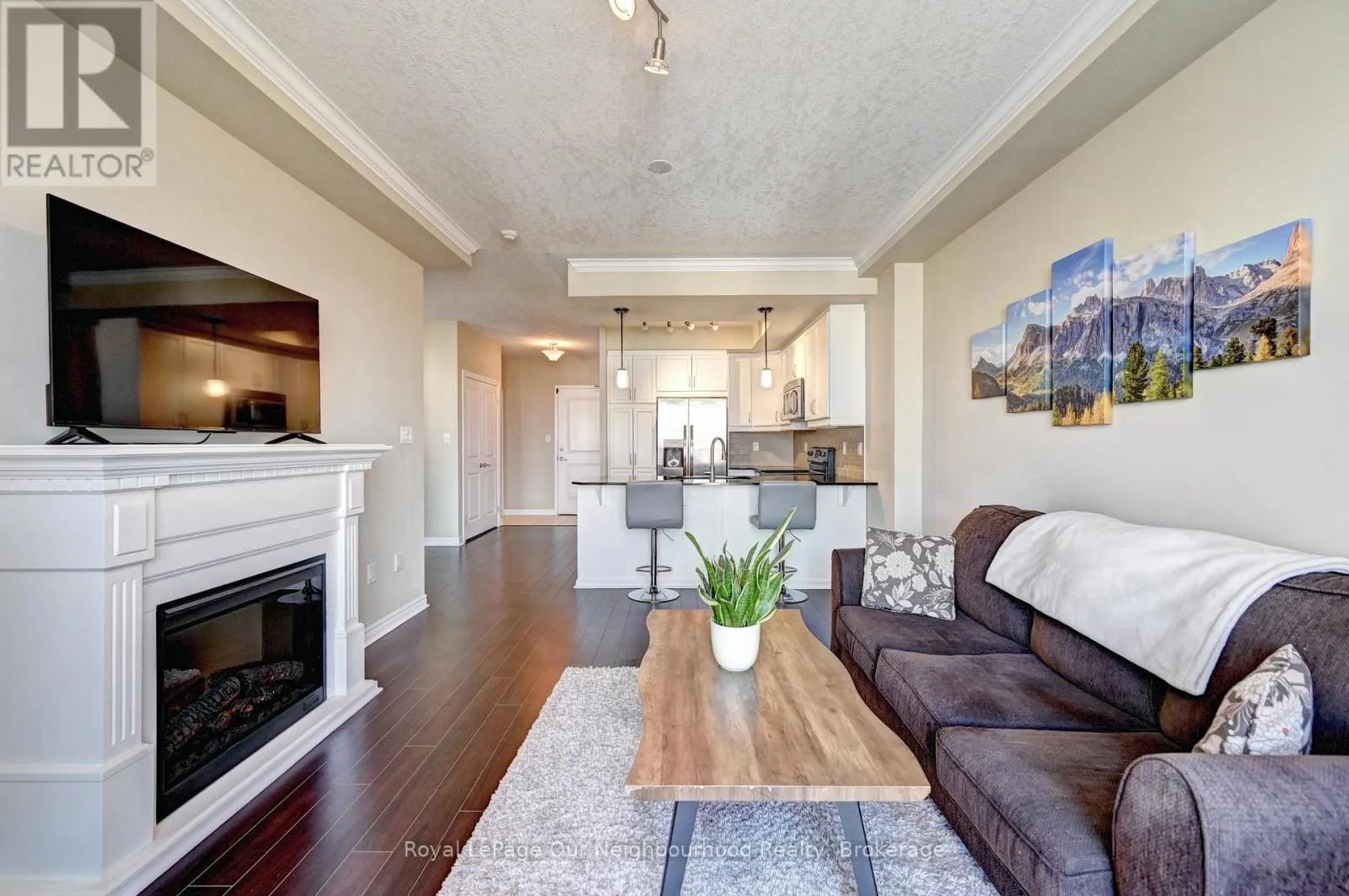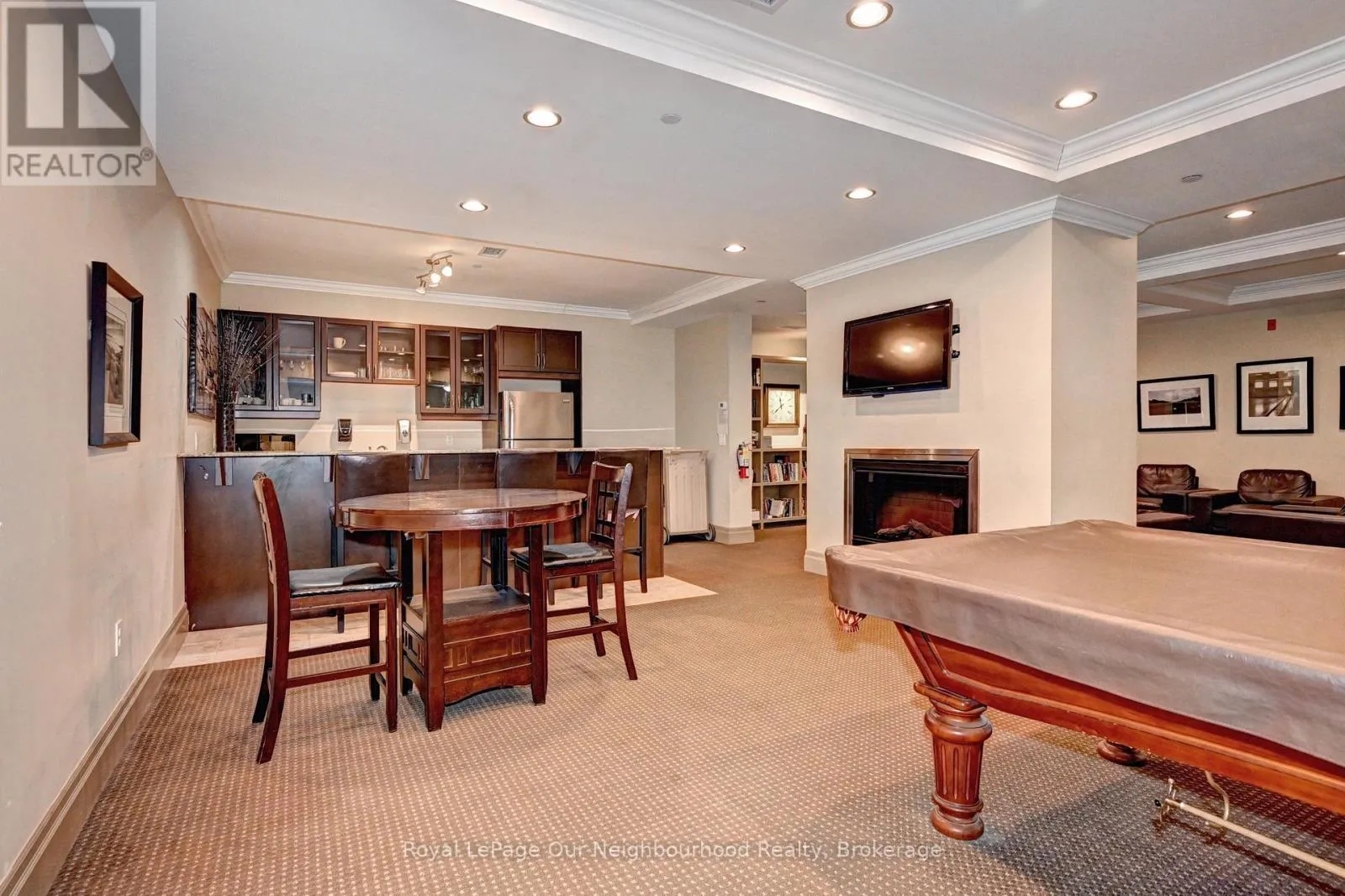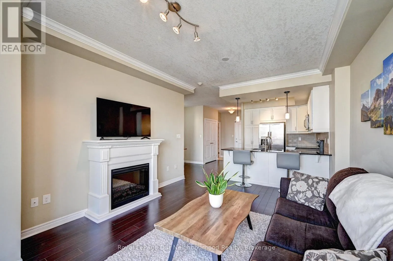 Cross Streets: Belmont Village. ** Directions: Glasgow. Discover modern, urban living in this stunning TOP-FLOOR 1-bedroom + den condo, offering over 750 square feet of bright, open-concept living space. Featuring 9-foot ceilings, an electric fireplace, in-suite laundry, a walk-in shower, and high-end finishes throughout, this home blends comfort and style effortlessly. The updated kitchen boasts granite countertops, stainless steel appliances, ample counter space, and a breakfast bar-perfect for everyday living or entertaining. The oversized living area provides plenty of room to relax, while the versatile den is ideal for a work-from-home setup or additional dining space. Step outside onto your private DOUBLE BALCONY with northwest exposure and enjoy panoramic sunset views. Perfect for morning coffee, evening wine, or hosting BBQs with friends and family. The building offers an array of amenities, including a billiards/games room, theatre room, party room, outdoor BBQ patio, gym, library, guest suite, and ample visitor parking. Located in the heart of Belmont Village, you're just steps from restaurants, bars, boutique shops, and the Iron Horse Trail. The unit owns one COVERED PARKING space, with a second space currently rented and potential to continue. The low condo fees include heat, water, and A/C. Don't miss your chance to experience this exceptional condo book your private showing today! (id:27476)