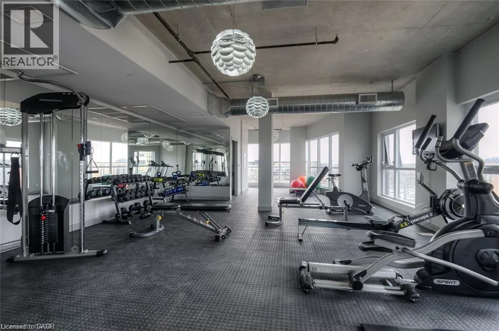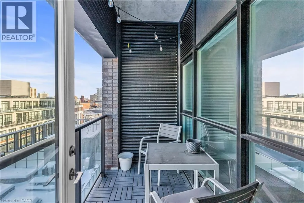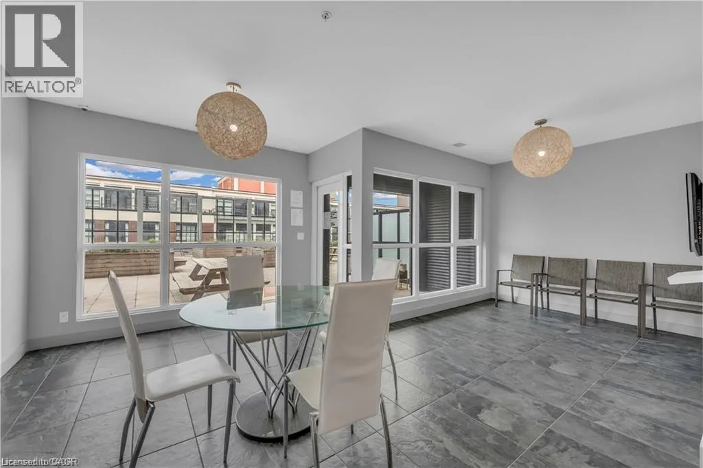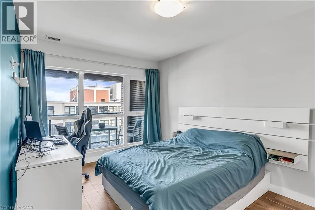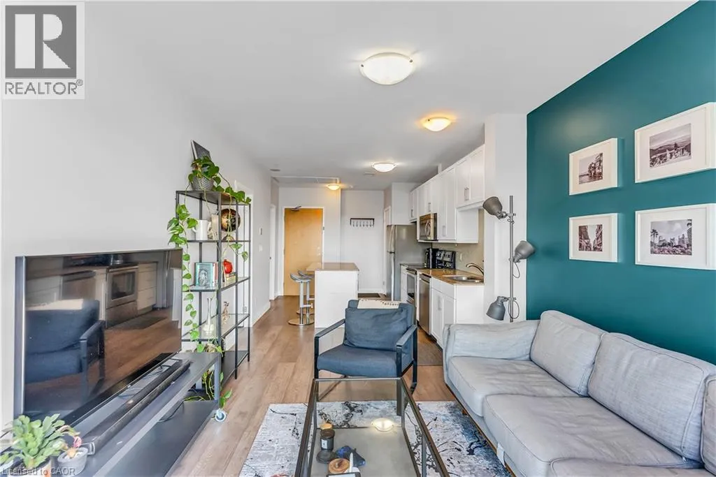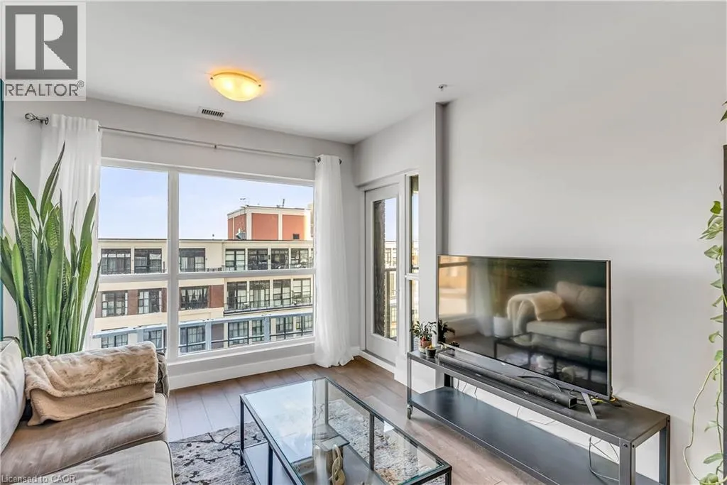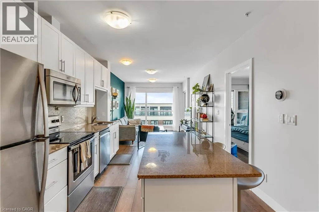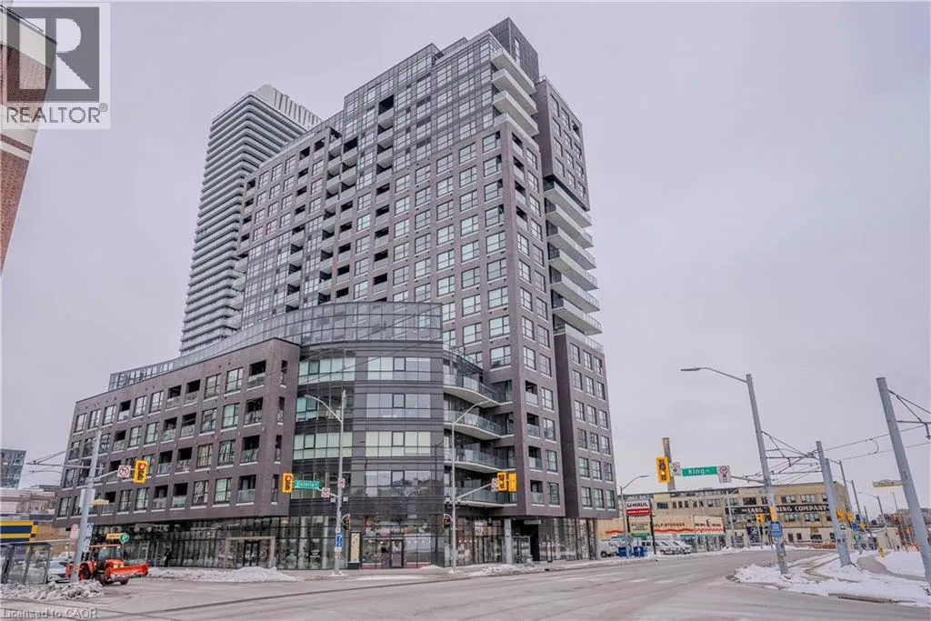 KING AND VICTORIA Experience modern downtown living in this bright and spacious 1-bedroom condo, located in one of Kitchenerâs most sought-after buildings. With the LRT, GO Train, restaurants, parks, and cafés just steps away, this location offers unmatched convenience in the heart of the cityâs tech district. Inside, the unit features a well-planned, open-concept layout that makes excellent use of space. Large windows fill the home with natural light and provide unobstructed city views, creating a warm and inviting atmosphere throughout. The living and dining area offers comfortable flexibility for day-to-day living, while the modern kitchen includes sleek cabinetry and quality appliances. The bedroom provides a quiet, comfortable retreat with room for a full furniture set, and the unit is complete with a stylish bathroom and in-suite laundry for added convenience. This highly regarded building offers great amenities, secure entry, and a vibrant urban lifestyle perfect for professionals, first-time buyers, or investors. With its functional layout, clean sightlines, and unbeatable DTK location, this condo delivers exceptional value and comfort. (id:27476)