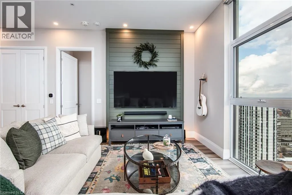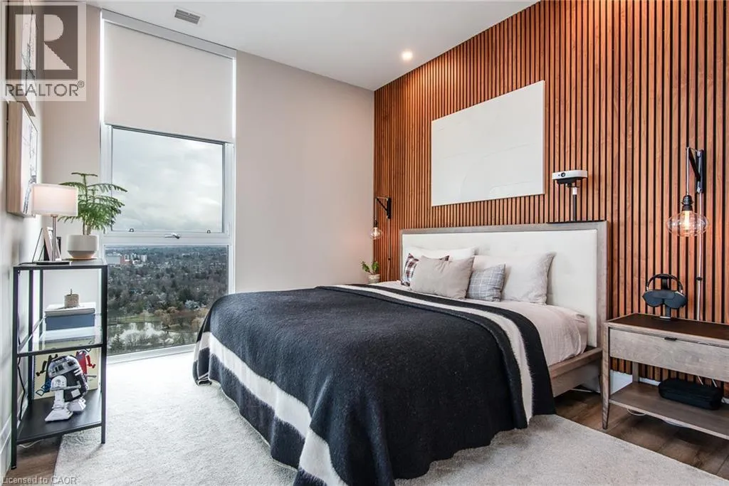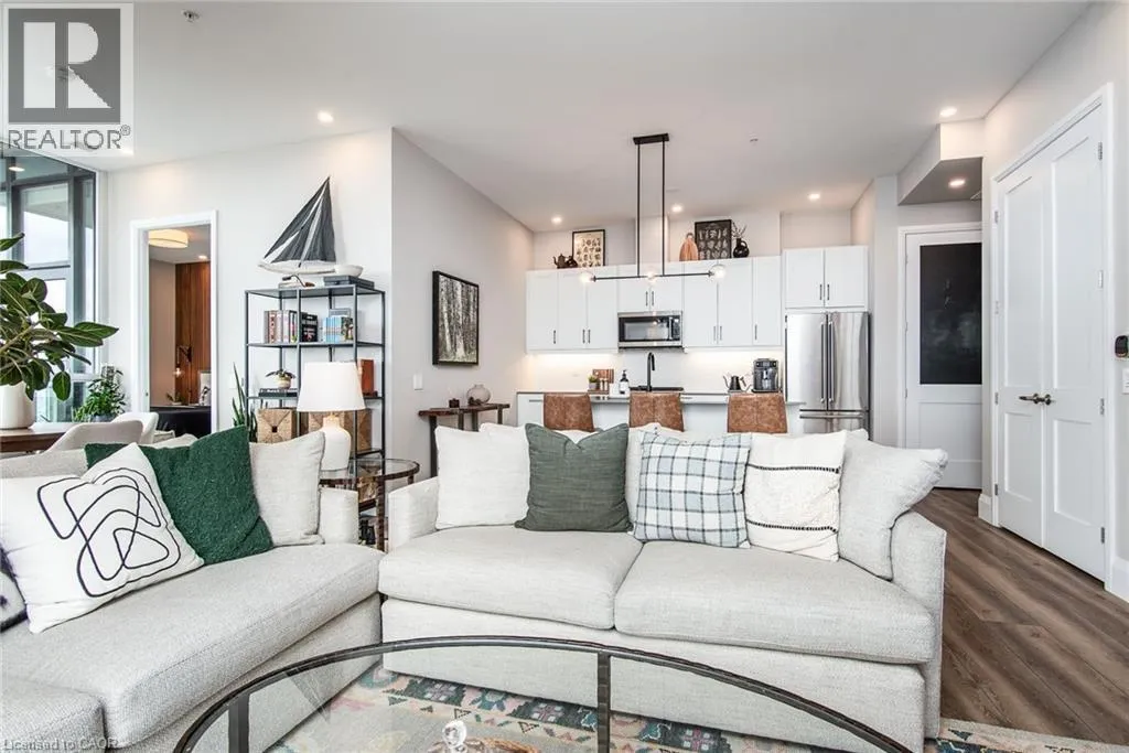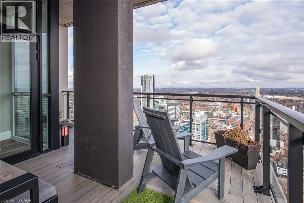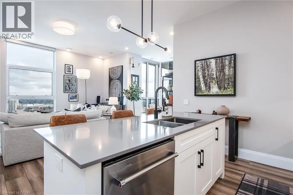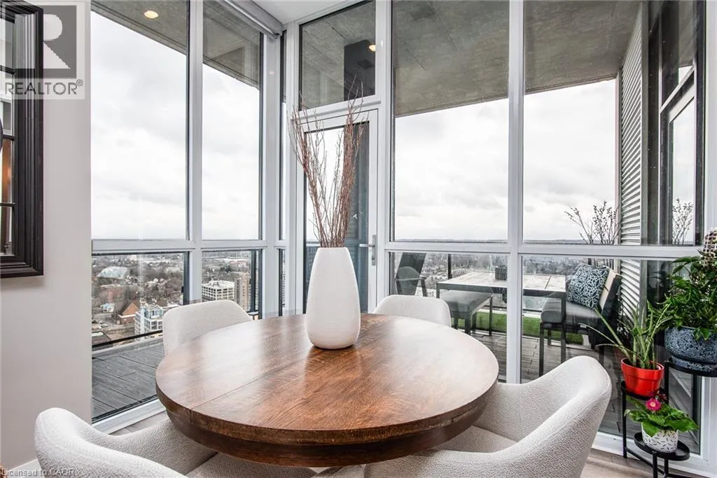 Corner of Gaukel Street and Charles St West Corner Penthouse at Charlie West â it doesn't get better than this. Perched on the top floor, this suite offers a true penthouse experience with breathtaking, unobstructed views over Victoria Park and beyond. Part of the exclusive Scott McGillivray Collection, this suite features a curated selection of premium upgrades, including 10â ceilings, taller doors, upgraded trim, fixtures, and hardware. The kitchen has been further enhanced with additional upgrades, including pot drawers, an upgraded appliance package, and a rare gas stoveâan exceptional find in condo living. Two-zone climate control, complete with an Ecobee thermostat, ensures comfort throughout. You will be sure to fall in love the primary bedroom, complete with a stunning Andor-Willow walnut slat wall and a walk-in closet with built-in organizers and a private ensuite. Expansive windows flood the space with natural light, while featured remote control blinds and Lutron lighting add convenience and sophistication. All closets feature custom built-in organizers for optimal storage. Step outside to a generous 233 sq ft private balcony, complete with composite decking and a gas lineâperfect for outdoor entertaining while taking in the incredible skyline views. Additional features include one parking space and two lockers. Located in the heart of Downtown Kitchener, directly on the ION LRT route, this is elevated urban living at its finest. Don't miss this rare opportunity. (id:27476)