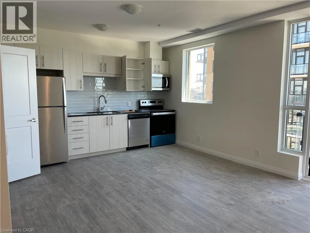 Garment street and Victoria street/Oak Street Located In Kitchener's Innovation District! This one bedroom unit has 9' ceilings, large windows, and open concept living and dining room with a views of Downtown Kitchener. There is a spacious primary Bedroom and in-suite stackable washer/dryer. Enjoy the endless amount of amenities, from a fully equipped fitness center, event/party room, office room.. The building also comes with keyless entry. A mix of urban and city living within walking distance to Vibrant Downtown, entertaining, Restaurants, Tech Companies, University And College Campuses, And Light Rail Transit. Steps to the School of Pharmacy, Victoria Park, Google and public transportation. Parking is available. (id:27476)