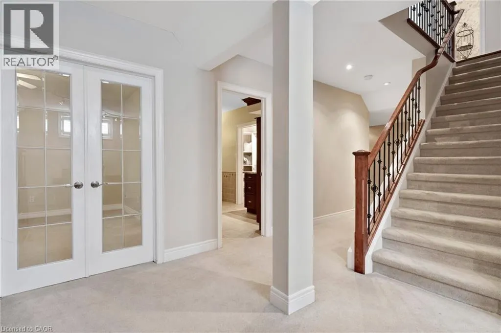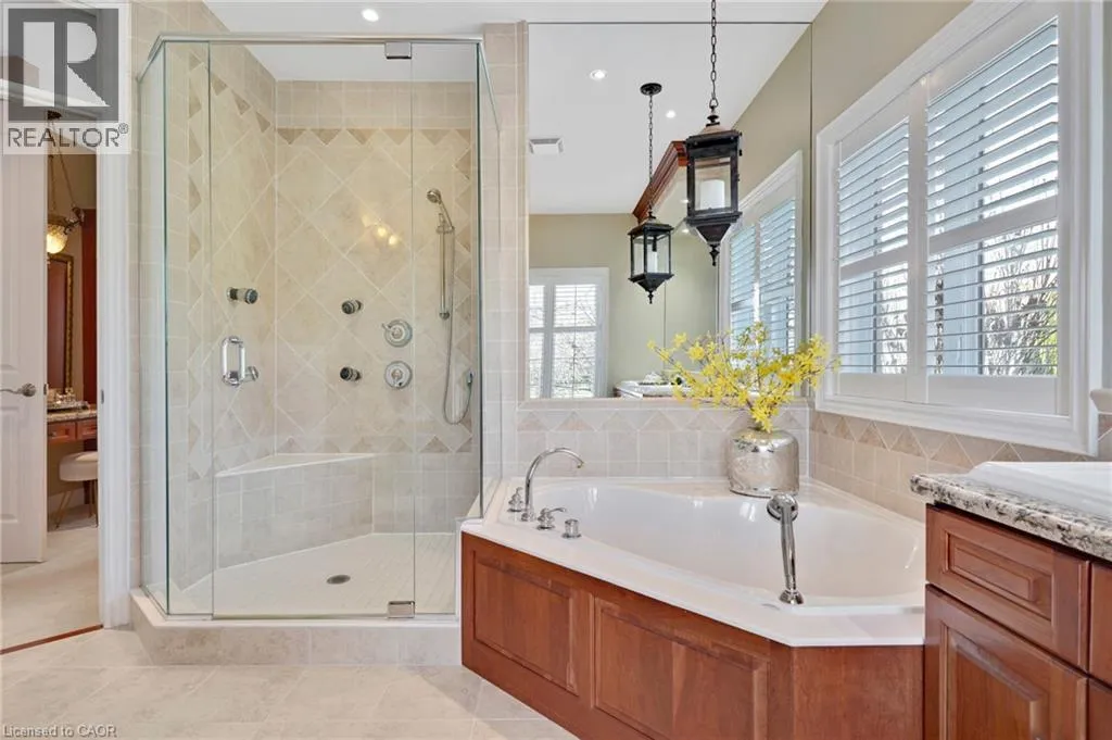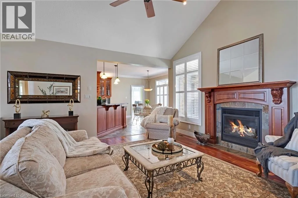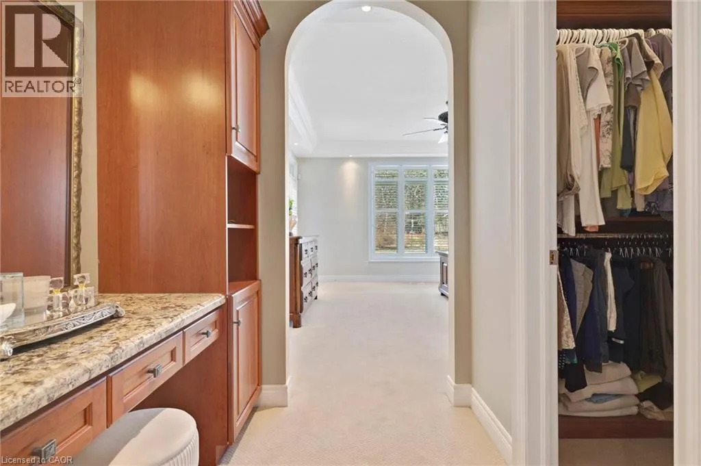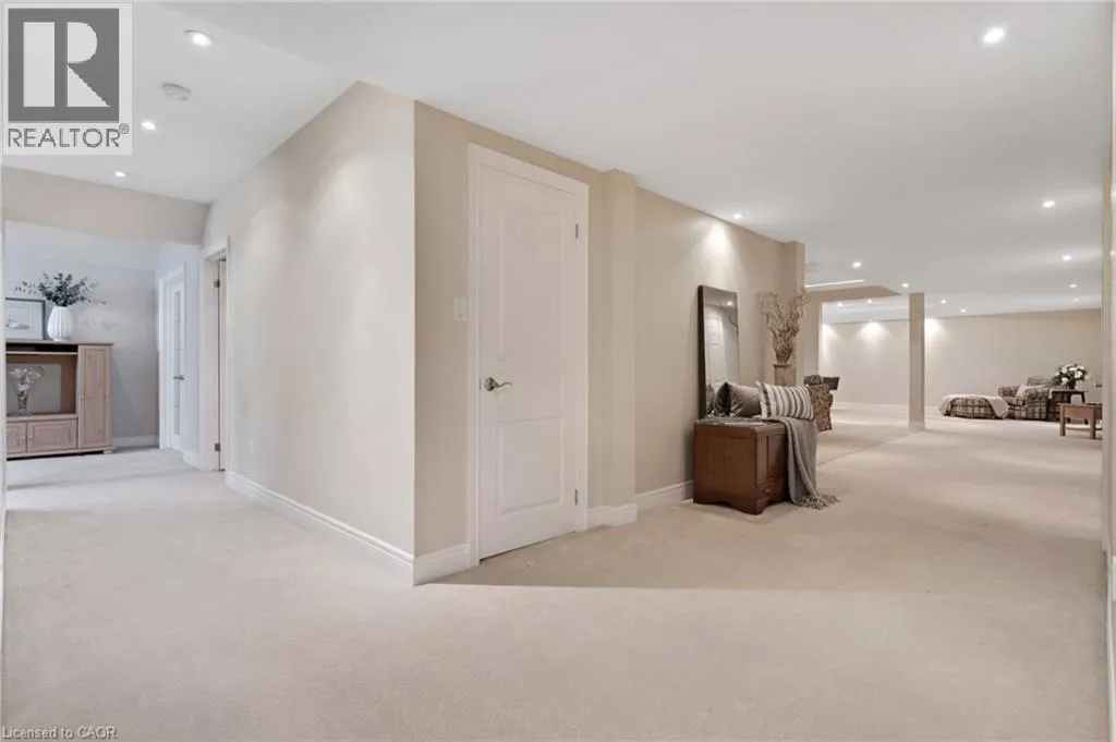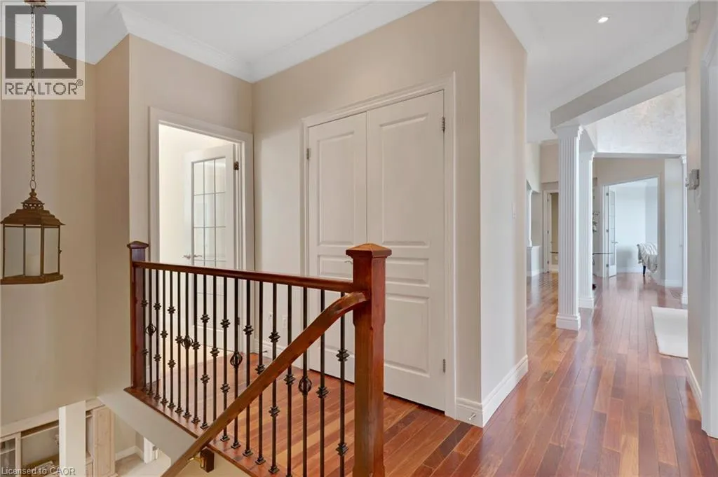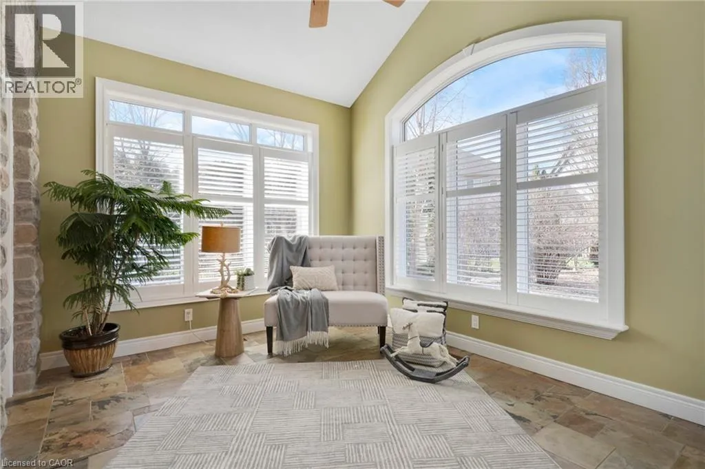 Doon Village Rd to Oregon Crt Located in the highly sought-after Doon Village area, this spacious bungalow is tucked away on an exclusive private court with just six homes, offering a quiet setting surrounded by mature trees and scenic walking trails. Set on a fully landscaped pie shaped lot of over 0.6 acres, the property provides exceptional privacy along with convenient access to amenities, Conestoga College, and Highway 401. With over 5,400 square feet of total living space, this home offers a well-designed layout with room for a variety of living arrangements. The main floor features an open and welcoming foyer, leading into bright principal rooms finished with hardwood floors, slate tile, 9-foot ceilings, and California shutters throughout. A large living room with gas fireplace anchors the space, complemented by a separate home office and a formal dining room with a built-in servery. The kitchen is both spacious and functional, equipped with high-end appliances including a six-burner gas range, and an eat-in area that opens to a sunroom overlooking the backyard. The main level includes three well-sized bedrooms, including a large primary suite set privately with a walk-in closet and a 5-piece ensuite. The fully finished lower level adds even more versatility, featuring two additional bedrooms, an oversized bathroom, a recreation room, home gym, playroom, and a sitting area/ office with rough-in for a wet bar. With direct access from the garage, this level is well suited for extended family or multi-generational living. Outside, the backyard offers a private retreat with an in-ground pool, patio, and hot tub, all surrounded by mature landscaping. A rare opportunity to own a well-appointed home in a quiet, established pocket of Doon. (id:27476)