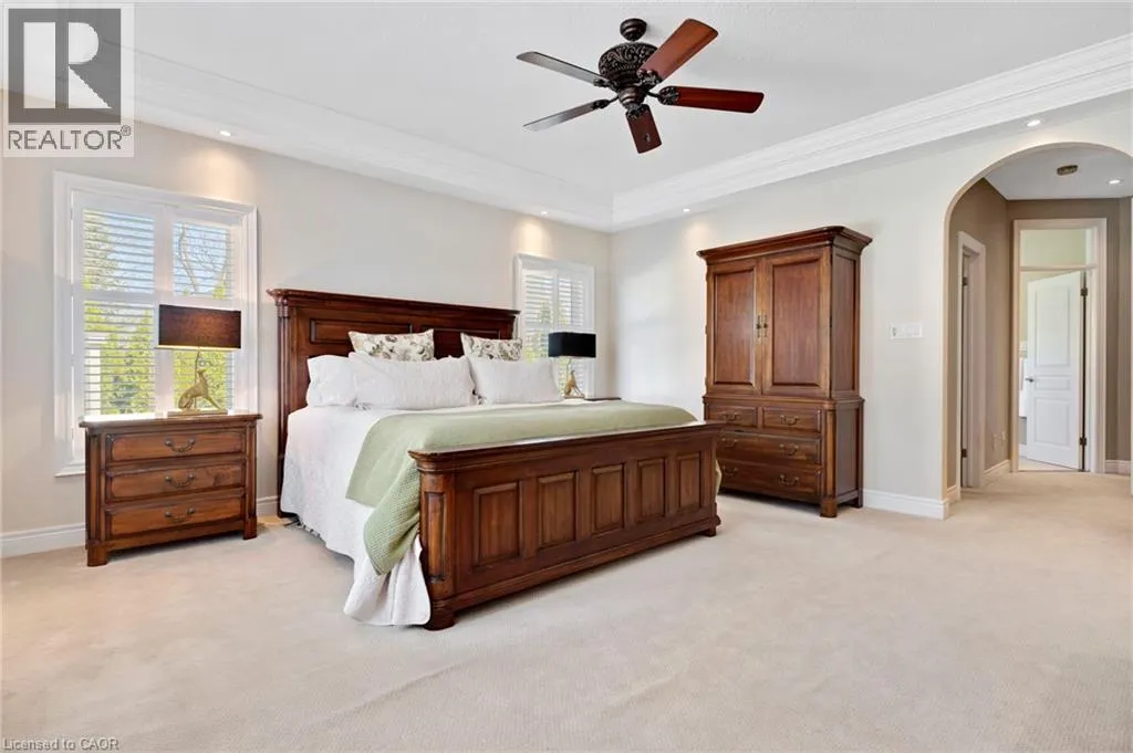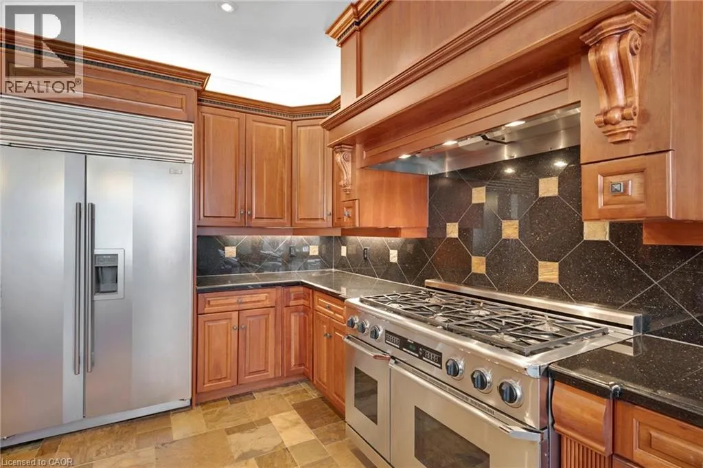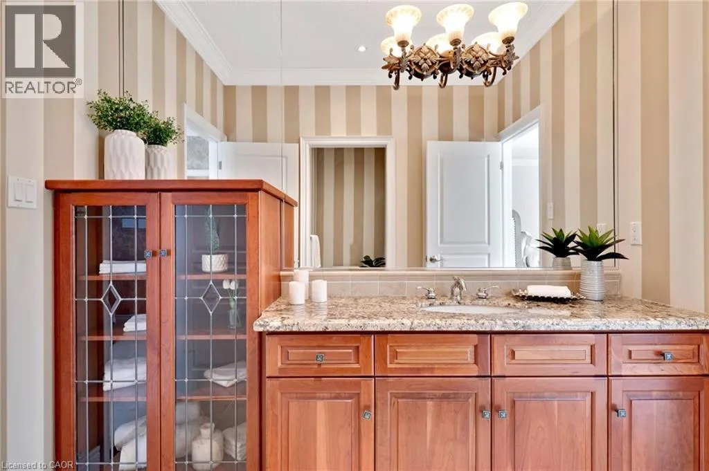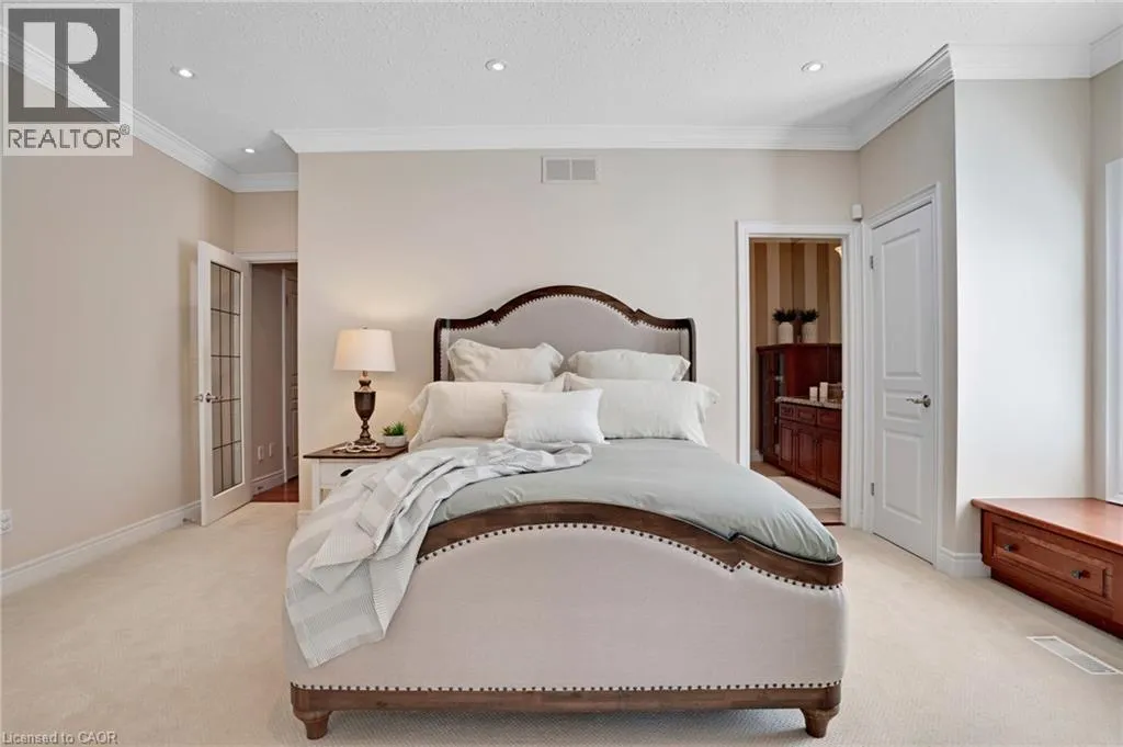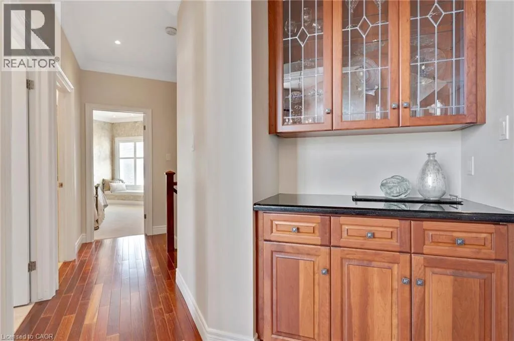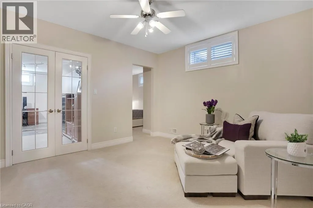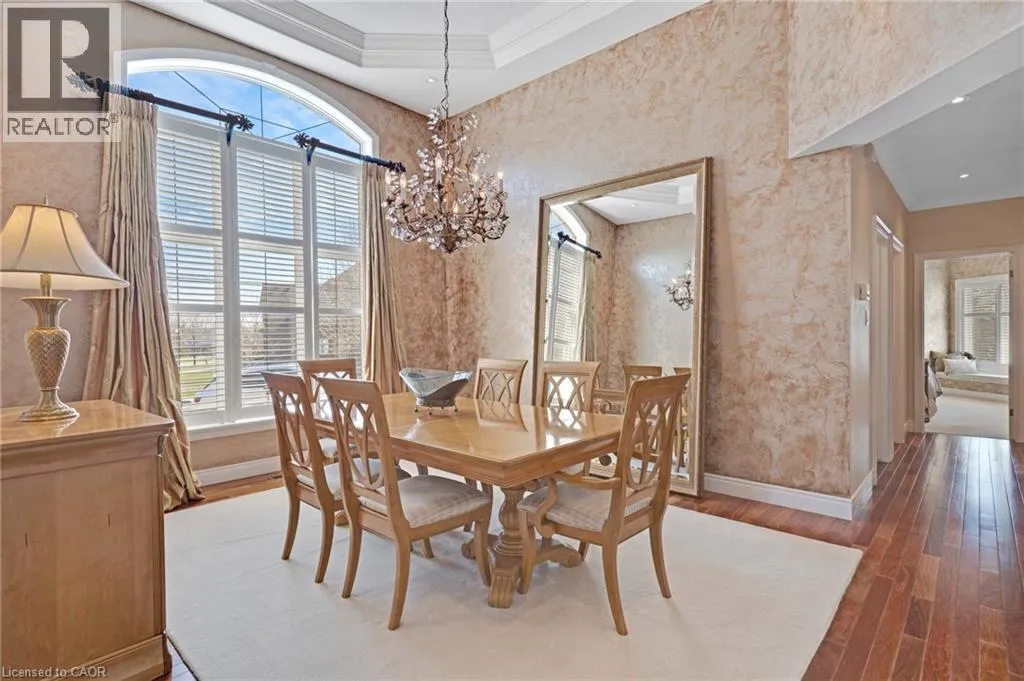 Doon Village Rd to Oregon Crt Located in the highly sought-after Doon Village area, this spacious bungalow is tucked away on an exclusive private court with just six homes, offering a quiet setting surrounded by mature trees and scenic walking trails. Set on a fully landscaped pie shaped lot of over 0.6 acres, the property provides exceptional privacy along with convenient access to amenities, Conestoga College, and Highway 401. With over 5,400 square feet of total living space, this home offers a well-designed layout with room for a variety of living arrangements. The main floor features an open and welcoming foyer, leading into bright principal rooms finished with hardwood floors, slate tile, 9-foot ceilings, and California shutters throughout. A large living room with gas fireplace anchors the space, complemented by a separate home office and a formal dining room with a built-in servery. The kitchen is both spacious and functional, equipped with high-end appliances including a six-burner gas range, and an eat-in area that opens to a sunroom overlooking the backyard. The main level includes three well-sized bedrooms, including a large primary suite set privately with a walk-in closet and a 5-piece ensuite. The fully finished lower level adds even more versatility, featuring two additional bedrooms, an oversized bathroom, a recreation room, home gym, playroom, and a sitting area/ office with rough-in for a wet bar. With direct access from the garage, this level is well suited for extended family or multi-generational living. Outside, the backyard offers a private retreat with an in-ground pool, patio, and hot tub, all surrounded by mature landscaping. A rare opportunity to own a well-appointed home in a quiet, established pocket of Doon. (id:27476)