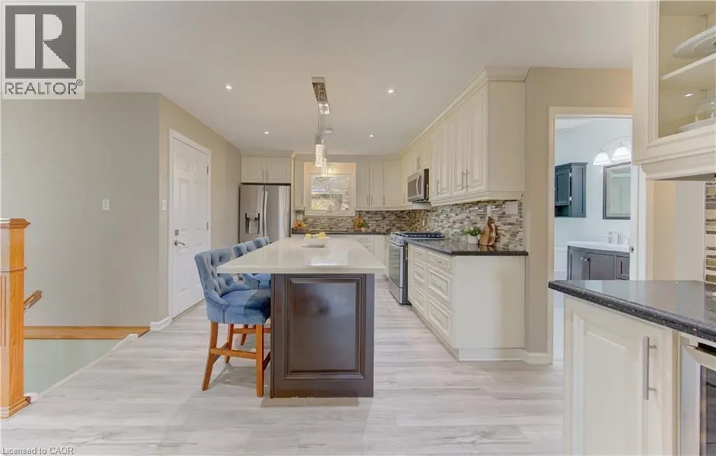 The Country Way to Erinbrook ***OPEN HOUSE SATURDAY & SUNDAY, 2PM-4PM: Beautifully updated bungalow in a desirable neighbourhood! This move-in ready home offers 3+1 bedrooms &2 full bathrooms. The main floor features modern laminate flooring throughout and a stunning updated kitchen complete with granite countertops & centre island, a gas 6-burner stove, dishwasher, and wine fridge. Enjoy a separate dining room and a bright, inviting front living room. Major updates include windows (2018), water softener (2018), furnace & A/C (approx. 3 years), and roof (approx. 5 years). The fully finished basement adds valuable living space with an additional bedroom and flexibility for a rec room, home office, or guest suite.Step outside to a fully fenced yard, perfect for kids, pets, and summer gatherings. The property also offers parking for 3 vehicles, with an exposed aggregate driveway. (id:27476)