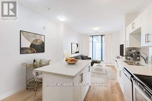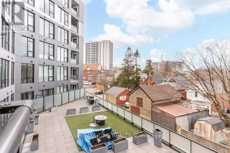 Cross Streets: King & Wellington. ** Directions: off of Louisa st & King. Experience life at Midtown Lofts in this boutique building located between Uptown Waterloo and Downtown Kitchener. This modern One bedroom & Den features 9' ceilings, brand new laminate flooring, new cabinetry, center kitchen island with quartz countertops, stainless steel appliances and a large bedroom. A versatile den with a barn-style sliding door adds functional space, complemented by a private balcony and ensuite laundry. Building amenities include a fitness center and rooftop terrace. Conveniently located close to LRT, Hospitals, Retail and more. (id:27476)