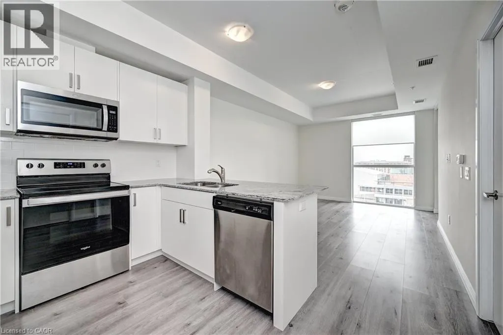 Ontario St W / Charles St S PRICED TO SELL!!!! Gorgeous Almost 700 Sq Ft 1 Bedroom Plus Den Newer Condo In One Of The Most Sought After Charlie West Building Right In The Heart Of Downtown Kitchener Across From The City Hall. Just Walk to All The Attractions & Events That Happens there & Victoria Park Station And L.R.T Just Across The Street! Super Layout. Features 9' High Ceiling . Gorgeous White Eat In Kitchen. Open Concept Living Room. Walk Out To Balcony. Large Bright Primary Bedroom With a Walk In Closet. Good Size Den Can Be Used As a Home Office Or 2nd Bedroom. 4 Piece Washroom With a Deep Soaker Tub. Insuite Full Sized Front Loading Washer & Dryer. Superb Building Amenities, Including Pet Play Area & Dog Wash Station!Gym, HIGH SPEED INTERNET IS INCLUDED. RARE Super Convenient Locker is Located Right Next to the Unit.Located in Downtown Kitchener, youâre steps from Victoria Park, restaurants, cafés, shops, and year-round events. Close to Google, the University of Waterloo, and Conestoga College, Still Shows Like New. 99 WALK SCORE, 94 BIKERS SCORE & 66 TRANSIT SCORE. (id:27476)