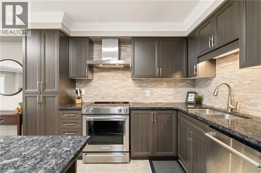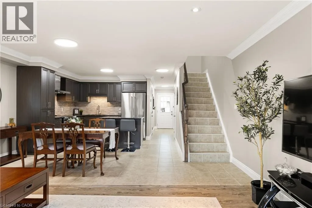Robert Ferrie Drive to Thomas Slee Drive to Meadowridge If youâve been looking for something newer, but donât want to settle for basic, this former model home in Doon South is worth a look. Just a short walk to Groh Public School, this 3-bedroom, 2.5-bathroom freehold townhome offers modern finishes and smart upgrades, plus the added bonus of no rear neighbours, backing directly onto a lush walking trail. Check out the TOP 6 reasons why this home makes sense: #6: LOCATION, LOCATION, LOCATION: Doon South is one of Kitchenerâs most in-demand family neighbourhoods â and it shows. Youâre surrounded by parks, trails, and schools, with quick and easy access to everyday amenities and Highway 401. Your commute just got a whole lot easier. #5: BRIGHT & AIRY MAIN FLOOR: Carpet-free throughout, the home is finished with crown moulding, upgraded lighting, a convenient powder room, and a bright living room with California shutters and a walkout to the backyard. Itâs the perfect place to kick back and relax. #4: BACKYARD & TRAIL: Out back, this home comes to life. Backing directly onto a walking trail, you get added green space and tranquillity. The concrete patio and low-maintenance lawn invite you to enjoy backyard BBQs or simply soak up the sun. #3: KITCHEN & DINING: The kitchen offers upgraded cabinetry, granite countertops, mosaic tile backsplash, KitchenAid stainless steel appliances, and an island with a breakfast bar. There's also space to entertain in the adjacent dinette. #2: BEDROOMS & BATHROOMS: Upstairs, there are three well-appointed bedrooms. The primary suite includes a covered porch - where youâll enjoy sunset views, a walk-in closet with custom-built organization and its own 3-piece ensuite. The remaining bedrooms share a main 4-piece bath, closet upgrades with a shower/tub combo. #1: FINISHED BASEMENT: Whether you need a rec room, home office, or simply more space, the finished basement offers that flexibility â along with laundry and valuable storage. (id:27476)