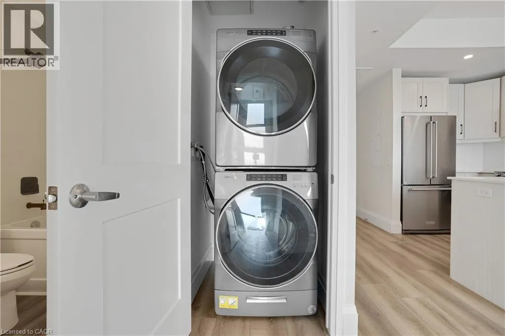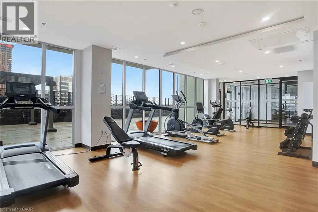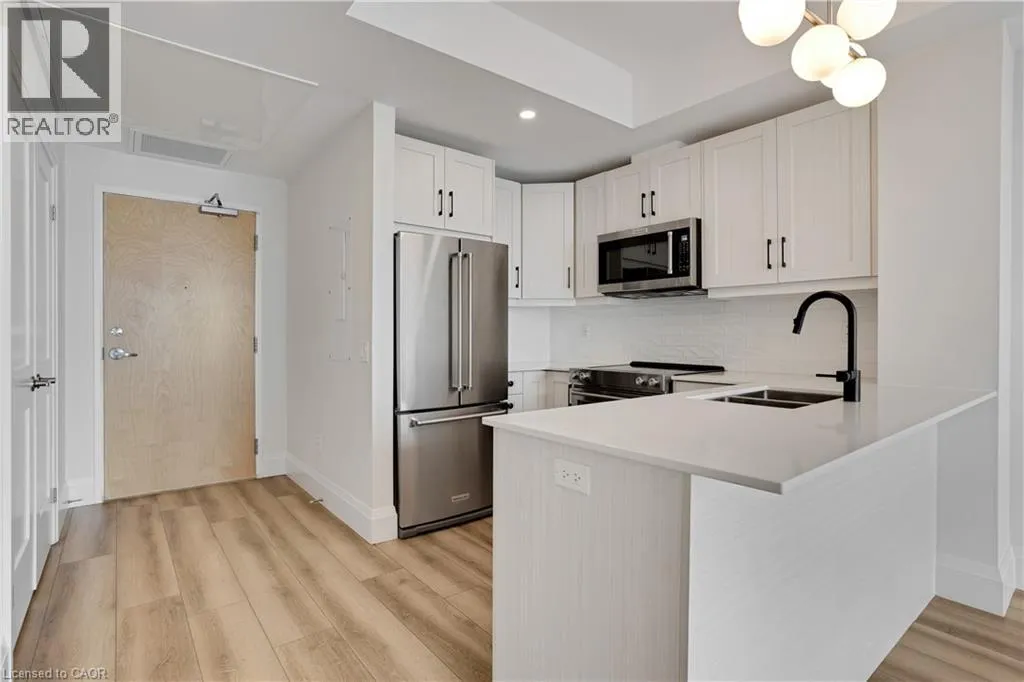 Queen St S to Charles St Ideal for first-time buyers, investors, or downsizers. This 1-bedroom, 1-bathroom condo sits on the 19th floor of one of Kitchenerâs most desirable buildings, offering panoramic city views through floor-to-ceiling windows that fill the open-concept living space with natural light. The modern kitchen features a backsplash and custom cabinetry, flowing seamlessly into the living and dining area. The bedroom offers a comfortable retreat with contemporary finishes, while the bathroom includes a glass-enclosed shower. A private balcony provides the perfect spot to enjoy city views morning or evening. Located in downtown Kitchener, youâre steps from Victoria Park, restaurants, cafés, shops, and year-round events. Close to Google, the University of Waterloo, and Conestoga College, itâs a great option for professionals, students, or anyone seeking an urban lifestyle. The pet-friendly building includes a dog wash station, fitness center, outdoor terrace, and shared community spaces. High-speed internet, water, a secure parking space, and a storage locker are also included. (id:27476)