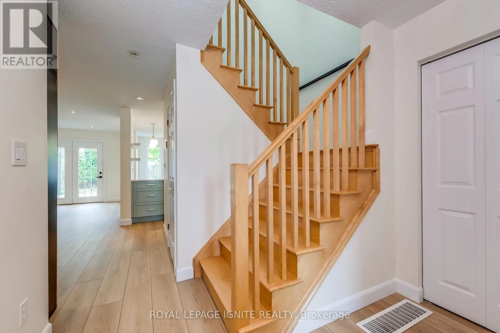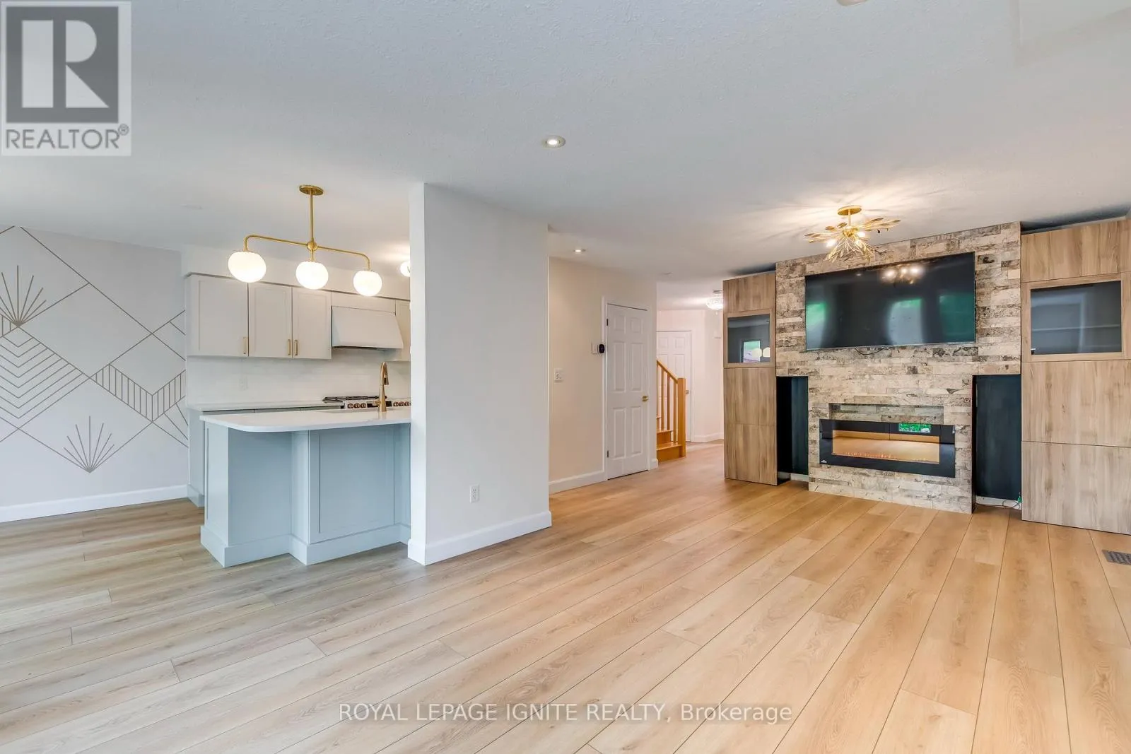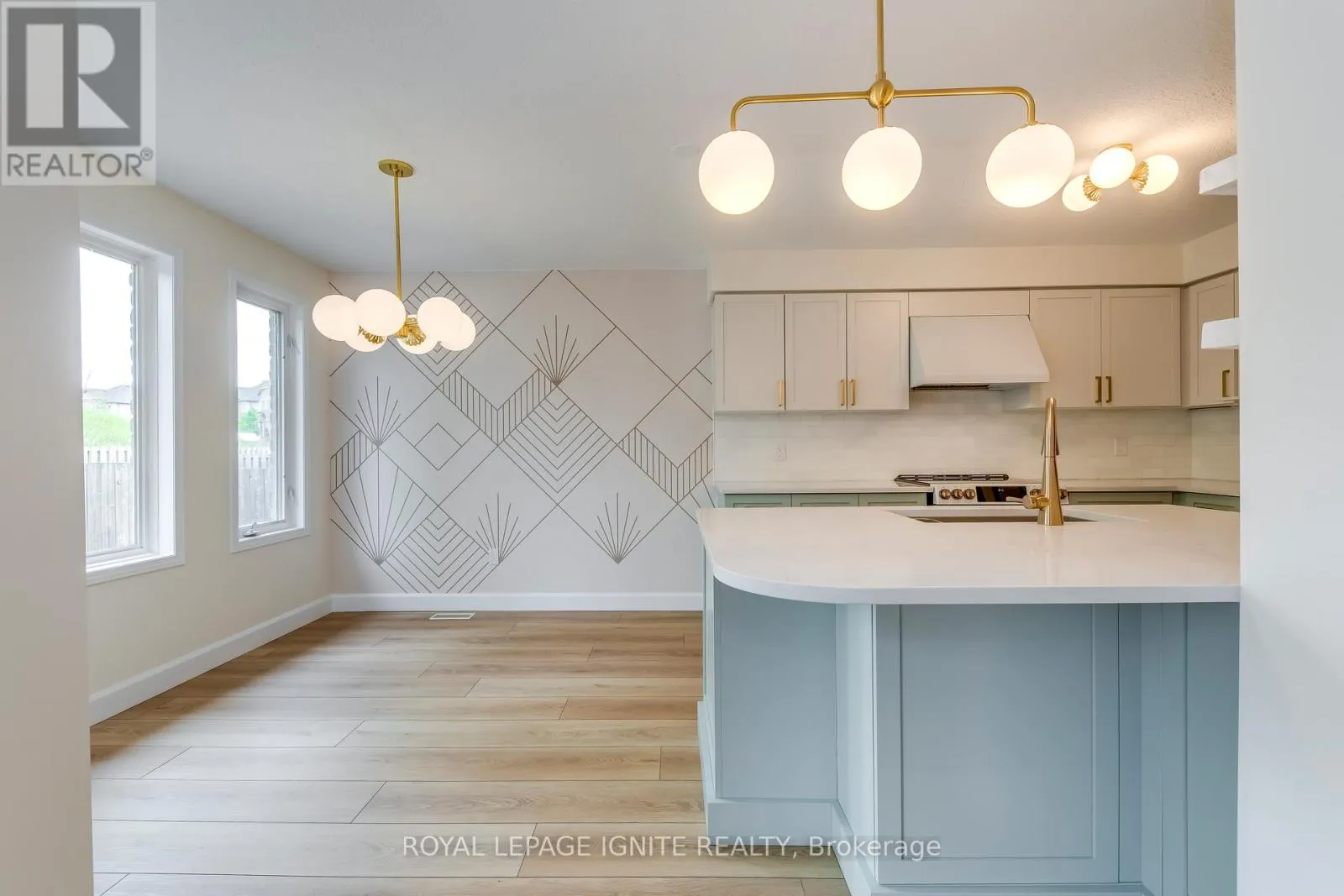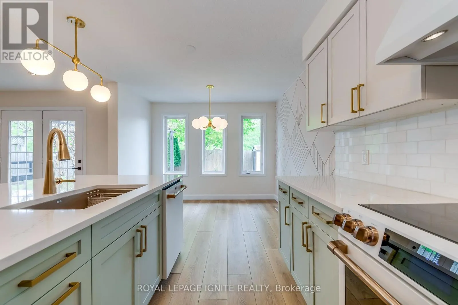 Strasburg Rd or Marl Meadwow to Templewood Welcome to 64 TEMPLEWOOD Drive, Kitchener with quick access to highway, shopping, parks, bus routes and schools! Luxurious, spacious, stylish, and in a prime location with no rear neighbours! This stunning open concept detached house is freshly painted and well maintained, it comes with a 3 bedroom and 2 full bathrooms and a powder room. It also has a beautifully finished basement. Pulling up to this home with a double concrete driveway and charming front porch you will be very impressed. Welcome foyer with large coat closet, and a beautiful 2piece bathroom, as well as inside entry to the garage. Heading into the heart of the home, the luxurious kitchen is newly renovated with top of the line appliances, GE Caf in Matte White with gold accents, large windows with natural light with ample cabinets along with white quartz countertops. The main floor flooring is high end Twelve Oaks luxury vinyl plank. The living room is complete with Ikea cabinets and Napoleon electric fireplace. The backyard via the French garden doors is a fantastic maintenance free yard for your family to relax in privacy. The deck is 360 square feet and features a composite trex deck and beautiful pergola and shed. On this pergola is a beautiful wisteria vine, it is absolutely breathtaking when in bloom. Upstairs, the primary bedroom at the back of the home is peaceful and luxurious. Very large walk in closet and beautiful ensuite bathroom. There is an additional 4 piece bathroom on this level as well as 2 additional spacious bedrooms that can be used as kids bedrooms and/or office. The basement is fully finished in country style with a very nice bar area, entertainment space with a fireplace and a compact den that could be used as an office space! The house comes with a 240V Electric car charger outlet! This is an asset if you have an electric car or are planning to buy one. (id:27476)