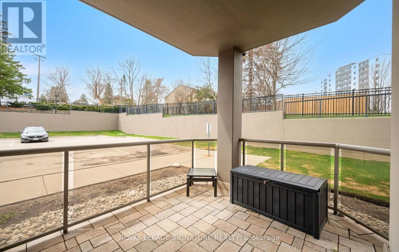 Glasgow/Belmont Welcome to Unit 101 at 539 Belmont Ave West, Belmont Village Condominiums. A stunning renovated & spacious 2 bedroom + den, 2 full bathroom corner unit. 1,307 sqft of thoughtfully designed living space in one of Kitchener's most desirable neighbourhoods. Enter through a generous foyer that sets the tone for the unit's bright & airy layout - windows galore. The open concept living & dining area features upgraded maple hardwood flooring, upgraded lighting throughout, a fireplace & elegant California shutters, creating a warm & inviting atmosphere - perfect for both relaxing & entertaining. The modern kitchen has been tastefully updated with quartz countertops & backsplash, breakfast bar, upgraded hardware & appliances - ideal for any home chef! The oversized primary bedroom is a true retreat, complete with a walk-in closet featuring custom California Closet organizers & a private 3-piece ensuite. Large second bedroom with mirrored closets, a versatile den (perfect for a home office, guest space, formal dining room, or entertainment den), and a second full bathroom provide flexibility for a variety of lifestyles. Oversized walk-in laundry room equipped with Maytag washer & dryer offering convenience & storage. Enjoy the unbeatable location of Belmont Village, where you'll find trendy shops, cafes & restaurants. Outdoor enthusiasts will love the nearby Iron Horse Trail & green spaces, while golfers can take advantage of nearby courses. Fitness centres, transit, & everyday amenities are all close by, making this an ideal spot for both convenience & lifestyle. A turnkey opportunity combining space, style & location-this is condo living at its finest! (id:27476)
