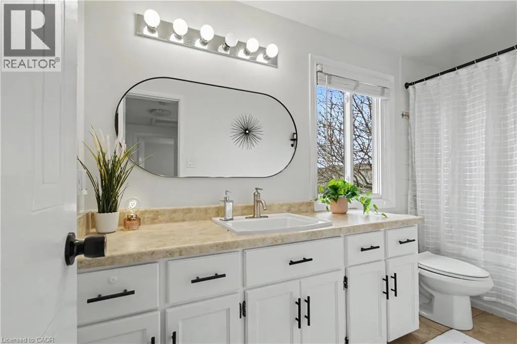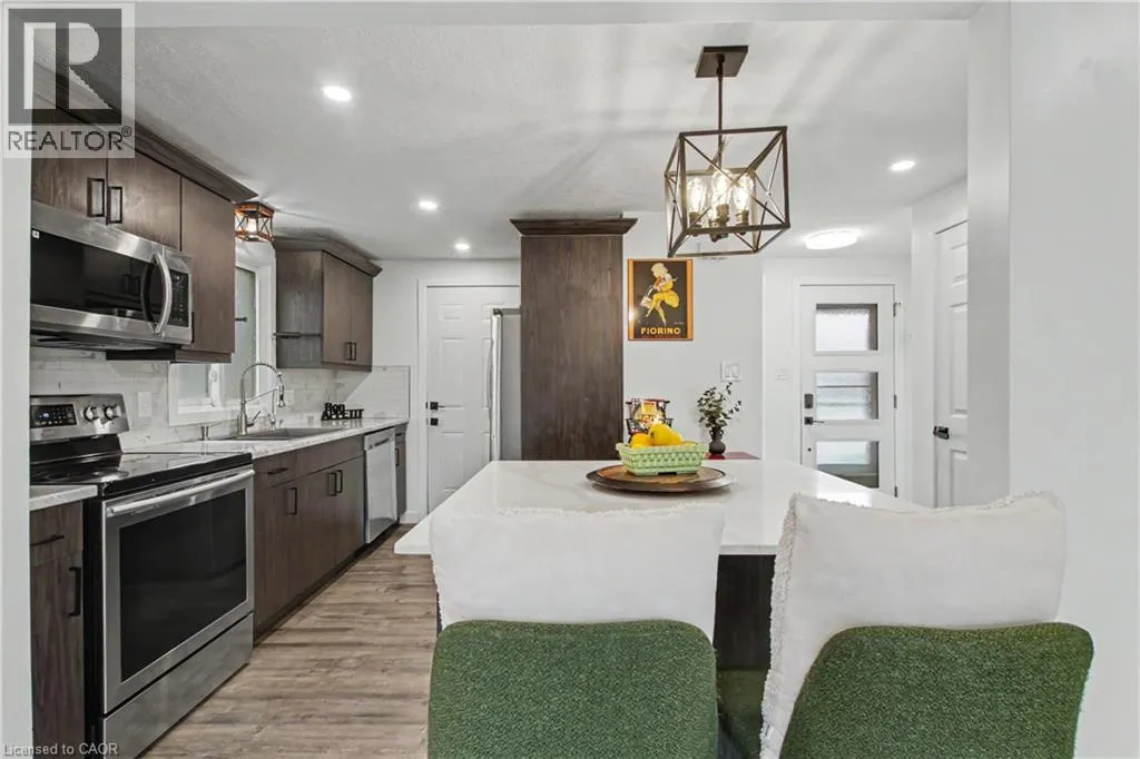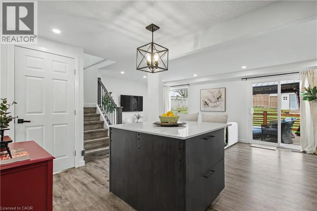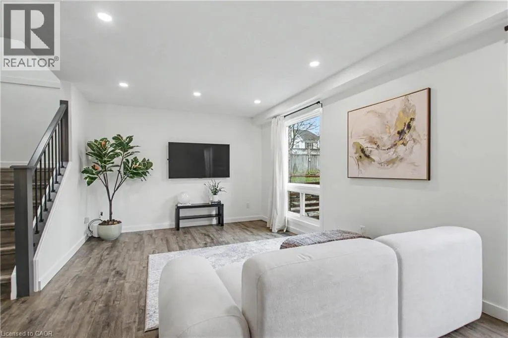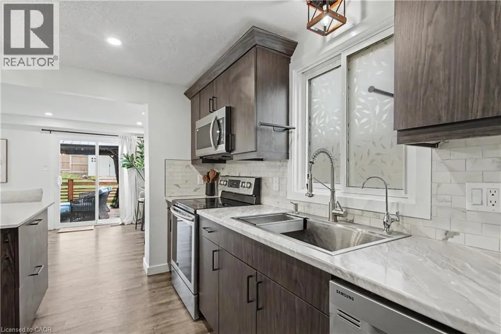 If youâve been searching for a beautiful and meticulously maintained, move-in ready home with a bright open-concept layout ideal for entertaining, this could be the one! From the moment you arrive, youâll appreciate the impressive 69 ft frontage, triple-wide driveway, and a welcoming front porch - the perfect spot to enjoy your morning coffee. Inside, the home offers a warm and stylish feel, featuring a gorgeous updated kitchen with island and breakfast bar, along with a reverse osmosis drinking water system. The main floor also includes a convenient 2-piece bath and direct access to the garage. The open living and dining areas flow seamlessly to the backyard through sliding doors, leading to a spacious deck and gazebo which is ideal for outdoor dining and hosting guests. Upstairs, youâll find three comfortable bedrooms and a well-appointed main bathroom, along with striking wrought iron railings that add a modern touch. The finished basement offers additional living space with tall ceilings, luxury vinyl flooring, and crown mouldingâ¦perfect for a family room, home theatre, gym, or flexible use. A rough-in for a third bathroom adds future potential. Additional features include high-efficiency forced air heating and central air, updated flooring throughout, fresh paint, updated most windows and eaves, and the deck is approximately six years old. Set on an oversized lot with two storage sheds and plenty of room to enjoy and endless possibilities (possibly a pool, hot tub or garden suite). This home is conveniently located within a short drive to a wide range of amenities including amazing greenspace walking trails at the end of the street, shopping, restaurants, parks, swimming, golf courses, 2 bustling downtowns, public transportation and major commuter routes. All appliances are included. Be sure to put this beauty on your âmust seeâ list! (id:27476)