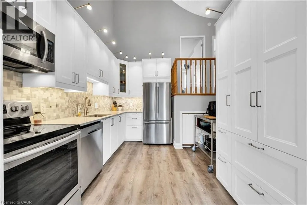 From Homer Watson, east onto Pioneer Drive, left onto Green Valley Drive, left at 42 Green Valley, all the way to the end, turn left, and the beautiful home is there at the left, plenty of visitor parking across from the home here! Enjoy. This is the one! Amazing value! Modern, updated, bright, & move in ready! 3 bedrooms, 2 bathrooms, single car garage, single car driveway, with more spaces available for rent, as well as a lot of visitor parking right across from the home! Beautiful front porch leading into the foyer with coat closet, and 2 piece bathroom, the main level features a open and spacious living room with backyard deck access, dining room, and the beautiful new kitchen done in 2019 with white cabinetry, stainless steel appliances, beautiful backsplash & quartz countertop! So much storage and a beautiful pantry, plus this storage and utility cart, perfect bonus for when baking or entertaining guests. There is a little storage area on this floor as well here. The kitchen ceiling height is extraordinary, 16 feet 8 inches high! Open to the top level of the home with a rounded balcony feel from the top level looking down. 3 spacious bedrooms with a ensuite privilege bathroom off the primary bedroom as well as a office or reading book in the primary bedroom as well, it's ideal! The walkout basement features a rec room with plenty of space for the family to enjoy, and a sliding patio door the lower deck, so nice and bright. The laundry room and bonus storage room complete this level. This home is steps to shopping, parks, trails, the Grand River, and a very short drive to the 401! It's an amazing home in an amazing location! Book your showing ASAP to ensure you do not miss out! **See video for full tour!!** (id:27476)