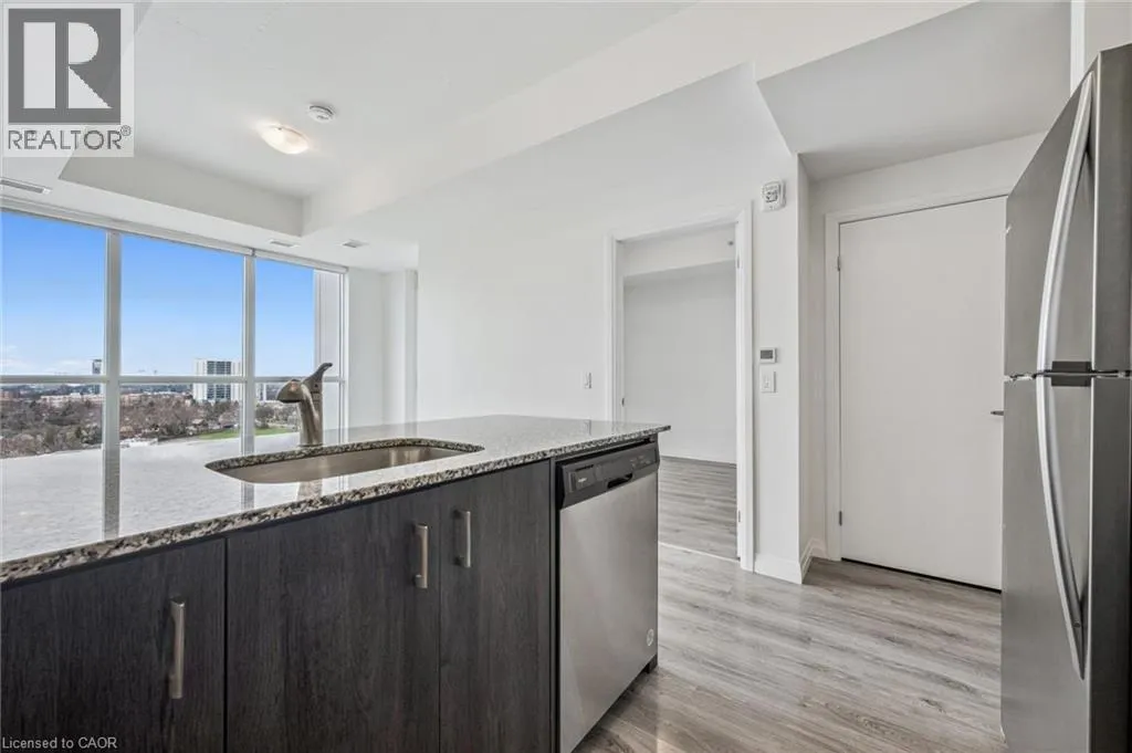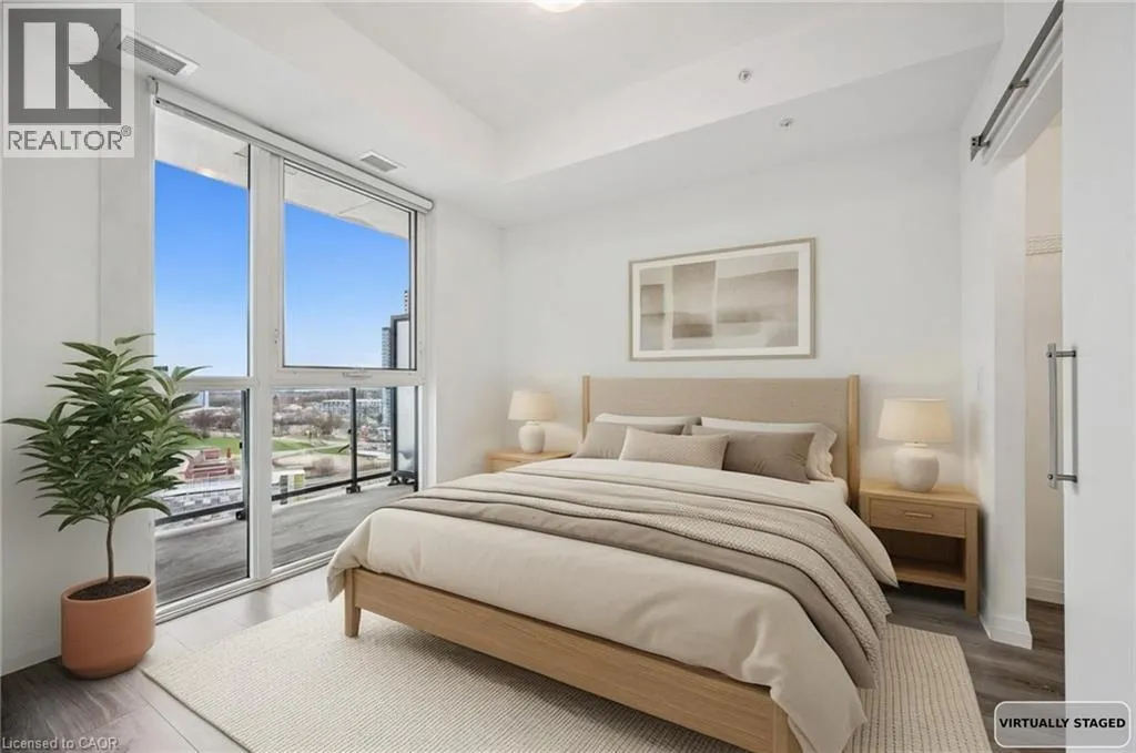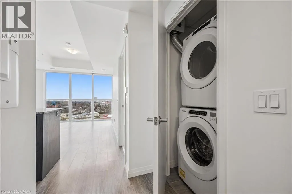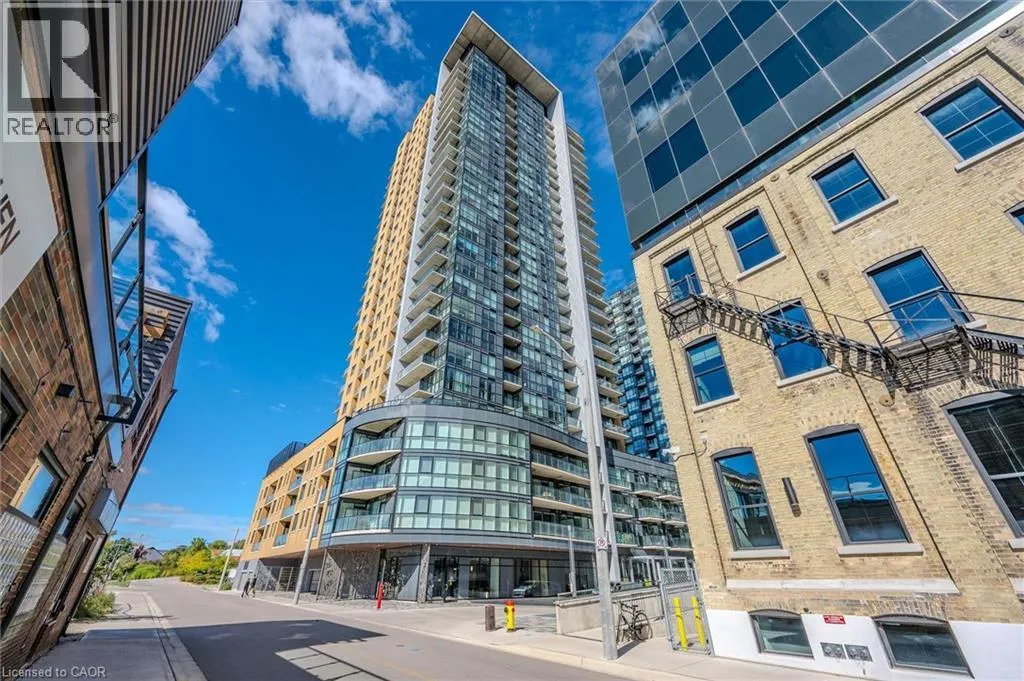 Experience elevated urban living in this stunning 1-bedroom, 1-bathroom condo located on the 20th floor of the sought-after Garment Street Lofts. Perfectly positioned directly in the Innovation District, you are steps away from major employers with KPMG on your doorstep, Deloitte across the street, and Google just down the road. This modern suite offers a bright, open-concept layout featuring floor-to-ceiling windows that flood the space with natural light and a contemporary kitchen upgraded with stainless steel appliances, stone countertops, and tile backsplash. The living area transitions seamlessly to a private balcony where you can enjoy breathtaking west-facing sunset views. The bedroom serves as a true retreat with a spacious walk-in closet for all your storage needs. With a Walk Score of 87, you are moments away from the ION light rail, local shopping and restaurants, and Victoria Park. Designed for ultimate convenience, the unit includes in-suite laundry, central air conditioning, and a storage locker. Residents gain access to an impressive suite of building amenities, including a state-of-the-art exercise room, a refreshing outdoor pool, a rooftop deck with a garden, and community BBQs. The building also offers concierge services. This unit is move-in ready and available immediately, offering a sophisticated lifestyle in Kitchenerâs most exciting neighbourhood with one underground parking space included. (id:27476)