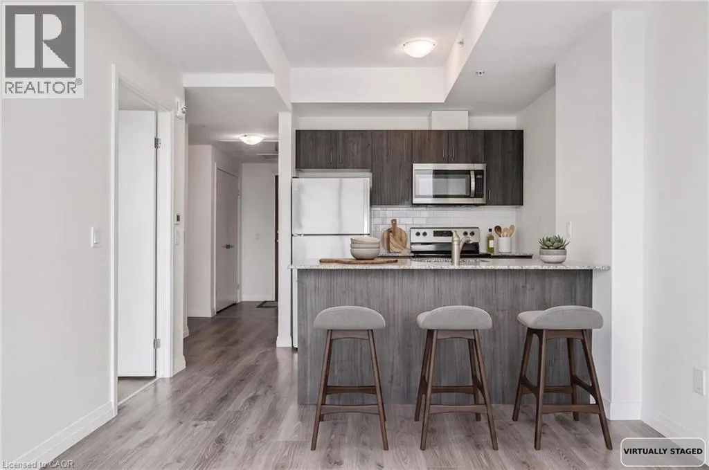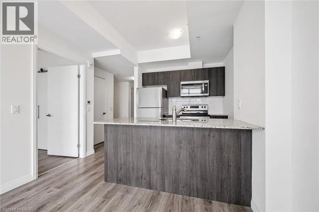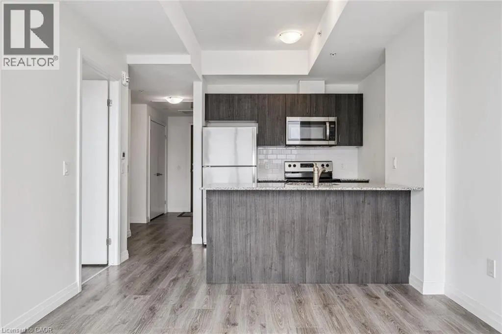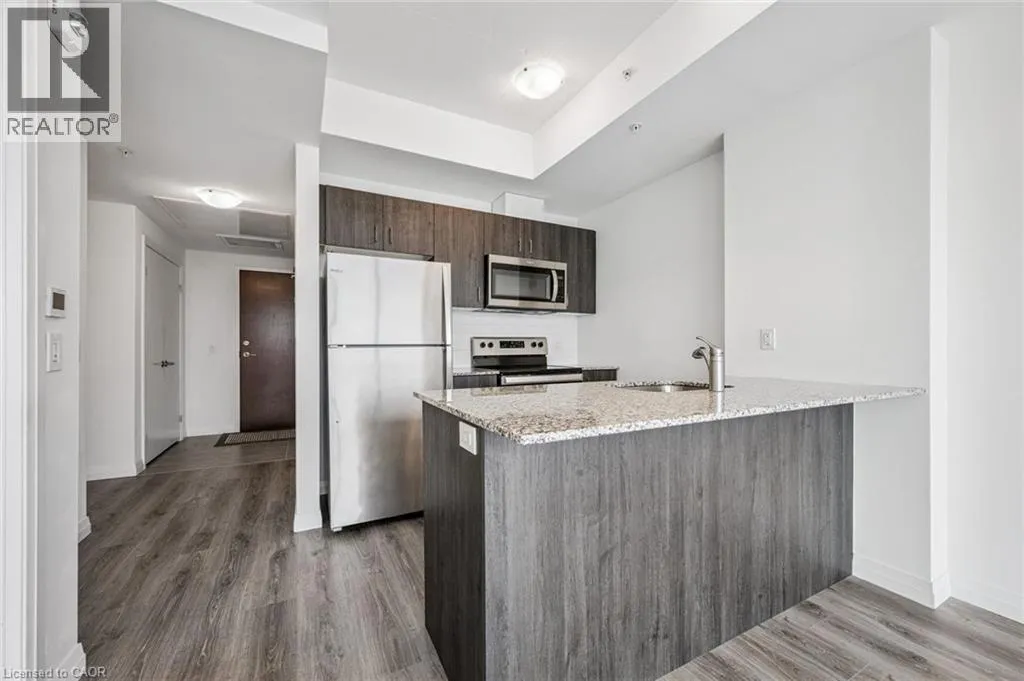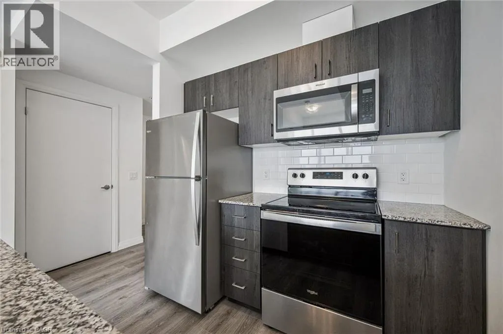 Experience elevated urban living in this stunning 1-bedroom, 1-bathroom condo located on the 20th floor of the sought-after Garment Street Lofts. Perfectly positioned directly in the Innovation District, you are steps away from major employers with KPMG on your doorstep, Deloitte across the street, and Google just down the road. This modern suite offers a bright, open-concept layout featuring floor-to-ceiling windows that flood the space with natural light and a contemporary kitchen upgraded with stainless steel appliances, stone countertops, and tile backsplash. The living area transitions seamlessly to a private balcony where you can enjoy breathtaking west-facing sunset views. The bedroom serves as a true retreat with a spacious walk-in closet for all your storage needs. With a Walk Score of 87, you are moments away from the ION light rail, local shopping and restaurants, and Victoria Park. Designed for ultimate convenience, the unit includes in-suite laundry, central air conditioning, and a storage locker. Residents gain access to an impressive suite of building amenities, including a state-of-the-art exercise room, a refreshing outdoor pool, a rooftop deck with a garden, and community BBQs. The building also offers concierge services. This unit is move-in ready and available immediately, offering a sophisticated lifestyle in Kitchenerâs most exciting neighbourhood with one underground parking space included. (id:27476)