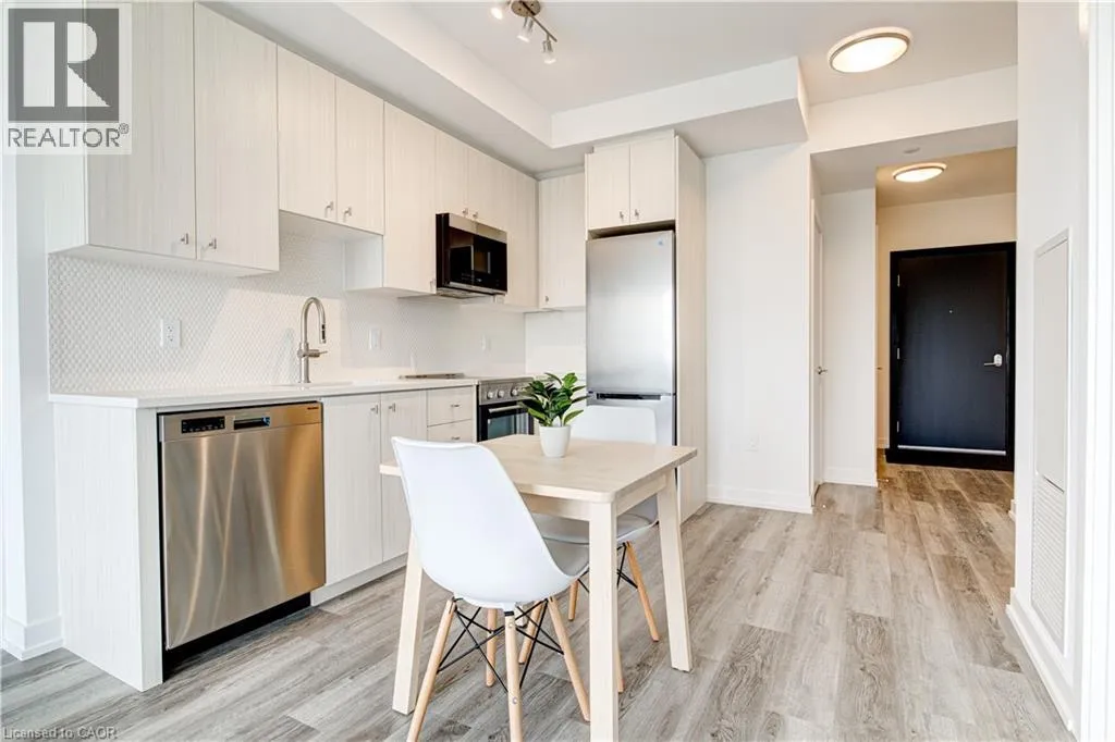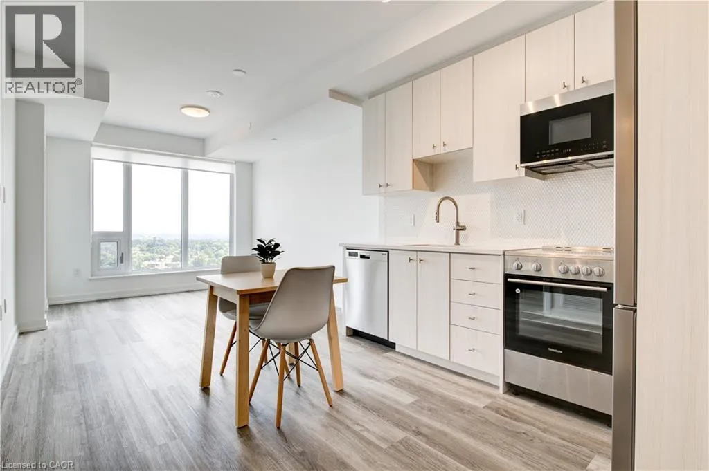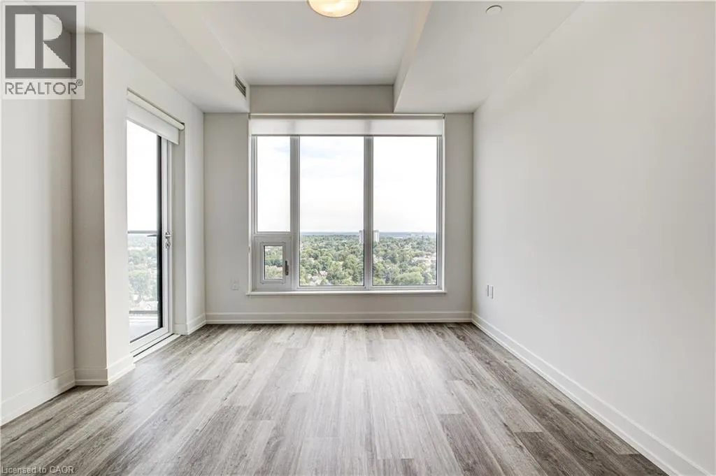 Wellington & King Discover an unparalleled living experience in this one-bedroom plus den, one-bath unit at the sub-penthouse floor of the prestigious Station Park Towers. This 625 sq. ft. gem, available for lease, offers breathtaking panoramic city views, encapsulating the essence of luxury and sophistication. Step into a carpet-free, elegantly designed space adorned with premium window coverings and partially furnished with essential pieces including a bedframe, side table, and dining set. The unit's open-concept layout is highlighted by a spacious dining area and a charming 50 sqft balcony, bringing the total living space to an expansive 675 sq ft. Modern Comfort and Convenience: Equipped with stainless steel appliances and a stackable washer/dryer, this home ensures the pinnacle of modern comfort. Underground parking adds to the convenience, making this unit perfect for contemporary urban living. Station Park holds World-Class Amenities; Indulge in a lifestyle of leisure and entertainment with an array of exclusive amenities: Two-lane Bowling Alley with a lounge, Premier Lounge Area with a bar, pool table, and foosball. Fitness Center complete with gym equipment, a yoga/pilates studio, and a Peloton studio. Landscaped Outdoor Terrace featuring cabana seating and BBQ facilities. Prime Location Located in the heart of the city where Downtown Kitchener meets Uptown Waterloo, Station Park offers unmatched convenience: New Transit Hub proposed nearby and the LRT station right at your doorstep on King Street Google Office just across the street Easy access to highways and bus routes. Book your private showing today! (id:27476)