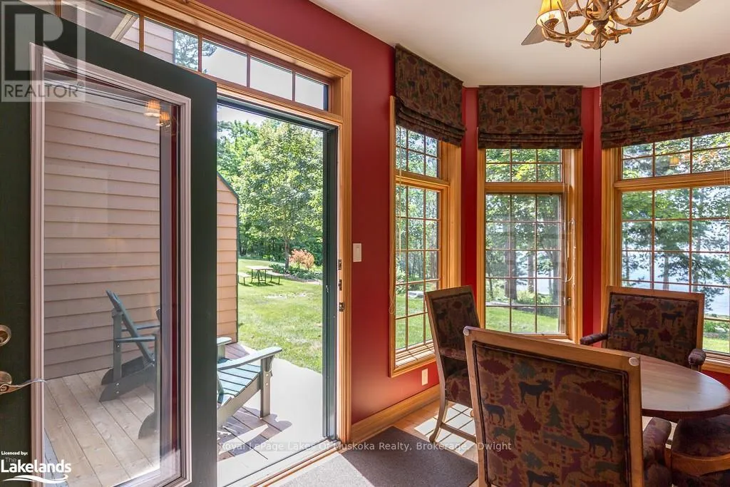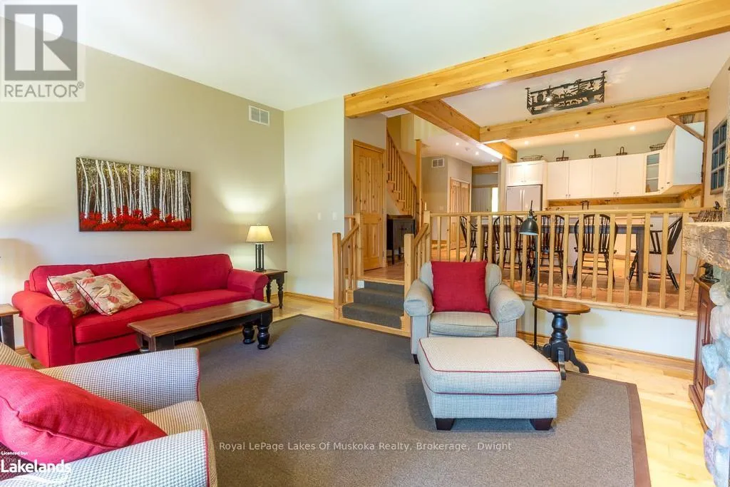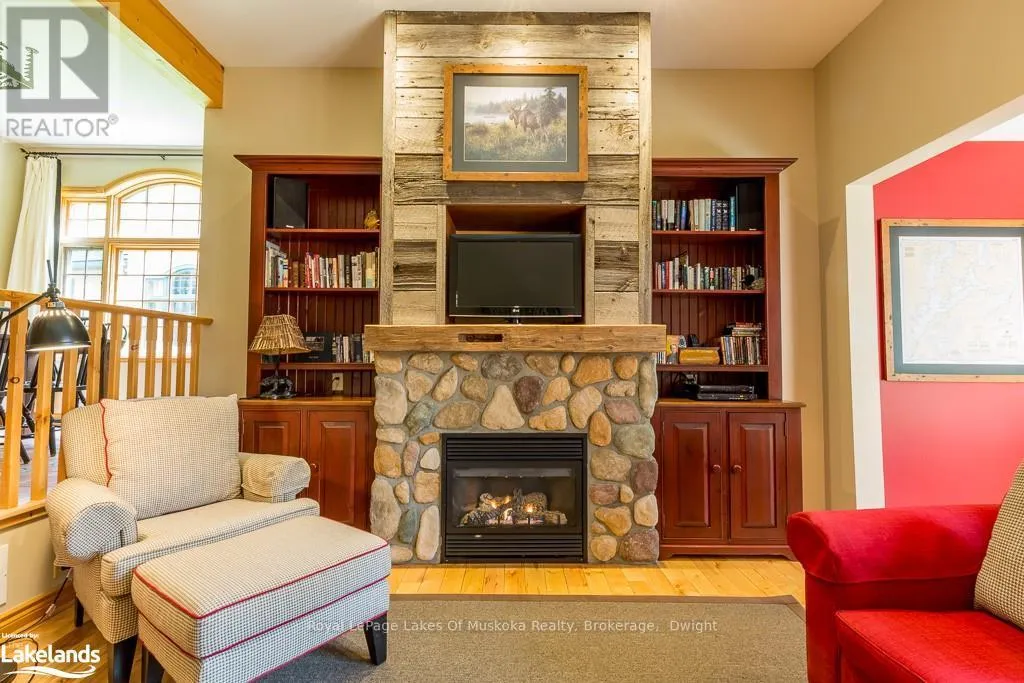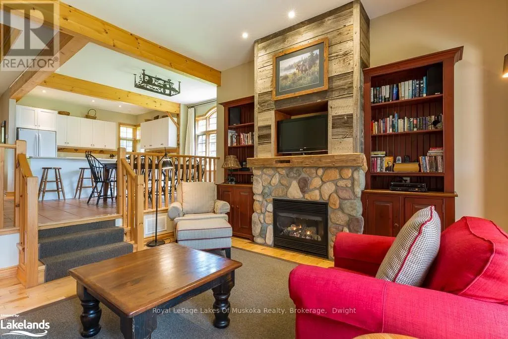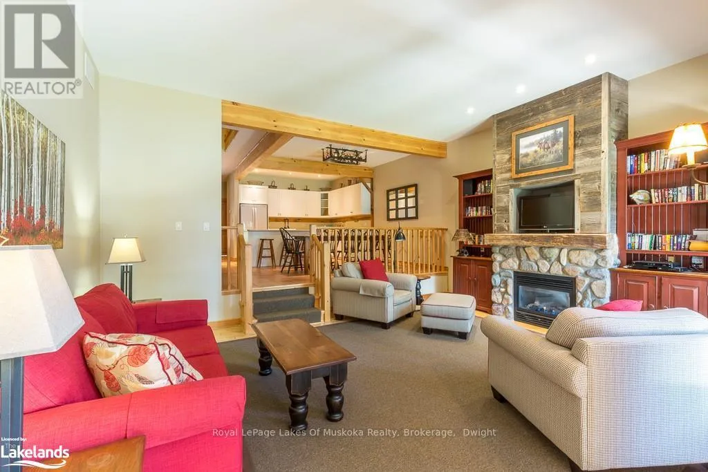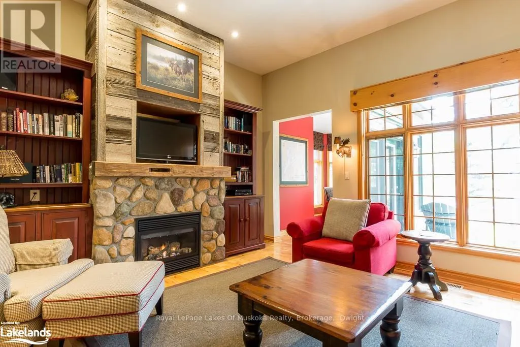 HWY 60 to Dwight Beach Road, to Corbett Cove Welcome to Corbett Cove - Your Muskoka Retreat Awaits! Experience the charm and tranquility of Lake of Bays with this premier fractional ownership opportunity at Corbett Cove in Dwight. Each bright and spacious 1,800 sq. ft. villa, designed with attention to comfort and luxury, offers a seamless blend of modern convenience and classic Muskoka ambiance. Each unit features soaring 9-foot ceilings, an all-season octagonal Muskoka room with lake views, and dual gas fireplaces in the living room and primary bedroom. These beautifully appointed, fully equipped units include everything you need for a worry-free stay. Enjoy unlimited fibre internet, and flat-screen TVs in both the living room and primary suite. The modern kitchen is equipped with top-of-the-line appliances?fridge, stove, microwave, dishwasher, A full washer and dryer is included for added convenience. With thoughtful touches like an outdoor gas barbecue, complete sets of dishes, utensils, cookware, towels, and linens, each villa provides a true vacation experience. Accommodating up to 8 guests, each two-bedroom unit features a comfortable pull-out sofa in the main floor den and the great room, ensuring ample space for family and friends. The two bedrooms and a full bathroom are located on the second floor, while the main level offers a three-piece bathroom with a walk-in shower. Corbett Cove?s prime location offers easy access to the charming village of Dwight, with shops, bakeries, and a library within walking distance. Nature enthusiasts will appreciate being just 10 minutes from Algonquin Park and a short 20-minute drive to the lively town of Huntsville, where you?ll find golf courses, ski resorts, theaters, restaurants, and shopping. \r\nCorbett Cove offers the perfect balance of peaceful relaxation and outdoor adventure. Five weeks of wonderful vacation annually. \r\nNote: This is a no pets allowed unit. (id:27476)