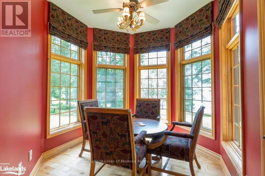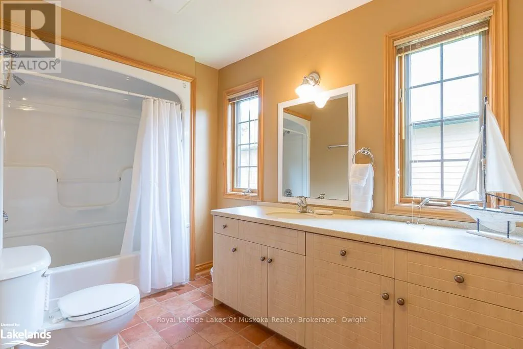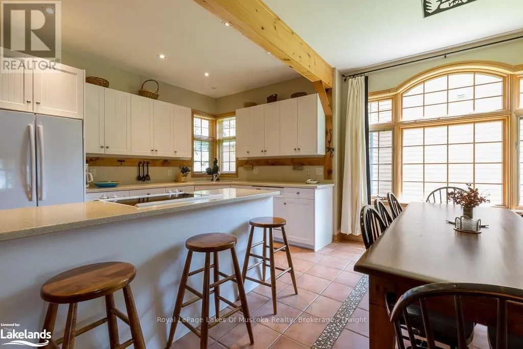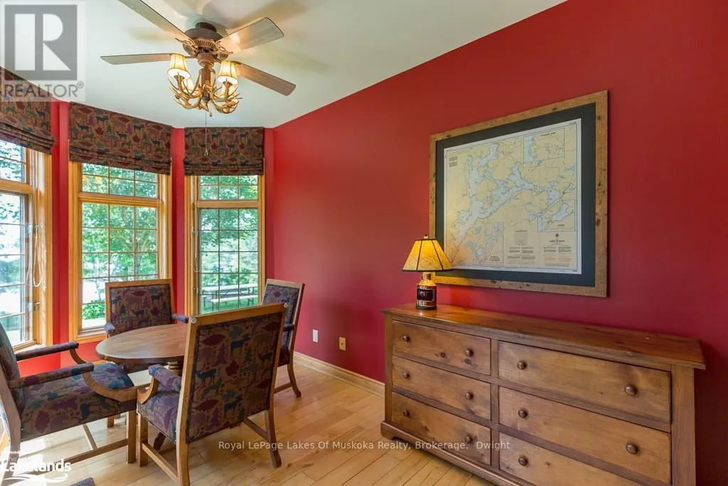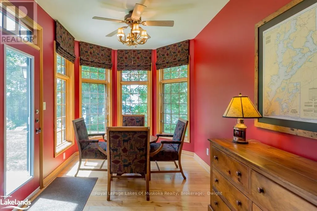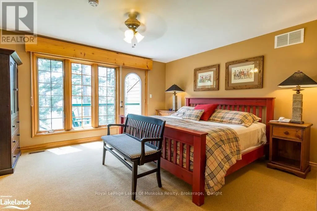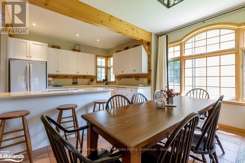 HWY 60 to Dwight Beach Road, to Corbett Cove Welcome to Corbett Cove - Your Muskoka Retreat Awaits! Experience the charm and tranquility of Lake of Bays with this premier fractional ownership opportunity at Corbett Cove in Dwight. Each bright and spacious 1,800 sq. ft. villa, designed with attention to comfort and luxury, offers a seamless blend of modern convenience and classic Muskoka ambiance. Each unit features soaring 9-foot ceilings, an all-season octagonal Muskoka room with lake views, and dual gas fireplaces in the living room and primary bedroom. These beautifully appointed, fully equipped units include everything you need for a worry-free stay. Enjoy unlimited fibre internet, and flat-screen TVs in both the living room and primary suite. The modern kitchen is equipped with top-of-the-line appliances?fridge, stove, microwave, dishwasher, A full washer and dryer is included for added convenience. With thoughtful touches like an outdoor gas barbecue, complete sets of dishes, utensils, cookware, towels, and linens, each villa provides a true vacation experience. Accommodating up to 8 guests, each two-bedroom unit features a comfortable pull-out sofa in the main floor den and the great room, ensuring ample space for family and friends. The two bedrooms and a full bathroom are located on the second floor, while the main level offers a three-piece bathroom with a walk-in shower. Corbett Cove?s prime location offers easy access to the charming village of Dwight, with shops, bakeries, and a library within walking distance. Nature enthusiasts will appreciate being just 10 minutes from Algonquin Park and a short 20-minute drive to the lively town of Huntsville, where you?ll find golf courses, ski resorts, theaters, restaurants, and shopping. \r\nCorbett Cove offers the perfect balance of peaceful relaxation and outdoor adventure. Five weeks of wonderful vacation annually. \r\nNote: This is a no pets allowed unit. (id:27476)