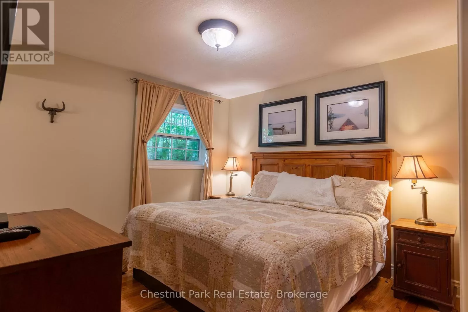 Cross Streets: Hwy 60 and South Portage Rd. ** Directions: From Huntsville Hwy 60 east to South Portage Rd to Rat Bay Rd to Blue Water Acres. Blue Water Acres FRACTIONAL ownership means that you share the cottage with 9 other owners but you will own yourself a 1/10th share of the cottage (your "Interval" week) and also a smaller share in the entire resort. This cottage is known as 111 Algonquin and it's a favourite at Blue Water Acres. It has 2 spacious bedrooms, and 2 bathrooms. The core summer week in 2025 will start on June 29. The cottage has a cozy propane fireplace and a screened-in Muskoka Room. You will have exclusive use of the cottage for 5 weeks of the year. The check-in day for this unit is Sunday. Weeks in 2025 start(ed) on March 2, June 8, June 29 (core/fixed week), October 26 and December 21, 2025. The 4 floating weeks rotate each year so it's fair to all the owners. There are many amenities at Blue Water Acres: hot tub/sauna, all linens and towels supplied, kayaks, paddle boats, a beautiful sand beach, 300 ft of waterfront on Lake of Bays, indoor swimming pool, owners' gathering room with grand piano and large TV screen , games room with pool tables, ping pong table, shuffle board & foosball, fitness room, tennis/pickleball court, basketball courts, large children's playground & equipment. You can moor your own boat during your own boating season weeks. Winter tube slide, skating rink & fire pit. There is so much to do here! All cottages are pet-free and smoke-free. This is an affordable way to enjoy cottage life without the cost or hassles of full cottage ownership. Maintenance fees include everything and are paid in the fall for the following year. The ANNUAL fee for EACH of the owners in 111 Algonquin cottage for 2025 is $5,026 + HST. This fee can be paid in two installments, November and March. There is NO HST on the purchase price of the cottage. It's a unique way to own a part of Muskoka. Your weeks can be traded for weeks at other luxury resorts around the world. Some photos & floor plan shown are for a similar cottage but may not be identical to the subject cottage. (id:27476)
