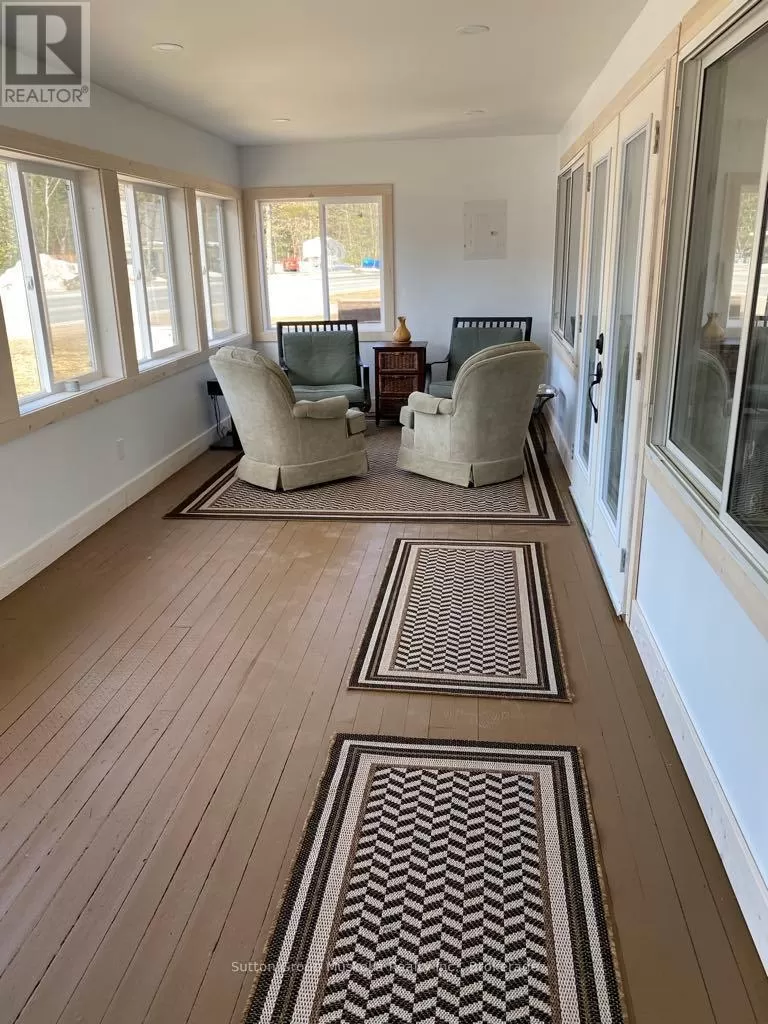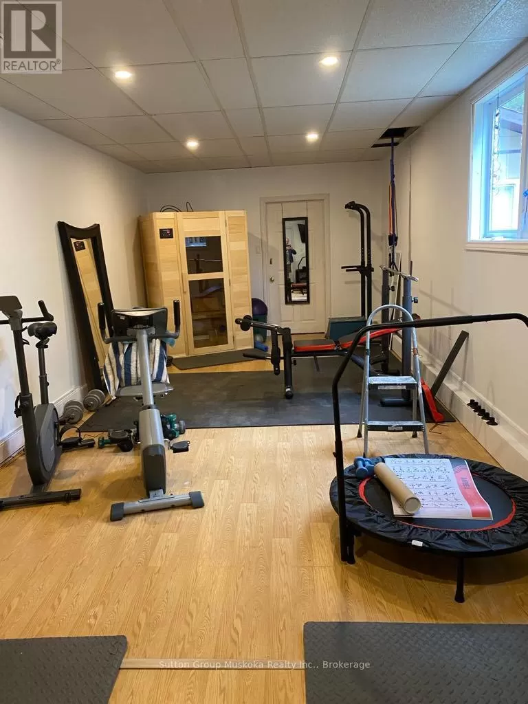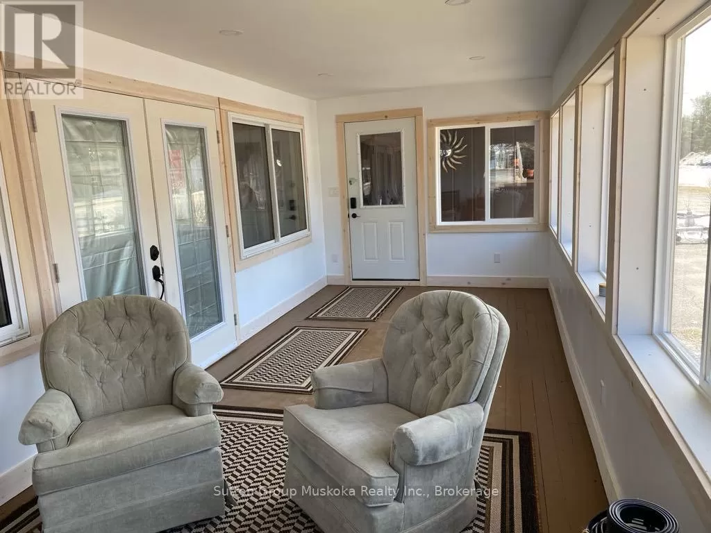 Cross Streets: Highway 60 & Dwight Bay Road. ** Directions: Highway 60 east to #2831. This property is located in the heart of Dwight, half way between Huntsville & Algonquin Provincial Park, within walking distance to beautiful sandy Dwight Beach on Lake of Bays. This building has been renovated, new spray foam insulation, all new windows, new electrical, new drilled well pump, hookup for generator (Generlink) just to name a few. The main level has a nice bright open retail/business commercial area, approx. 800sqft or could be used as another room, has a bright front porch area at the front of the building. In the back part, storage room with a 2pc bathroom for retail space if needed, plus a large approx. (40x36) work room or garage with side garage door, back door to back yard. There's also another room, currently used as a gym /sauna. The 2nd level has a 3 bedroom, 2 bathroom home. An open concept living/dining and kitchen with large island, huge windowns and patio door to bring the natural sunlight in. The livingroom has a woodstove to cozy up to on those winter evenings. A large master bedroom suite with walk-in closet and 2 pc ensuite. Main floor laundry as a bonus in this home. Back yard includes a deck, gazebo with hot tub area with gardens to enjoy the natural woods behind. There's a single car garage attached at the front of the building with more parking out front. This property is perfect for storefront/retail or self-employed buisiness. Lot's of opportunity and potential to live, work and play in beautiful Lake of Bays, Muskoka! (id:27476)