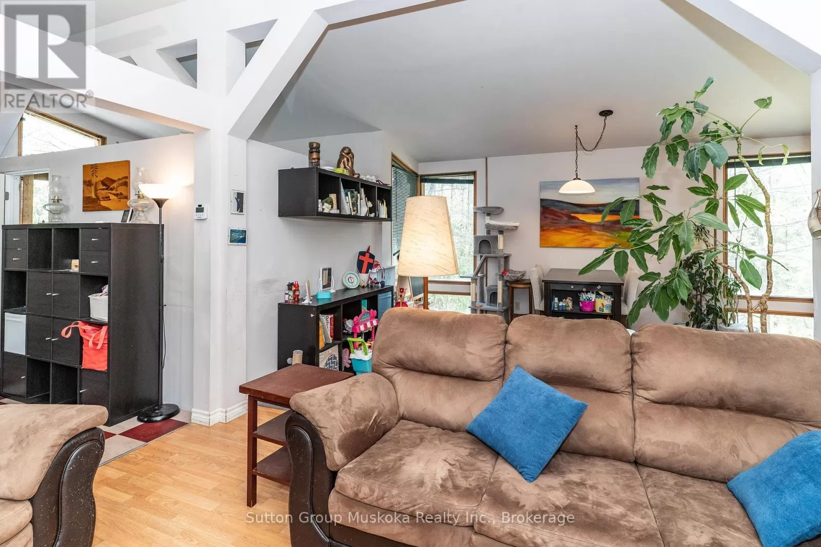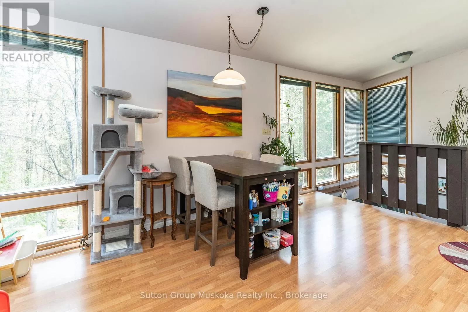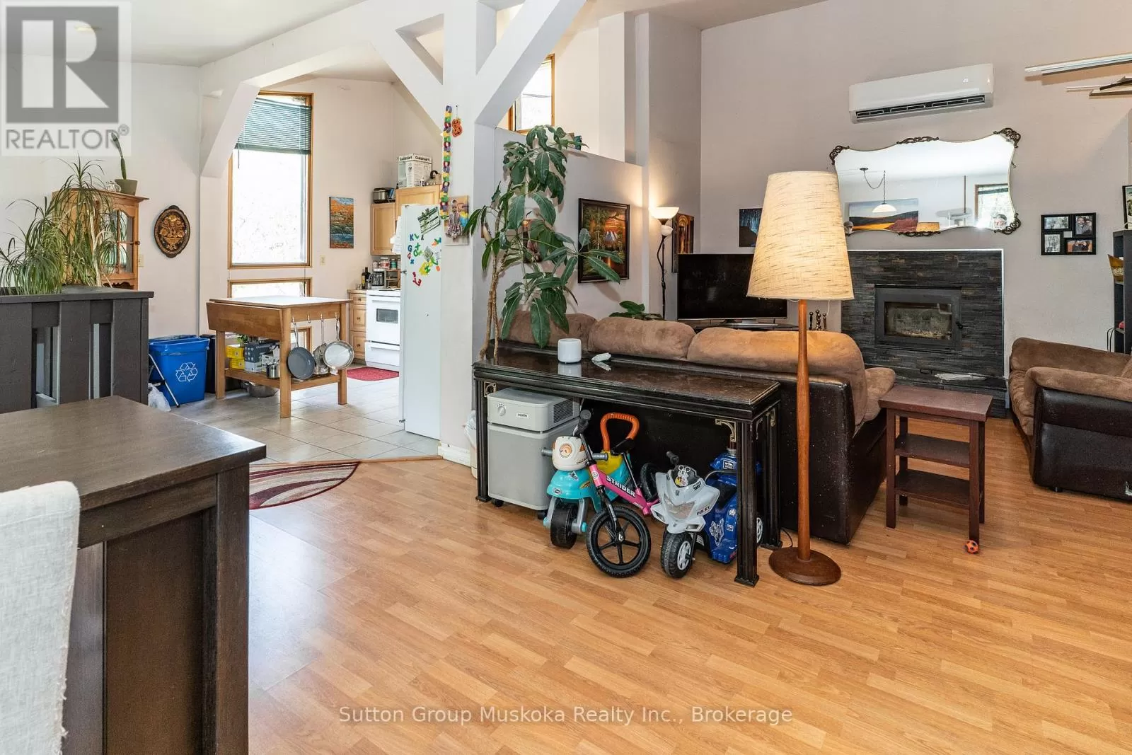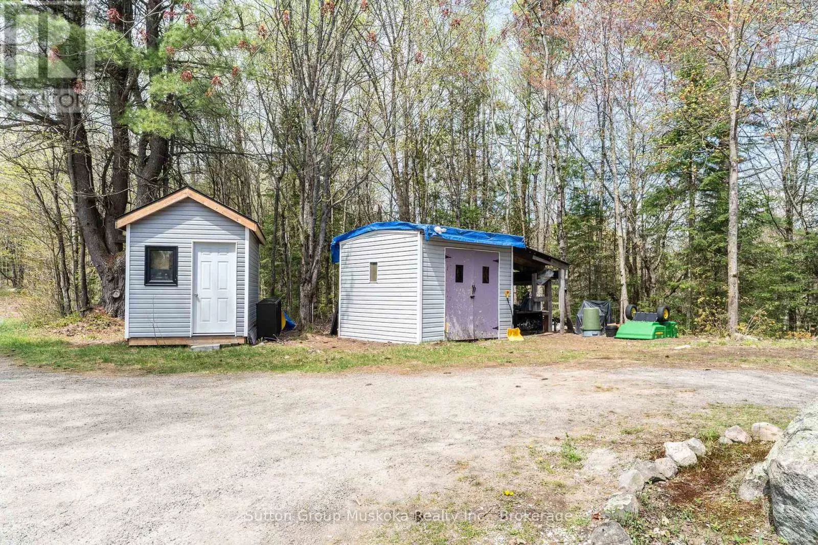 Cross Streets: Browns Brae / Paint Lake. ** Directions: 117 to Browns Brae to Paint Lake Rd. What a fabulous spot to enjoy your cabin in the woods. This 2-storey year-round home / cottage offers what so many people are looking for when they want to come to Muskoka --- peace and quiet! If living in the forest is your dream, then you will love the privacy that this 8-acre parcel offers. Surrounded by wilderness, the home features 3 bedrooms, a full washroom, 2 levels of comfort and a walk out. Enjoy the open concept design on the main floor with a wood burning fireplace, nice high ceilings for sunlight and main floor office. Secondary heat source and A/C are offered via an electric powered heat pump system. While enjoying the land, make use of the outbuildings on the property for hobbies and storage. Added bonus? Current zoning may allow an additional dwelling/sleeping cabin or Hobby farm. The possibilities are numerous! This is a perfect property for a renovator / contractor to make a few repairs and upgrades and enjoy this quiet Muskoka spot. Come take a look. Adjacent 77 acres - vacant land also for sale with same Seller. (id:27476)