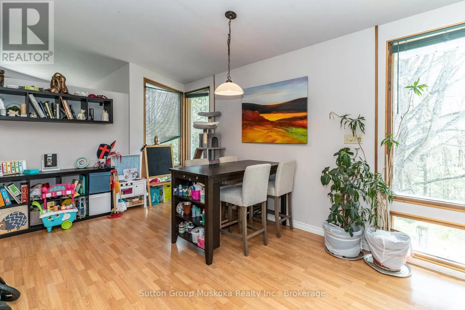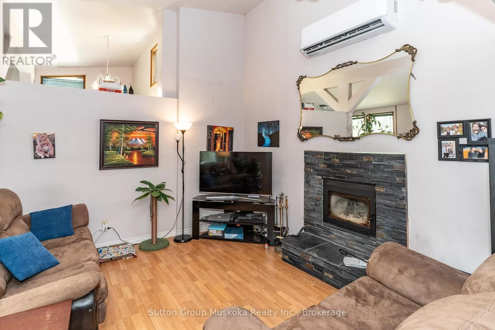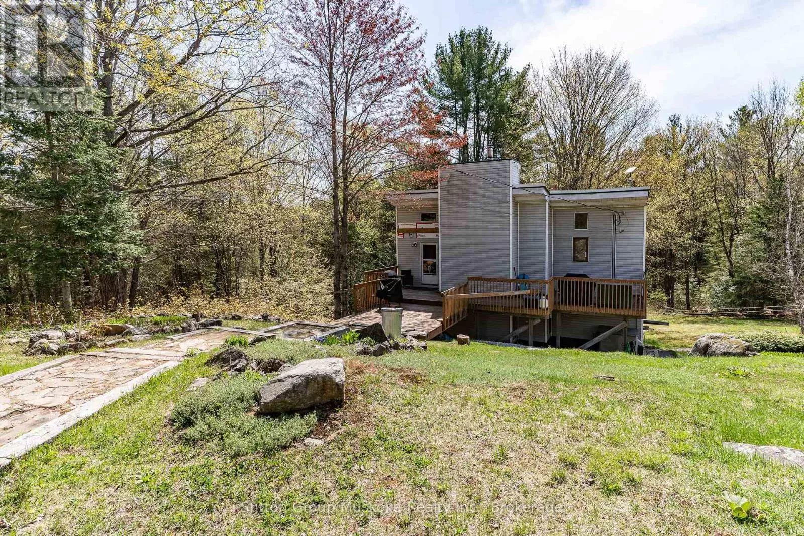 Cross Streets: Browns Brae / Paint Lake. ** Directions: 117 to Browns Brae to Paint Lake Rd. What a fabulous spot to enjoy your cabin in the woods. This 2-storey year-round home / cottage offers what so many people are looking for when they want to come to Muskoka --- peace and quiet! If living in the forest is your dream, then you will love the privacy that this 8-acre parcel offers. Surrounded by wilderness, the home features 3 bedrooms, a full washroom, 2 levels of comfort and a walk out. Enjoy the open concept design on the main floor with a wood burning fireplace, nice high ceilings for sunlight and main floor office. Secondary heat source and A/C are offered via an electric powered heat pump system. While enjoying the land, make use of the outbuildings on the property for hobbies and storage. Added bonus? Current zoning may allow an additional dwelling/sleeping cabin or Hobby farm. The possibilities are numerous! This is a perfect property for a renovator / contractor to make a few repairs and upgrades and enjoy this quiet Muskoka spot. Come take a look. Adjacent 77 acres - vacant land also for sale with same Seller. (id:27476)