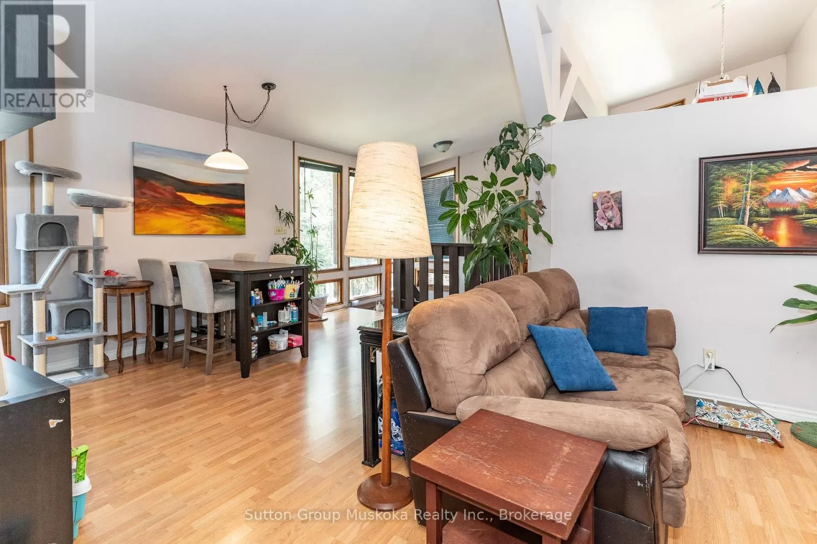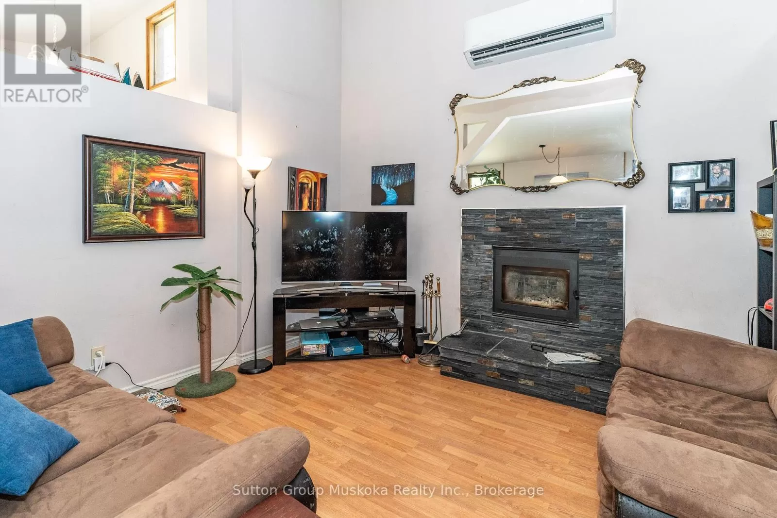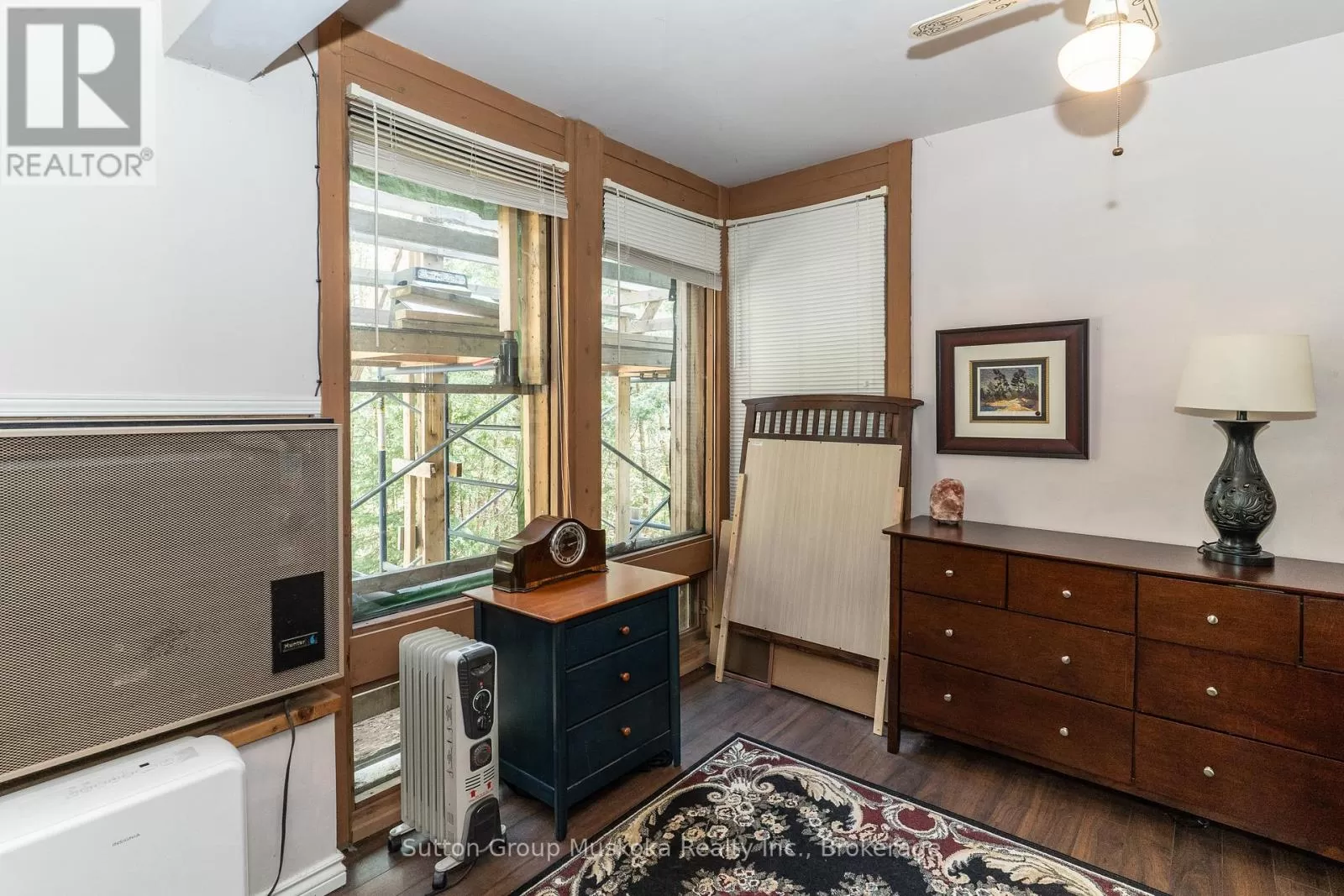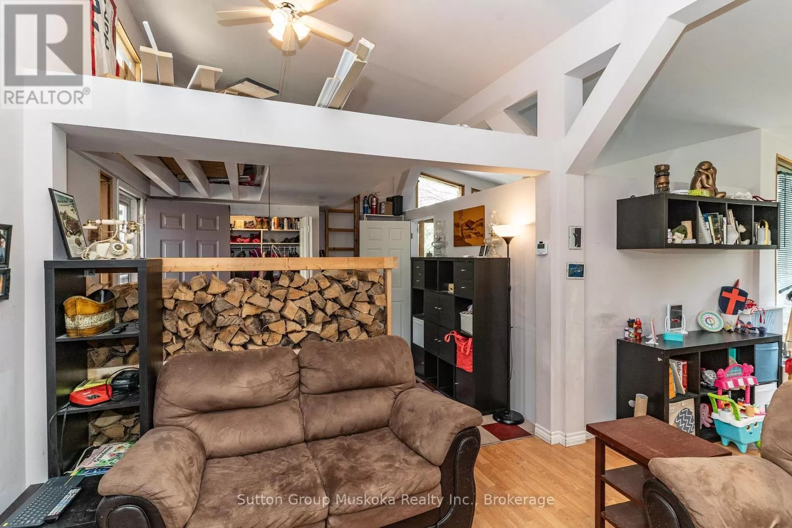 Cross Streets: Browns Brae / Paint Lake. ** Directions: 117 to Browns Brae to Paint Lake Rd. What a fabulous spot to enjoy your cabin in the woods. This 2-storey year-round home / cottage offers what so many people are looking for when they want to come to Muskoka --- peace and quiet! If living in the forest is your dream, then you will love the privacy that this 8-acre parcel offers. Surrounded by wilderness, the home features 3 bedrooms, a full washroom, 2 levels of comfort and a walk out. Enjoy the open concept design on the main floor with a wood burning fireplace, nice high ceilings for sunlight and main floor office. Secondary heat source and A/C are offered via an electric powered heat pump system. While enjoying the land, make use of the outbuildings on the property for hobbies and storage. Added bonus? Current zoning may allow an additional dwelling/sleeping cabin or Hobby farm. The possibilities are numerous! This is a perfect property for a renovator / contractor to make a few repairs and upgrades and enjoy this quiet Muskoka spot. Come take a look. Adjacent 77 acres - vacant land also for sale with same Seller. (id:27476)