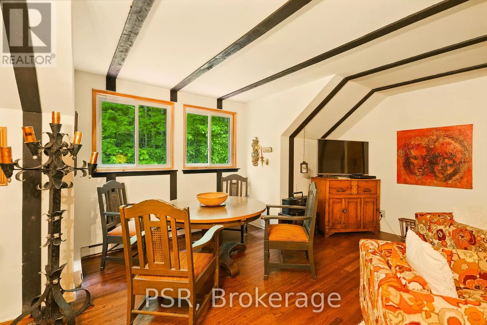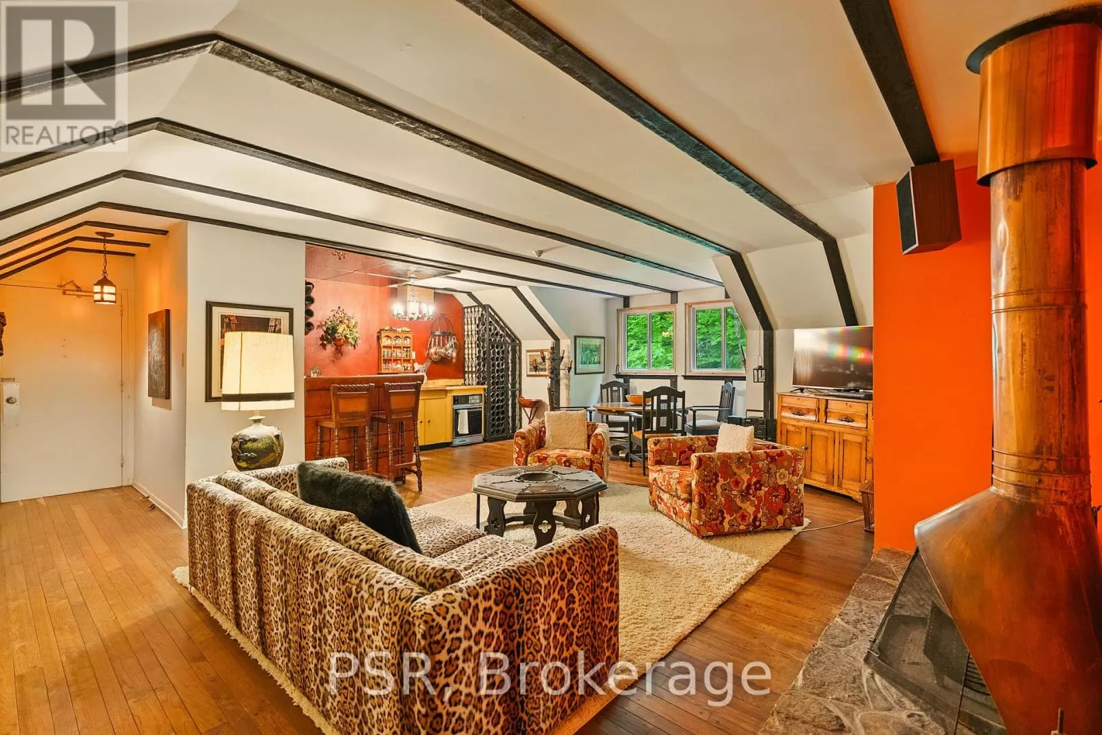 Highway 117 / Old Highway 117 Discover this rare top-floor 2-bedroom, 2-bathroom penthouse suite offering 1,310 sq ft of inviting, character-filled living space in one of Muskoka's most exclusive and storied communities. Privately situated at the quiet end of the building, this suite offers peace, privacy, and a unique connection to the islands natural surroundings. Professionally decorated in the 1970s and thoughtfully maintained ever since, the suite blends nostalgic charm with timeless Muskoka appeal. The spacious open-concept living area is filled with natural light and offers a comfortable setting for relaxing or entertaining. Two generous bedrooms including a private primary suite are complemented by two full bathrooms and a rustic, well-appointed kitchen that adds to the homes warm, retro personality. Enjoy the ease and privacy of top-floor living with no neighbours above, a dedicated fire escape, and access to a lifestyle like no other. Bigwin Island offers a serene, car-free environment with private ferry service, quiet walking trails, and a welcoming sense of community. Residents also have the option to apply for membership to the prestigious Bigwin Island Golf Club- one of Canadas top-ranked private courses (membership currently waitlisted).Whether you're seeking a weekend retreat, a seasonal escape, or a truly special investment, this one-of-a-kind suite offers the charm, history, and exclusivity that define the Bigwin Island experience. (id:27476)