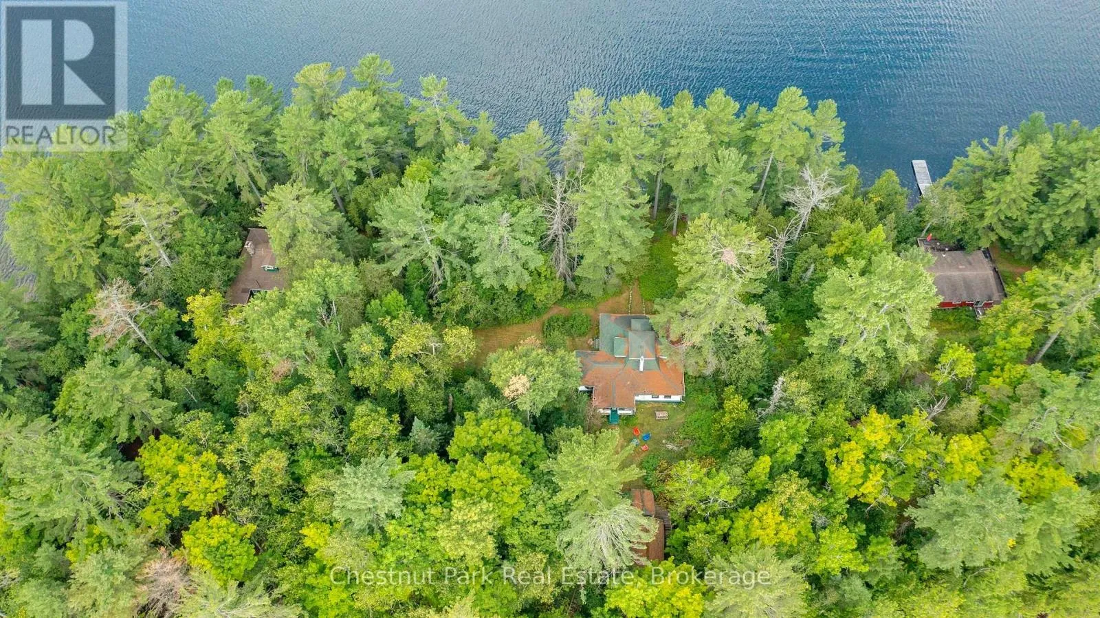 Cross Streets: Maplehurst & Shaw. ** Directions: Landing at Maplehurst Drive. A rare 1.5-acre estate on Peninsula Lake. Hills Island, blending history, privacy, and natural beauty. With over 540 feet of shoreline and both east and west exposures, it offers sun from dawn to dusk, showcasing stunning sunrises and sunsets. Direct access to 40 miles of boating across a scenic four-lake chain connects via the Muskoka River. Reachable in five minutes by boat from mainland parking and mooring. A three-slip boathouse along the sheltered east shoreline provides storage and launching for lake adventures. The property offers seclusion without sacrificing convenience. The charming 1904 cottage, with a storied past, once served as a stop for the steamship from Huntsville to North Portage and was the centerpiece of The Isle of Dunelg, a small resort favoured by upscale summer visitors. Remaining in the same family for 50 years, it's a treasured legacy. With care and vision, this presents a rewarding project for heritage lovers. Wake to sunrises with coffee on the dock. The inviting main cottage features an eat-in kitchen, dining area, anchored by an original stone fireplace. In the evenings, relax by the granite fireplace in the spacious living room. A wraparound veranda offers sunset views, with a path through ancient white pines to the west shoreline for evening swims. Accommodating family and guests, it includes two main bedrooms and four private cabins, sleeping 15 comfortably; ideal for multi-generational gatherings. A sunny meadow, once a tennis court, provides space for play or future plans, framed by nature. Dunelg is a timeless retreat where history lives in every stone and tree, awaiting its next chapter. (id:27476)
