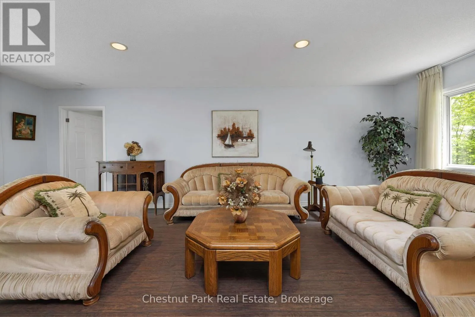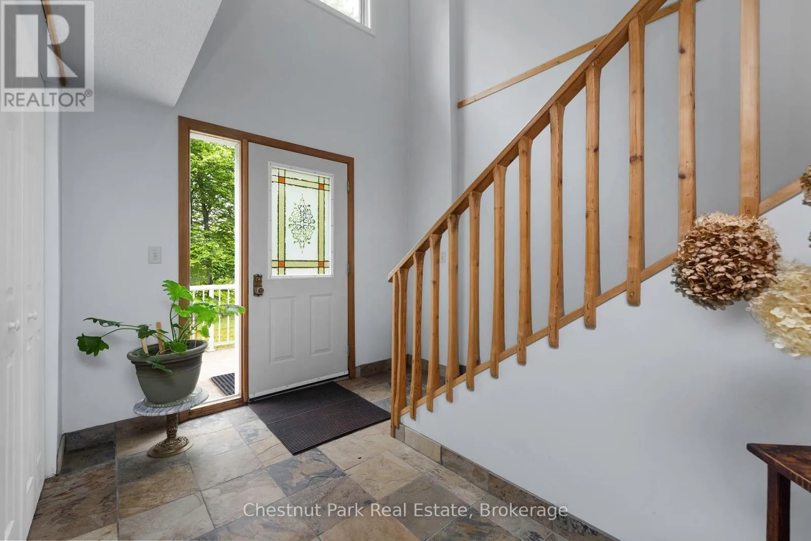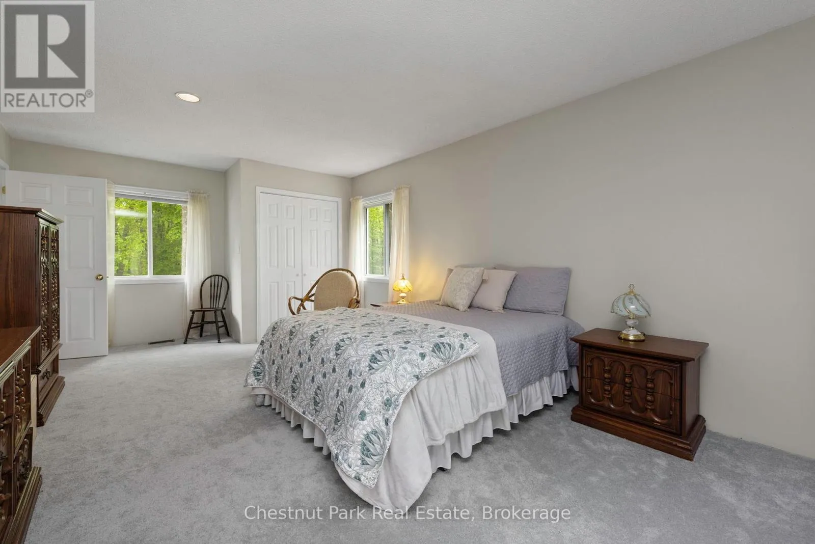 Cross Streets: Brunel Rd and Muskoka Rd 117. ** Directions: Take Brunel Rd north towards Huntsville, property is on your right. Spacious, serene, and surrounded by Muskoka beauty - this is where your next chapter begins. Set on 8.86 acres of peaceful forest and wildlife, this 3275 sq ft year-round home offers space, seclusion, and scenery in equal measure. A large circular driveway winds through the trees to a detached 2-car garage, tool shed, and sprawling yard, framed by tall pines and lush hardwoods. Expansive upper and lower decks invite you to relax outdoors and soak in the tranquil surroundings - moose, deer, and foxes are your closest neighbours. With Lower Schufelt Lake just steps from the edge of the property and picturesque Tooke Lake across the road, you'll feel immersed in nature at every turn. Step inside to a spacious foyer that opens into a warm and inviting den with a cozy propane fireplace framed by brick, and a generous formal dining room with lovely backyard views. The galley-style kitchen offers ample counter space and a sunny eat-in area, perfect for casual meals and morning coffee. Also on the main floor: a 3-piece bathroom, laundry room, furnace room, mudroom off the back entrance, and a 5th bedroom that could easily be used as a home office, gym, or guest space. Upstairs, a wide staircase leads to a bright and airy living area - an ideal flex space for a media room, playroom, or studio with walkout to the upper deck. Four bedrooms include a large primary with a beautifully updated 3-piece ensuite and walk-in shower, a huge second bedroom with his-and-hers closets, and two more generously sized bedrooms. A 4-piece bathroom rounds out the upper level. This expansive lot offers a world of possibilities. With flexible zoning and generous space, it's ready to adapt to your ideas whether that means multi-generational living, income potential, a home-based business, future guest bunkie or studio, trails and gardens, or simply room to spread out and explore. Live, work, create, or grow with this property - it welcomes it all. All just 5 minutes from the heart of Baysville. (id:27476)