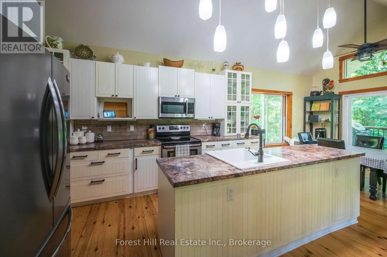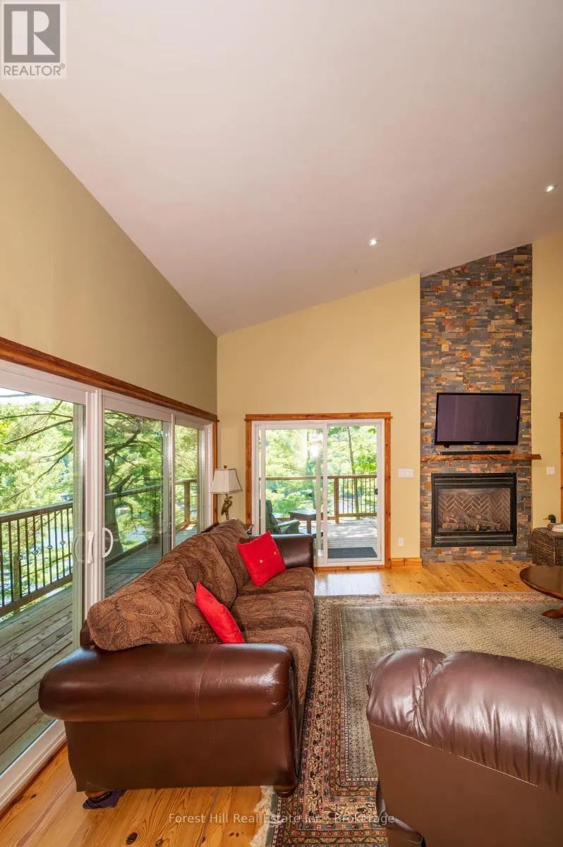 Cross Streets: Delbrooke, Bayview point. ** Directions: Highway 35 to seabreeze road, to bayview point, to delbrooke road follow signs. Lake of Bays splendor!!! with this gorgeous five bedroom recently renovated upgraded home! You'll love being totally private at the end of the road with absolutley no highway noise! surrounded by tall mature Oaks and Pines bathed in nature on one of Ontarios most beautiful lakes. The layout of the cottage is meticulously planned to bring nature in with large windows as part of the open concept living room kitchen dining room all around the fireplace creating an ideal family space for generations of memories!! Not too mention all the decks are covered so you can enjoy that morning coffee anytime in any weather, and from both levels of the cottage! Ok, theres also a detached Triple Car Garage not too far from the cottage for all your vehicles and toys. Also you'll love all the options for your family that the ground floor level gives you, with a second partial kitchen, second family room, sun room and three other bedrooms and its own entrances from the side or from the deck, great potential to create a seperate unit for Air bnb or family. as your heading down to the lake your surrounded by mature tall Oaks and Pines then on to your dock at the edge of the clean waters of Lake of Bays! (id:27476)