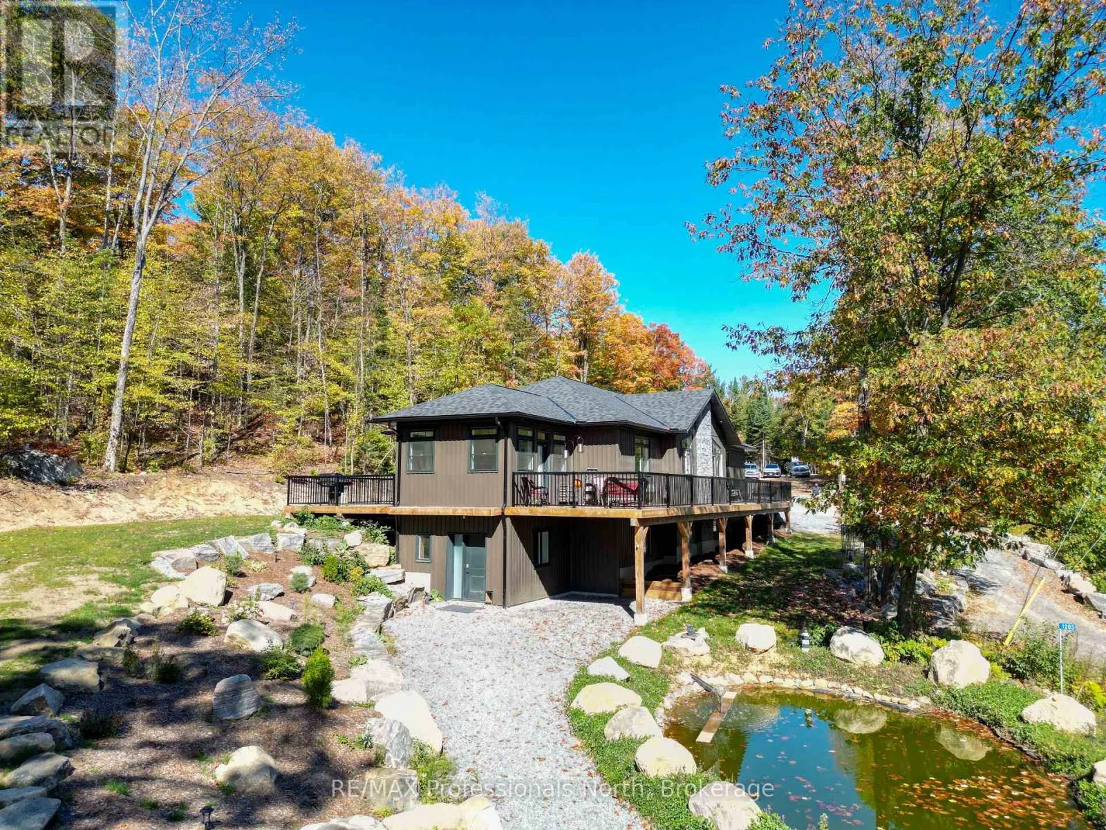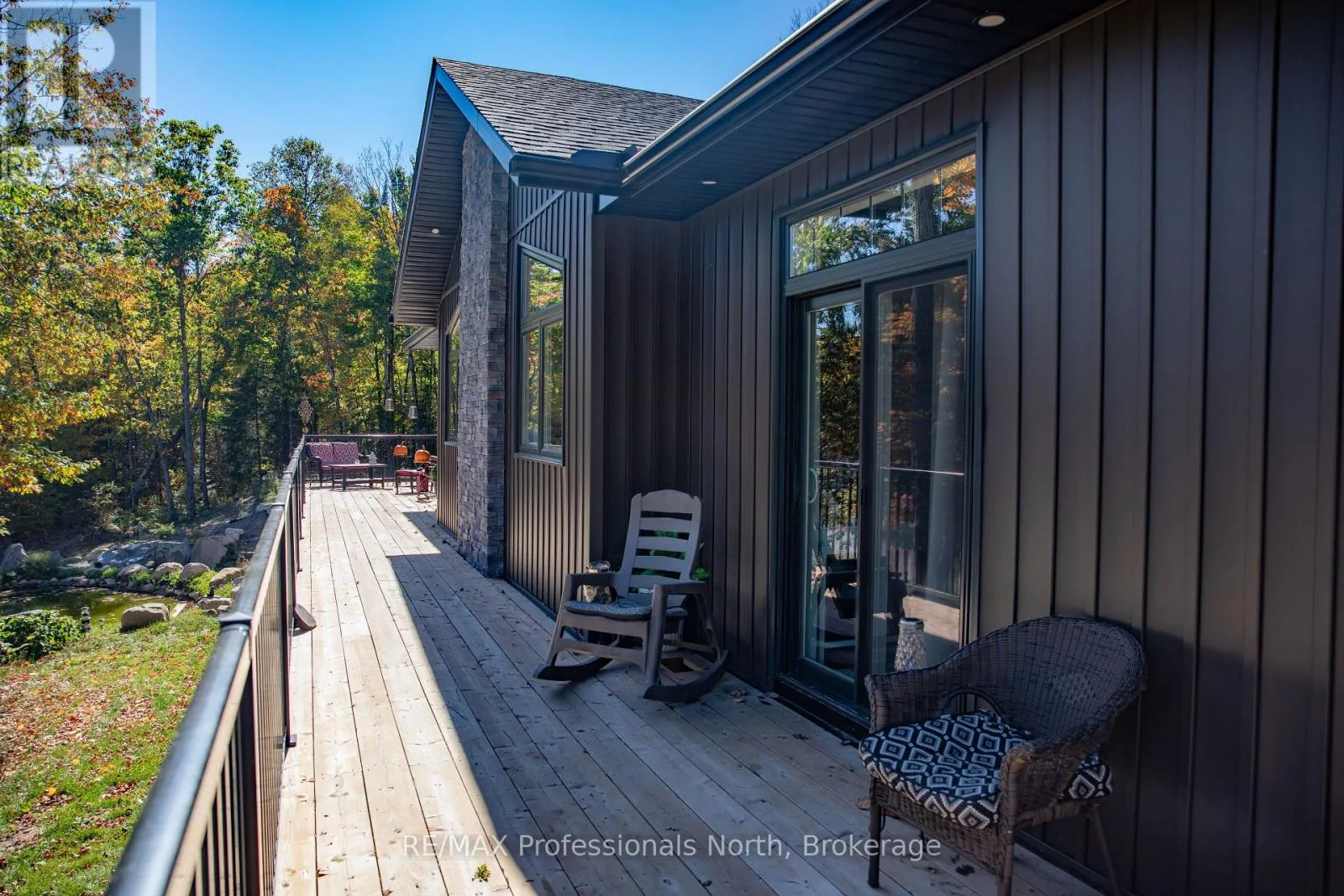 Cross Streets: Brunel Road. ** Directions: Turn off Brunel Road onto Burlmarie Road, house is on the left. Welcome to 1203 Burlmarie Road! This large new custom built move-in ready home is conveniently located in Baysville, close to downtown and the many amenities the area has to offer. Just across the road and overlooking Bastedo Bay on Lake of Bays, the home sits on over 1 Acre and features nearly 2,000 sqft of finished main floor living space both open concept and private that includes 2 + 1 bedrooms and 3 bathrooms. The main floor boasts a huge kitchen with views of the backyard and open concept living and dining for interaction with guests. A Muskoka room, laundry room and access to the backyard on the main floor just off the kitchen area adds function and convenience. The sun soaked south facing Muskoka room ties into the wrap around front and back decks which provide plenty of space for enjoying a coffee in the morning or entertaining. The front yard features granite stone retaining walls, a beautiful pond, creek in the back and the side yard has a large grass area for activities. It is the perfect space to host guests coming to visit or campout on those summer evenings. The backyard is privately tucked away against the wooded backdrop. There is plenty of space for play sets, trampolines, outdoor storage, etc. The large driveway and flat area provides a great location for a future garage or storage building which the septic is oversized to accommodate. The home is well built, boasting ICF foundation walls, propane furnace, central air, HRV and drilled well. The basement is roughed in for an extra hot water tank and plumbing drains for living space and bedroom. Imagine being minutes away from the Beaches, Parks and Lakes that the area has to offer. Here, you'll have the convenience of amenities close by, and yet be surrounded by privacy & nature. Enjoy the sounds of nature from Bastedo Bay across the road, beavers splashing, ducks, geese and bullfrogs in nature's paradise. All of this, and yet a gorgeous property, only 2+ hours to the GTA and minutes to town. (id:27476)