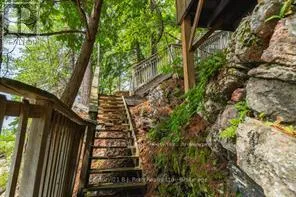 Cross Streets: Delbrooke & Bayview Point. ** Directions: ON-35 to Seabreeze Rd to Delbrooke Rd to Bayview Point Rd. This cherished family cottage is a once in a generation opportunity on the coveted shores of Lake of Bays, Muskoka. Set on nearly an acre with over 100 feet of west facing shoreline, it offers panoramic sunset views, crystal clear deep water, and a dramatic cliffside setting perfect for swimming, boating, and even a little cliff jumping. Perched atop a scenic bluff, the classic three bedroom cottage captures the essence of Muskoka living with its open concept design, lakeview deck, and metal roof that sings with the rhythm of summer rain. Move in ready, yet brimming with potential, it invites you to refresh, expand, or envision your dream retreat while preserving its timeless character. Follow the iconic 100 step cliffside staircase down to your private dock, where sun drenched days and evening swims await. Just a five minute boat ride to Dorset, you'll enjoy the perfect balance of peaceful seclusion and small town charm, from the general store and lookout tower to local markets and festivals. A rare Muskoka gem where every sunset feels like a personal invitation to slow down, connect, and create memories that last a lifetime. (id:27476)