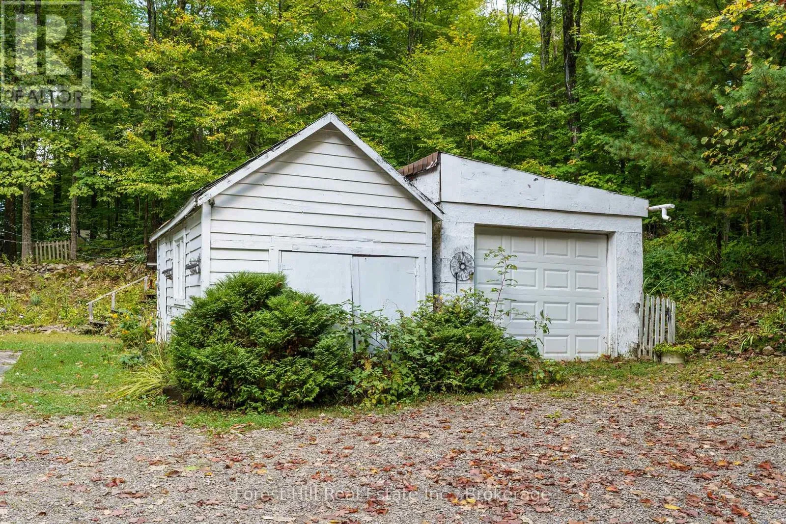 Cross Streets: Muskoka Road 117 & Longline Lake Road. ** Directions: Muskoka Road 117 to Longline Lake Road. Cosy, reasonably-priced Muskoka cabin-in-the-woods with its own walking trail on 1.4 acres together with a separate waterfront lot that is located across the road with an existing dock & 100 feet of sandy/natural shore. Detached garage and spacious shed. Rock garden and fire pit. The cabin is mostly insulated with propane heater, where owner has lived there in the winter. There's hot & cold running water and air conditioning. 220' drilled well. Septic system. 4-piece bathroom. Roofs replaced (2018) on cottage, garage and shed. Approval has been granted to expand the size of the dock and to build a shed on the waterfront lot. Great bass & trout fishing! Access to a large network groomed snowmobile trails nearby, which are also fun to use with ATV's, mountain bikes or hike on when there's no snow. Convenient, 4-season township-maintained road. Ideally located bewteen the charming towns of Dorset and Baysville. There's nearby marinas to keep a boat at a dock and use, to explore Lake of Bays (or other lakes), if the small lake tranquility gives you the occasional urge to do more boating. Only 2 1/4 hrs from Toronto! (id:27476)