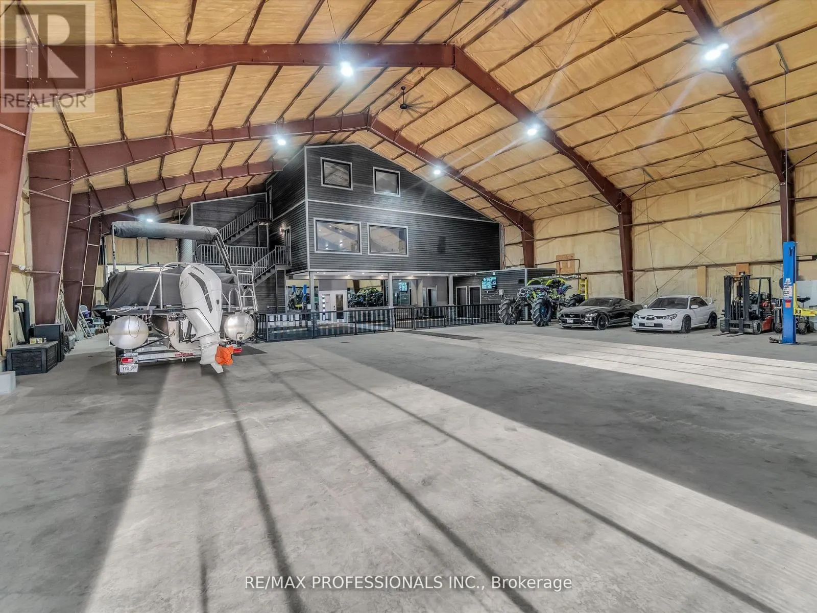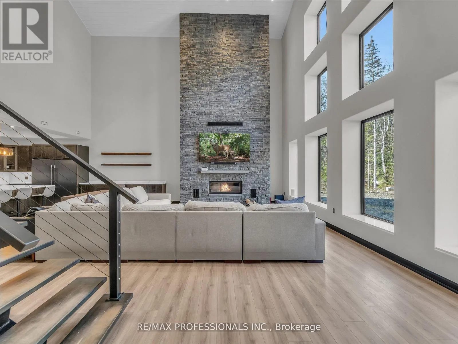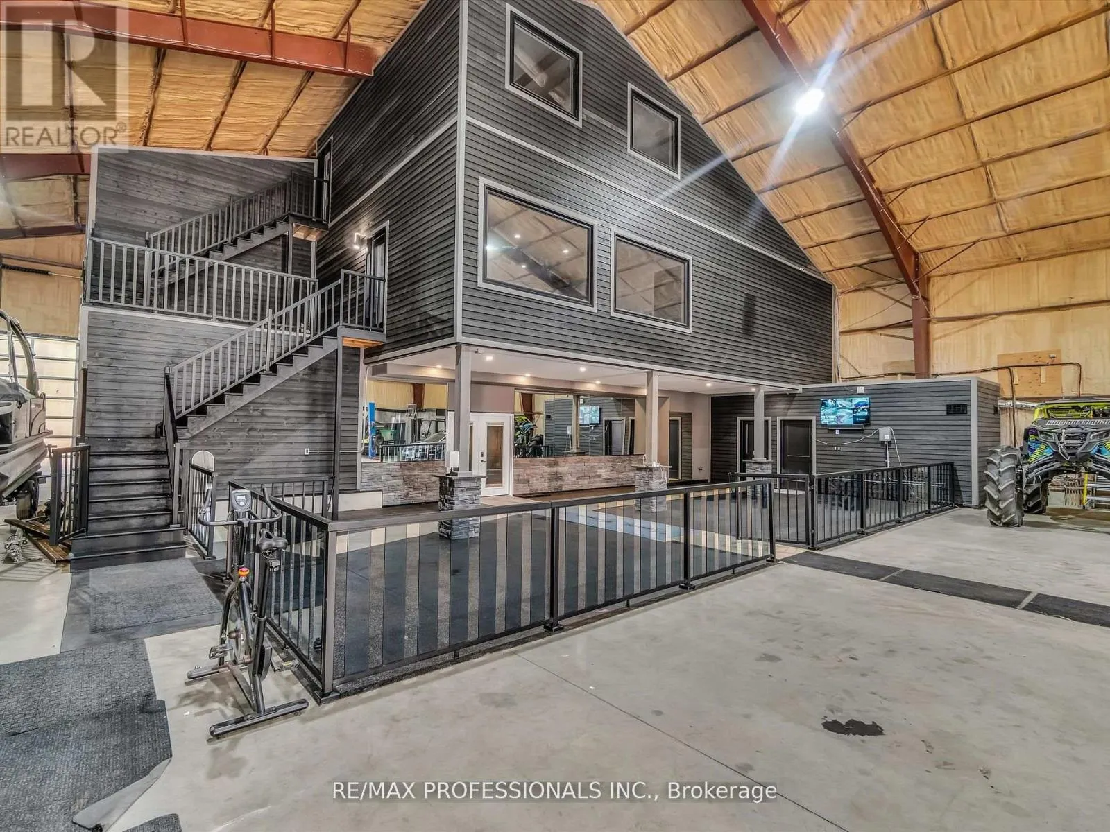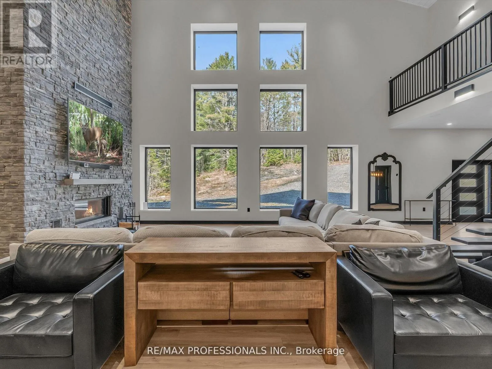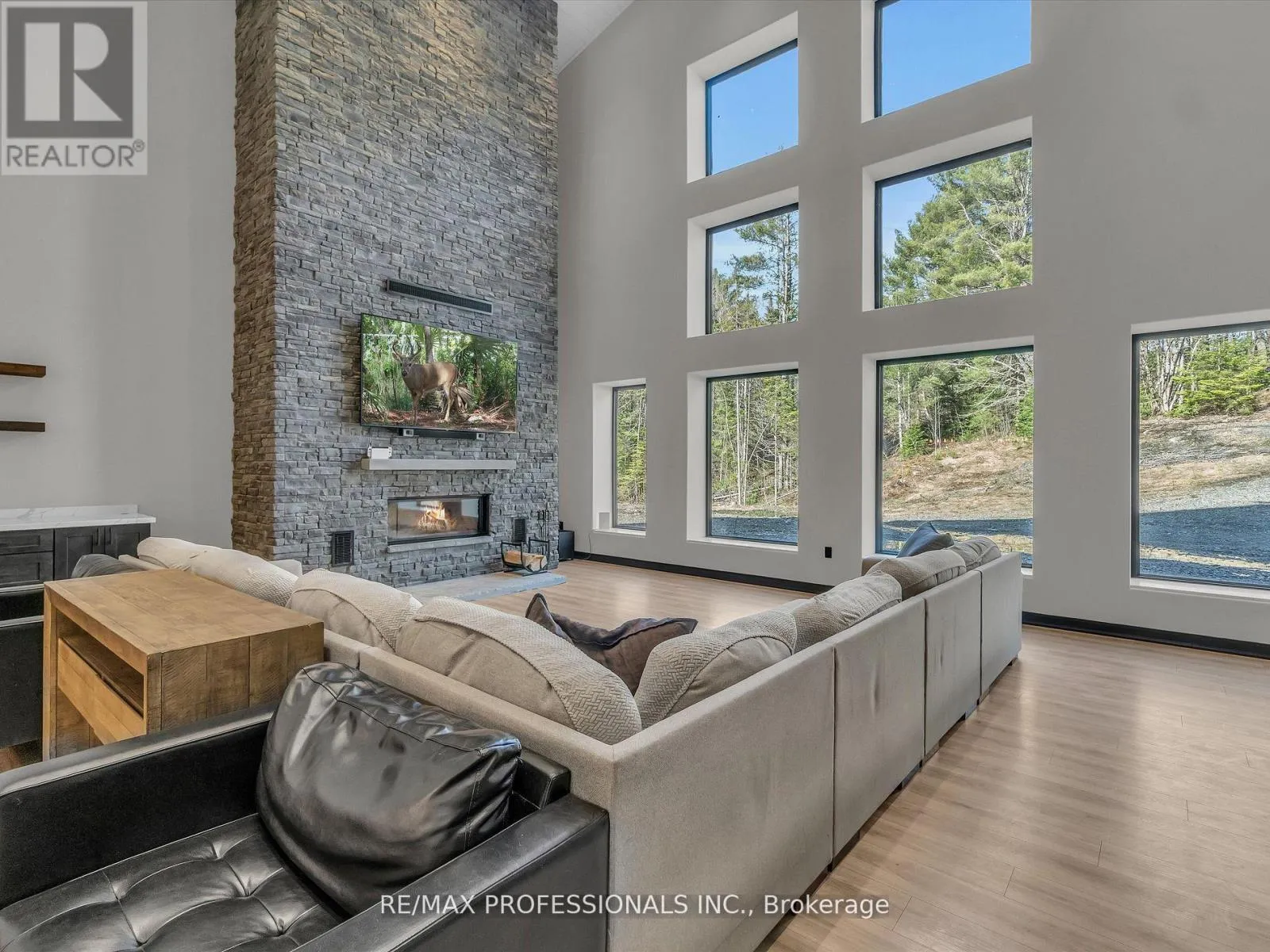 Hwy 11 / Hwy 117 or Hwy 117 / Brunel Rd Discover Your Dream Muskoka Retreat! Welcome to this one-of-a-kind 5 bedroom, 5 bathroom 120ft x 80ft compound, nestled on over 8 acres of pristine land in Lake of Bays, perfectly located just minutes away from the charming town of Baysville, where you can easily dock your boat and enjoy Muskoka's second largest lake! This stunning property offers a unique blend of hobby farm potential and live/work opportunities in the heart of beautiful Muskoka, only a short drive from Bracebridge and Huntsville. Highlights include: A serene 0.5 acre pond fed by fresh natural springs, all framed by a breathtaking granite backdrop, 26Kw backup generator ensuring your comfort with auto on/off capability, cozy, energy-efficient in-floor heating powered by two 200k NTI boilers with state-of-the-art floor sensors and zoning controls, an impressive 9,000 Sq/ft Unilock patio featuring a built-in BBQ, perfect for entertaining! Inside the luxury continues with a gorgeous interior. Step inside to find a grand open-concept layout with towering 45-foot ceilings, complemented by an exquisite chefs kitchen equipped with triple ovens, a professional gas stove, and an oversized fridge/freezer - all anchored by a massive kitchen island! The primary suite offers a personal sanctuary with a fireplace, walk-in closet, and a spa-like bathroom featuring a freestanding tub overlooking natures beauty. Plus, there's a wheelchair accessible main floor bedroom/ensuite for convenience! Additional Features: 3 industrial garage doors for easy access to your workspace, a sophisticated camera system for peace of mind, and two cellular boosters ensuring crystal-clear LTE, Starlink internet with impressive speeds of 200 down and 50 up, keeping you connected while you enjoy your private trails and every outdoor adventure! Whether you are seeking a peaceful retreat or a dynamic living-work space, this property is tailored for both leisure and productivity! Don't miss the chance to experience this slice of paradise! (id:27476)