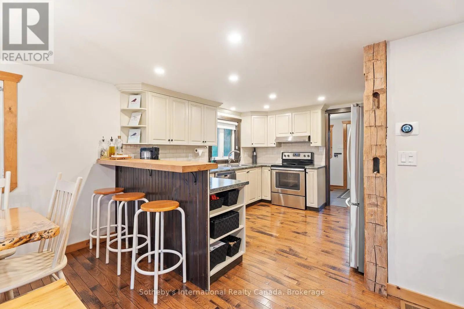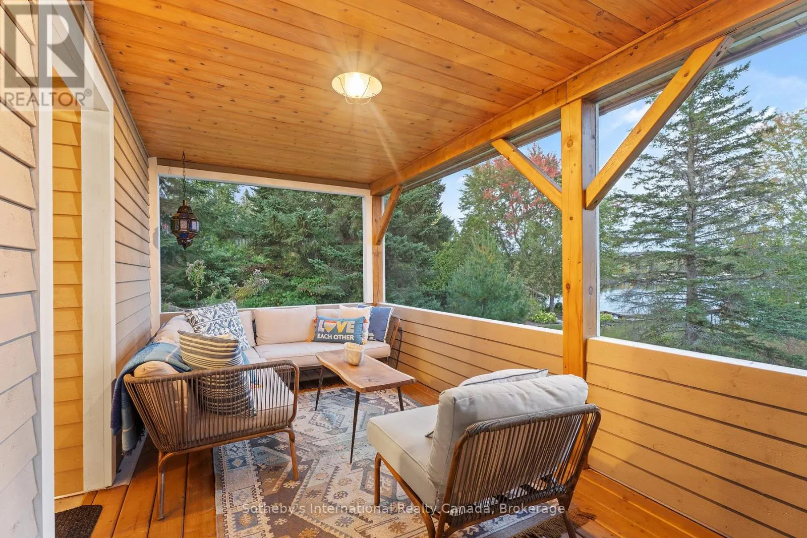 Cross Streets: Hwy. 60 & Maplehurst Dr. ** Directions: Hwy. 60, to Maplehurst Dr., keep right, to 1111 Maplehurst Dr. Welcome to 1111 Maplehurst Dr., a stunning, fully renovated cottage on Peninsula Lake with year-round access. This turnkey property is a nature lovers dream, offering an escape that feels both serene and convenient. With 120 feet of private, south-facing waterfront, you can start your day with a peaceful dip from the gentle entry and spend your afternoons on the dock, which comes equipped with a hydraulic boat lift. Boating enthusiasts will love the direct access to over 40 miles of shoreline on the Huntsville chain of lakes. The flat, grassy lawn is a great space for family games, while the spacious deck, featuring a retractable awning, is ideal for relaxing with a drink and enjoying the views. As the sun sets, the beautiful fire pit by the water provides the perfect backdrop for memorable evenings. Also, the property is surrounded by protected land that attracts a variety of wildlife and bird species. Inside, the three-bedroom cottage is thoughtfully designed. The main level is great for kids, with a double-bunk room, a sitting area, and a screened porch. Upstairs, you'll find two additional bedrooms, an open-concept kitchen, living, and dining area, ideal for family gatherings and entertaining. For your peace of mind, the cottage is equipped with an automatic generator, so you never have to worry about power interruptions. When you want to explore, you're only a 10-minute drive from the town of Huntsville and the village of Dwight, where you'll find everything from a local bakery and pharmacy to a butcher shop and grocery store. This exceptional, year-round property offers a true escape surrounded by protected land and abundant wildlife. Special features include generator, security cameras, retractable awing, water treatment, fully furnished with some being custom. (id:27476)