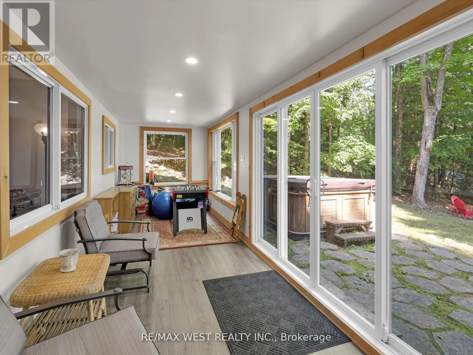 Highway 117 east of Baysville bridge. Take Ril Lake Road 7 km east then South Ril Road to McArthur Point A Hidden Gem & Turn-Key Muskoka Waterfront Retreat. Welcome to a true hidden gem on the tranquil shores of Ril Lake in the heart of Lake of Bays, Muskoka. From the road, it may appear to be a modest bungalow, but step inside and discover a beautifully expanded, thoughtfully renovated two-story retreat that effortlessly combines rustic Muskoka charm with modern comfort and elegance. This fully furnished, four-season home offers over 83 feet of private, sandy-bottom shoreline with a rare boathouse at the waterline, perfect for storing water toys or casting a line right from shore. Whether you're searching for a family sanctuary, an income-ready investment, or a peaceful year-round residence, this property invites you to step out of the ordinary and into your own Muskoka story. Inside, the open-concept main floor welcomes you with a sunlit living room centered around a gas fireplace, flowing into a dining area, sitting nook, and work space all wrapped in stunning views of the trees and lake. Downstairs, a spacious family room with a wood-burning fireplace sets the stage for cozy nights, while the bright sunroom offers the perfect place for games, reading, or afternoon naps. There's also a roughed-in sauna room, waiting to become your personalized wellness space. Step outside and the magic continues. A hot tub tucked beneath the trees, a gazebo with a propane fire table, Muskoka chairs perfectly placed for sunset watching, and a private dock with a canoe, kayaks, and SUP. Everything is here and ready to enjoy! This is more than a cottage. It's a ready-made experience. Whether you're roasting marshmallows under starlit skies, hosting a family get-together, fishing from your dock, or simply sipping coffee in the sunroom, every moment here feels intentional and full of heart. Just bring your people, your provisions, and your love for the Muskoka lifestyle. The rest is already here, waiting for you. Wow, the seller is offering Vendor Take-Back at just 2%. (id:27476)