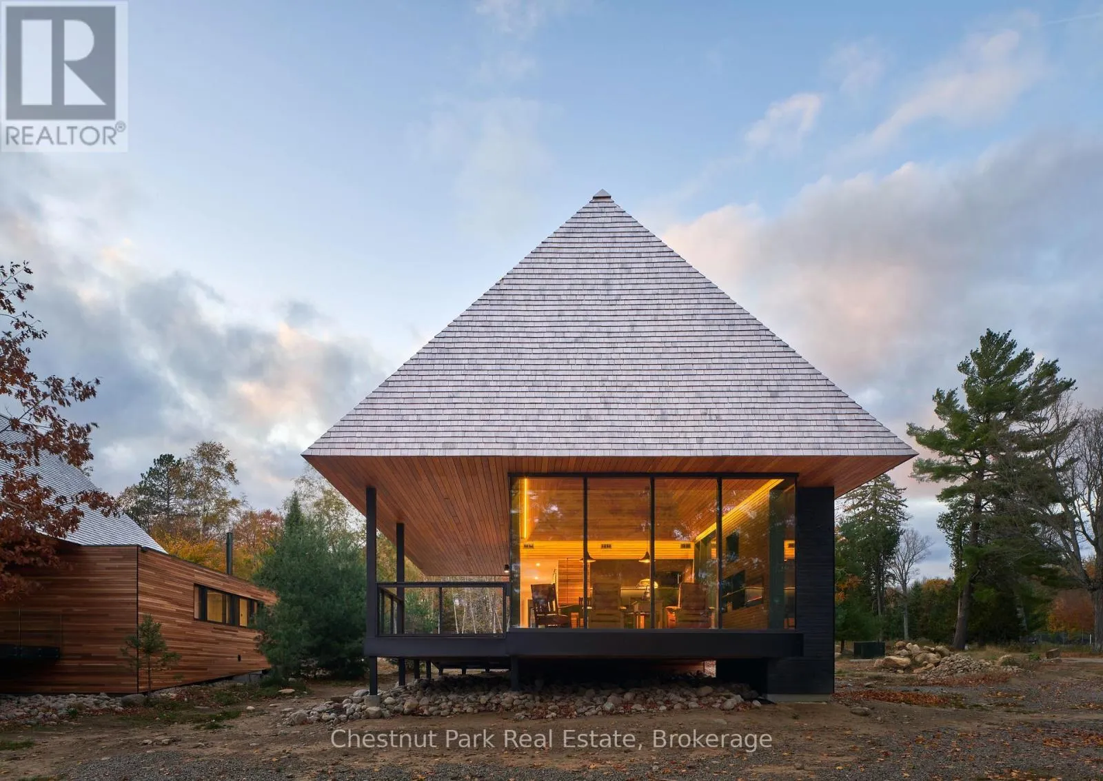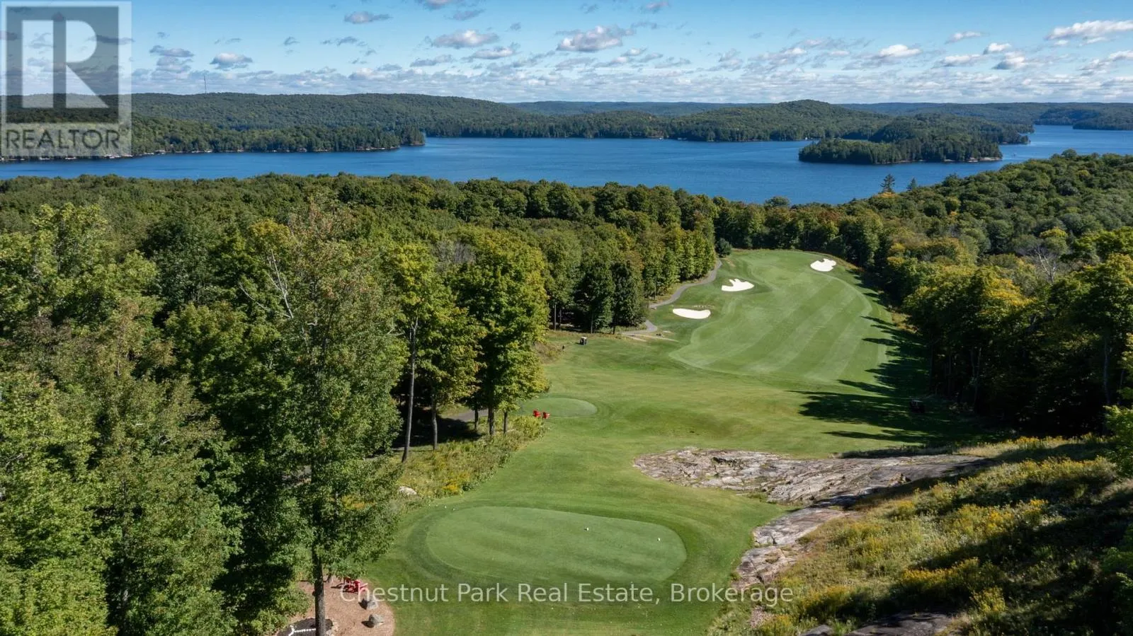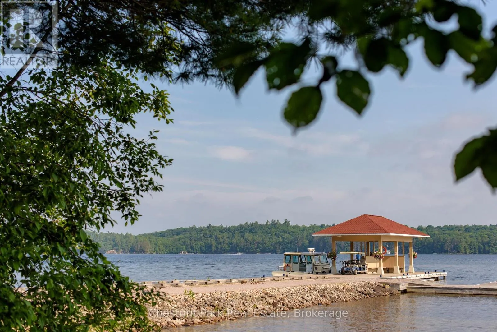 Cross Streets: Glenmount Road - Norway Point. ** Directions: 45.241251, -79.026162. Overlooking the iconic 18th green on Bigwin Island, with spectacular views of Lake of Bays, this rare offering features one of only three award-winning, fully furnished, two-bedroom Club Cabins designed by MacKay-Lyons Sweetapple Architects. Move-in ready for the upcoming season, it also provides the opportunity to obtain membership in the sold-out Bigwin Island Golf Club, giving access to an exclusive 18-hole championship course, practice facilities, clubhouse dining, and member services.Thoughtfully planned with sustainability, natural materials, and low-maintenance living in mind, the cabin offers an open-concept great room, well-appointed kitchen, two bedrooms, and seamless indoor-outdoor spaces oriented to golf and lake views. The property forms part of an intimate nine-unit vacant land condominium with its own private waterfront, one exclusive-use dock slip, and shared conveniences that simplify ownership and enhance lock-and-leave use.Within walking distance of the main clubhouse, driving range, short-game area, tennis facilities, and over 7 km of interior walking and jogging paths, this is a complete lifestyle package on a 520-acre private island with over 26,000 ft of shoreline on Lake of Bays. Ideal for downsizing while remaining on the lake, or as premium guest and recreational space to complement an existing family cottage, this Club Cabin delivers a turnkey way to experience Bigwin Island's architecture, history, and world-class recreation. Price includes the cost of the golf membership, which is valued at $175K and price is exclusive of HST. Membership purchase is subject to the Clubs nomination and Board Approval process. Act now...this will not last long. (id:27476)