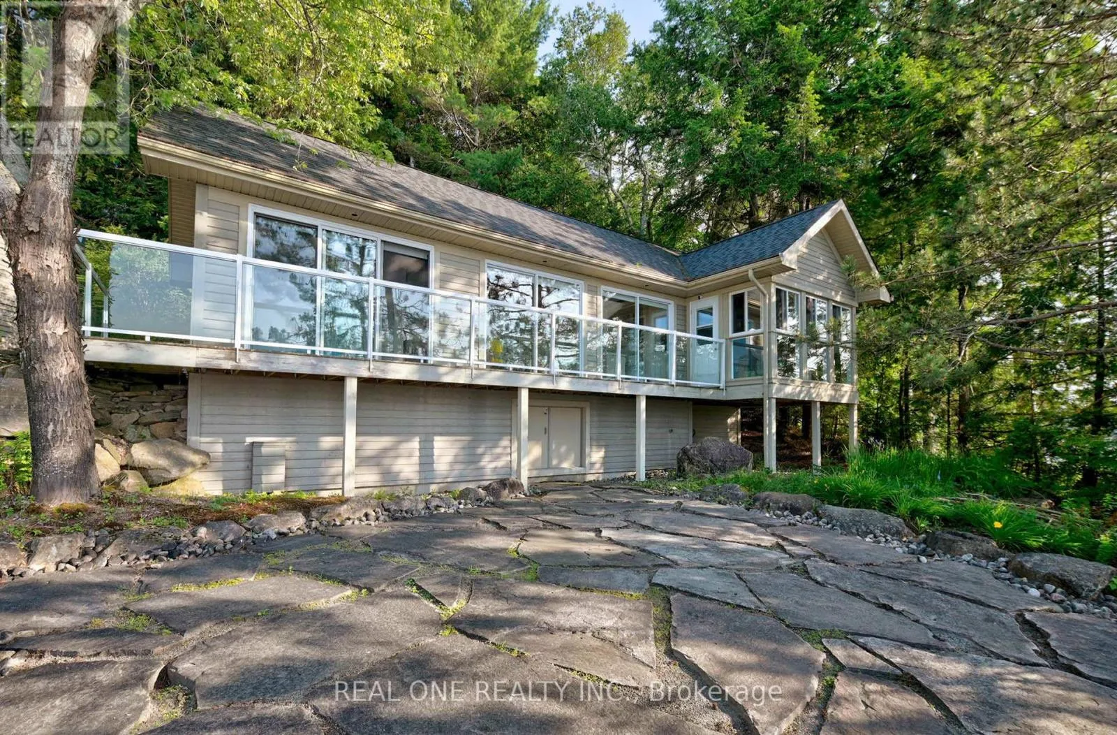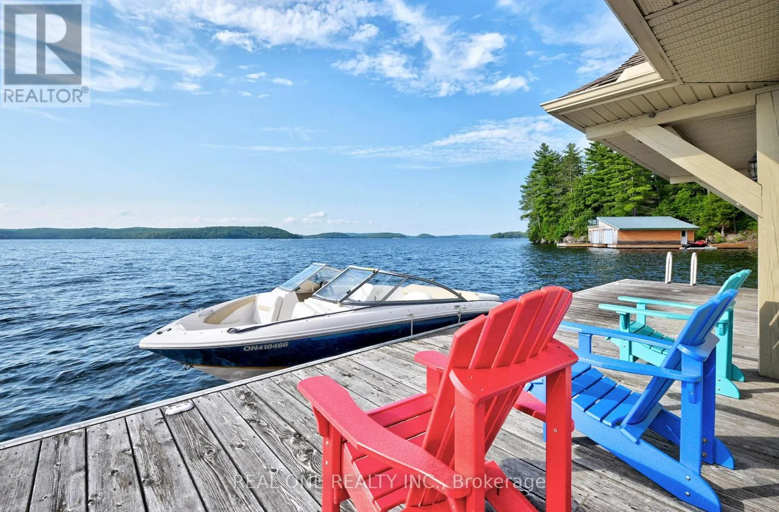 Muskoka 117 to East of Baysville Prime Lake of Bays waterfront just outside Baysville, only a two-hour drive from the GTA, featuring 220 feet of pristine shoreline. This executive family compound offers two beautifully designed cottages. The main cottage boasts three bedrooms and two bathrooms, with a spacious open-concept Great Room that opens onto a 780 sq. ft. porch-perfect for entertaining or relaxing. The fully equipped two-bedroom and one bathroom guest cottage, complete with its own kitchen, is connected by professionally crafted stone pathways and patios, creating a seamless and inviting retreat for family and guests. Just steps from the water, the property includes a two-slip boathouse and generous dock, ideal for swimming, boating, and lakeside living. Enjoy breathtaking sunsets in this serene, private setting, while remaining just minutes from Bigwin Island. (id:27476)