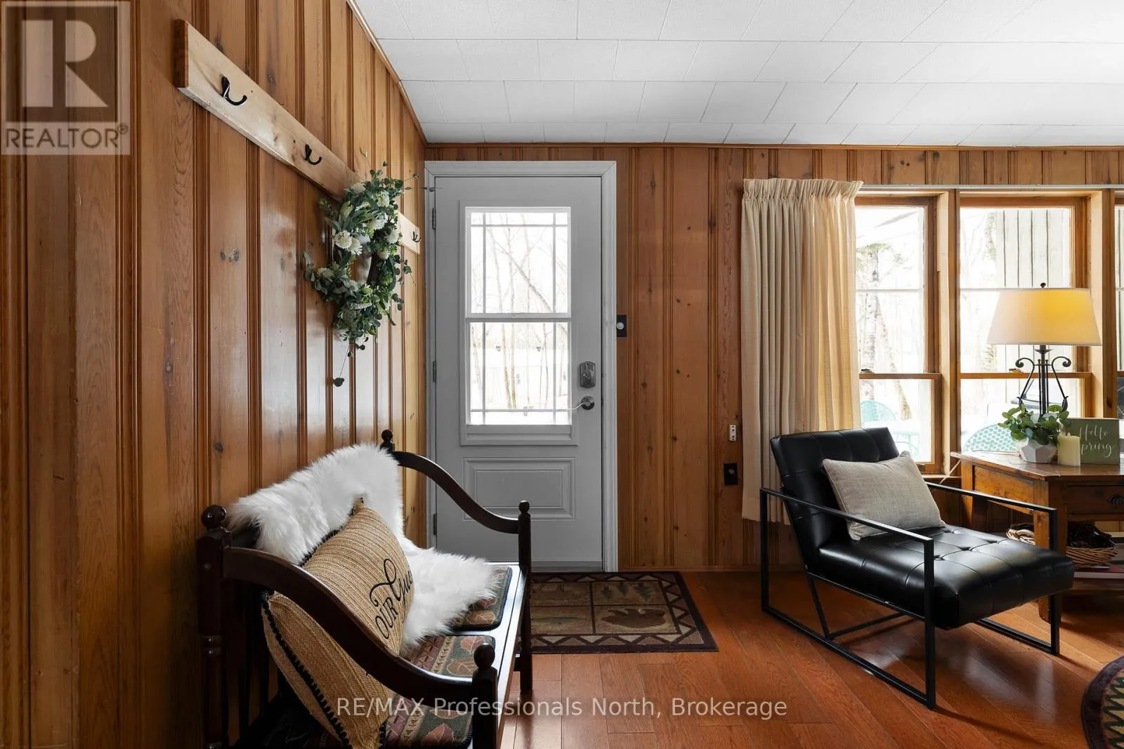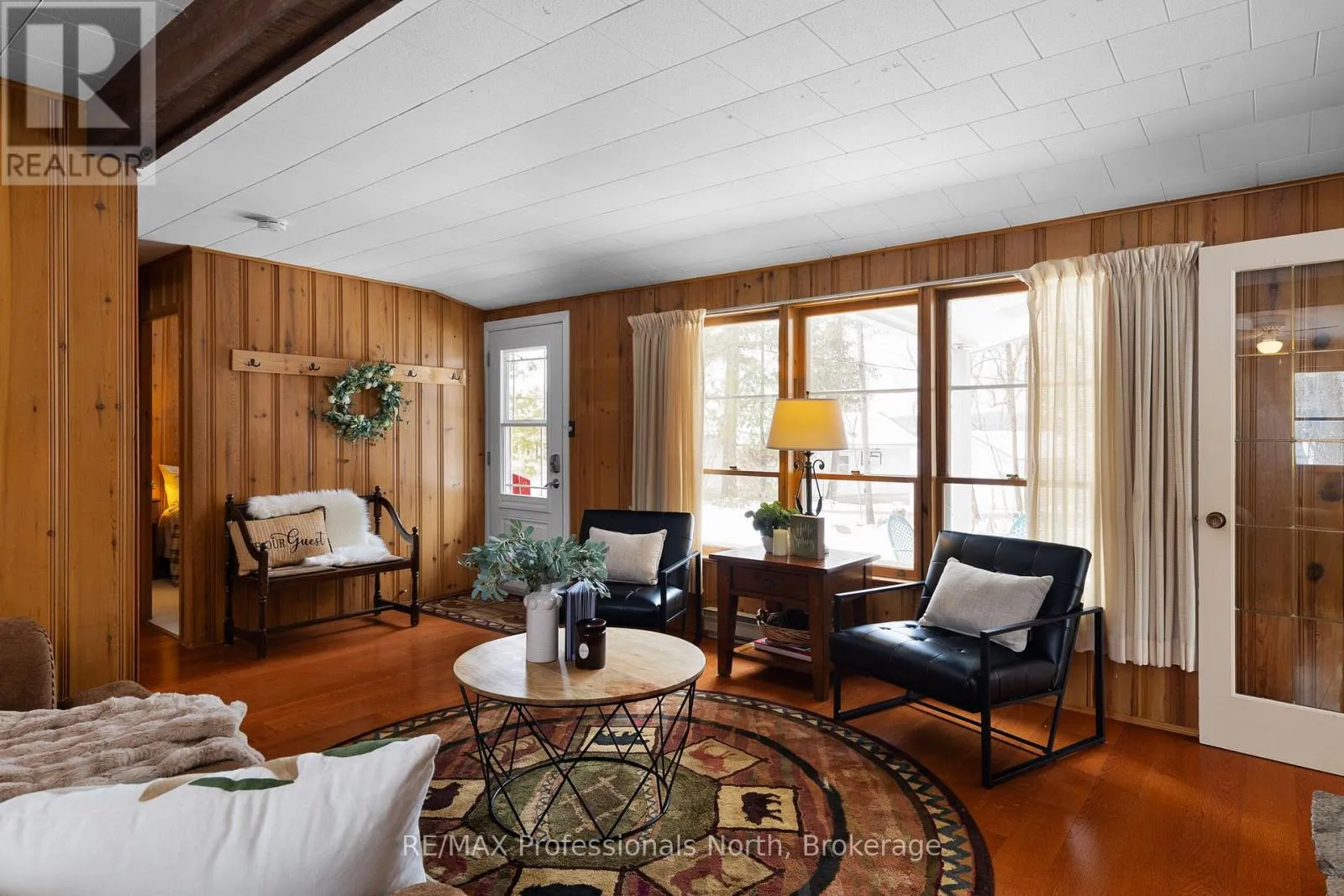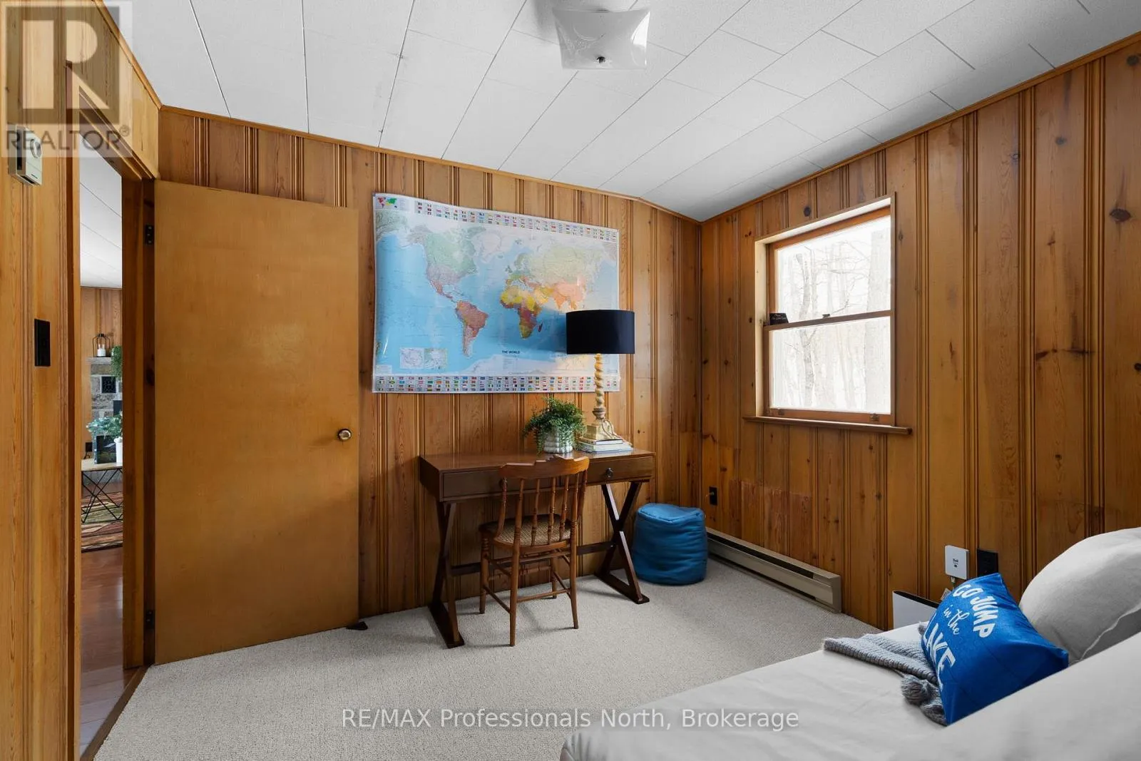 Cross Streets: Tally Ho Beach Road & Highway 60. ** Directions: Highway 60 to Tally Ho Beach Road Road, property will be the first driveway on the right before the boat launch/beach area. Tucked quietly along the sought-after Hwy 60 corridor, just moments from the iconic entrance to Algonquin Park, this inviting Muskoka retreat offers that rare blend of nature, nostalgia, and attainable waterfront enjoyment. Set amongst the trees with peaceful views over Pen Lake, and only steps to the beach and boat launch, it is the kind of place where mornings begin with birdsong and coffee on the deck, and evenings wind down by the fire under a canopy of stars. Inside, the warmth of pine-lined walls brings you back to a time when cottages were simple, soulful, and built for gathering. The classic Muskoka stone fireplace, now thoughtfully updated with a modern propane insert anchors the living space, inviting long conversations, cozy movie nights, and that unmistakable relaxed feeling. An additional living area offers flexibility for families to spread out, relax, and reconnect. The kitchen is both functional, welcoming and has a touch of retro, with an eat-in layout, breakfast counter, and dedicated dining area that naturally becomes the heart of the home. With three comfortable bedrooms plus a flexible office or den, there's room here for work, rest, and everything in between-whether you are hosting weekend guests or settling in for a longer stay. Outdoors, this property truly shines. The oversized detached double garage is ready to house all your Muskoka essentials-from boats and snowmobiles to tools and toys-while the bonus outbuilding opens the door to future possibilities as a bunkie or creative retreat. Located in the heart of Lake of Bays District, minutes to Huntsville, this is your opportunity to enjoy the Muskoka lifestyle-close to water, wrapped in nature, and without the premium price tag of traditional waterfront. A place where memories are made, stories are shared, and the pace of life feels exactly right. (id:27476)