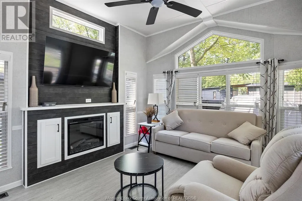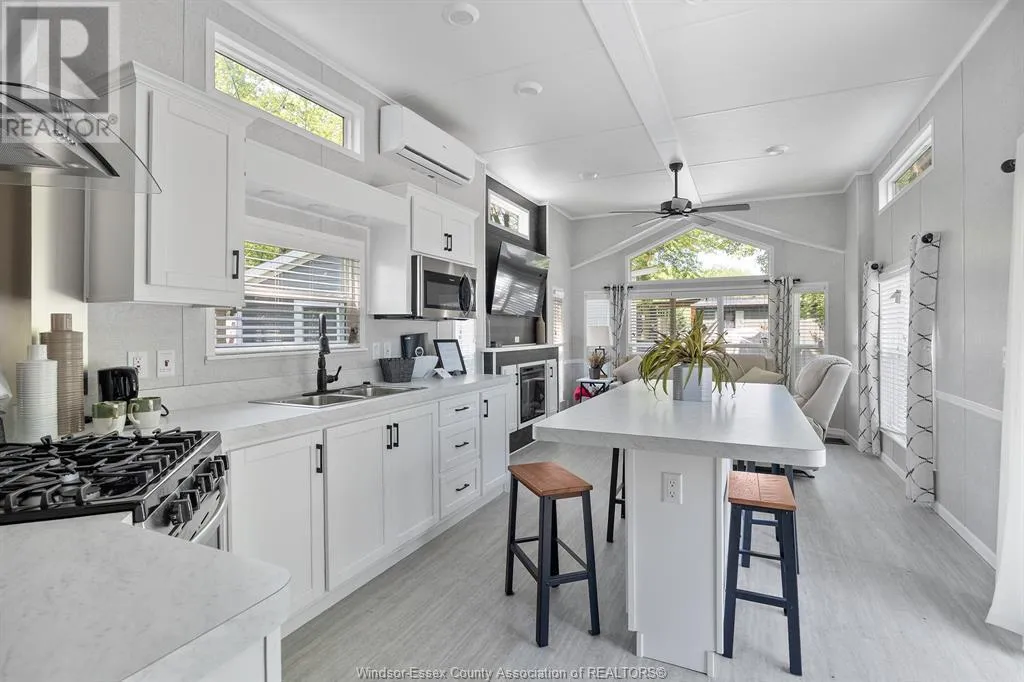 Welcome to the Euro Villa Park Model Home at Rochester Place Golf Club & Resort, where comfort meets style in a prestigious, private community. This fully furnished 2-bedroom home features a bar-height eat-in kitchen island, perfect for casual dining and entertaining. The home boasts raised ceilings, creating a spacious and airy feel, while ample storage ensures you have room for all your essentials. The beautifully landscaped exterior offers a peaceful retreat to enjoy the outdoors. With all the amenities Rochester Place has to offer, including access to the golf course, pool, and more, you can indulge in a relaxing and active lifestyle all summer long. The park is open from May to October, making this the perfect seasonal getaway or home base for your next adventure. (id:27476)
