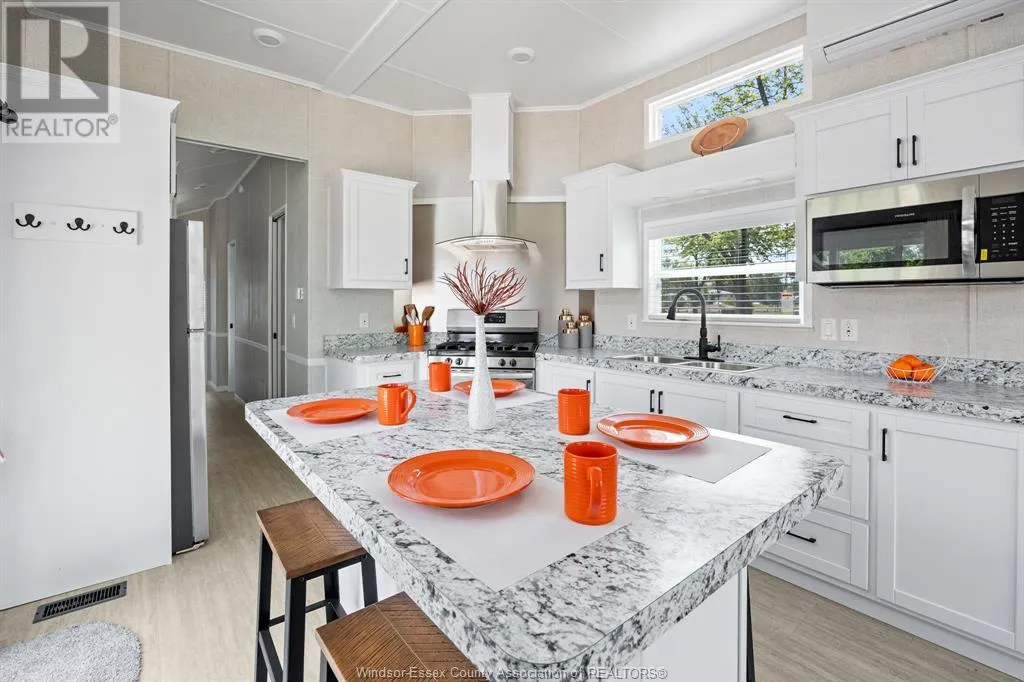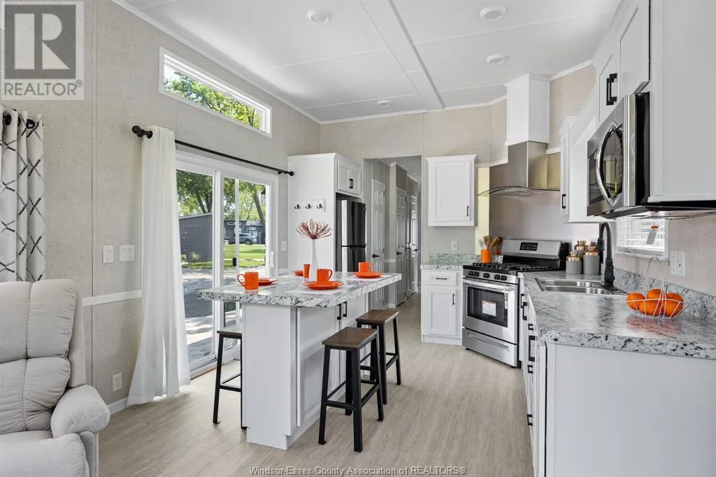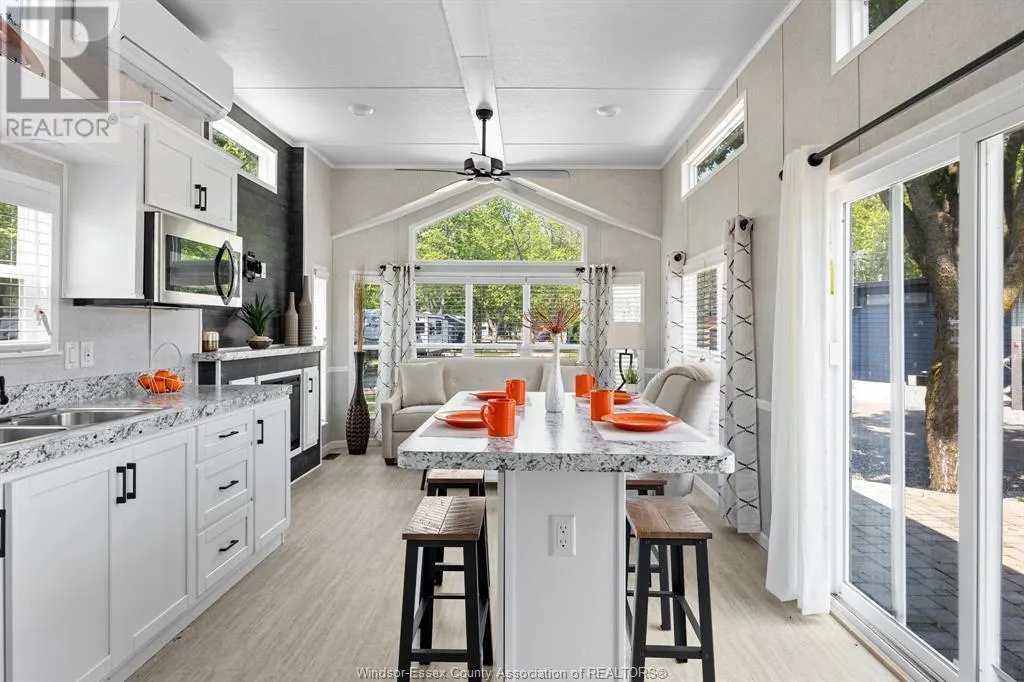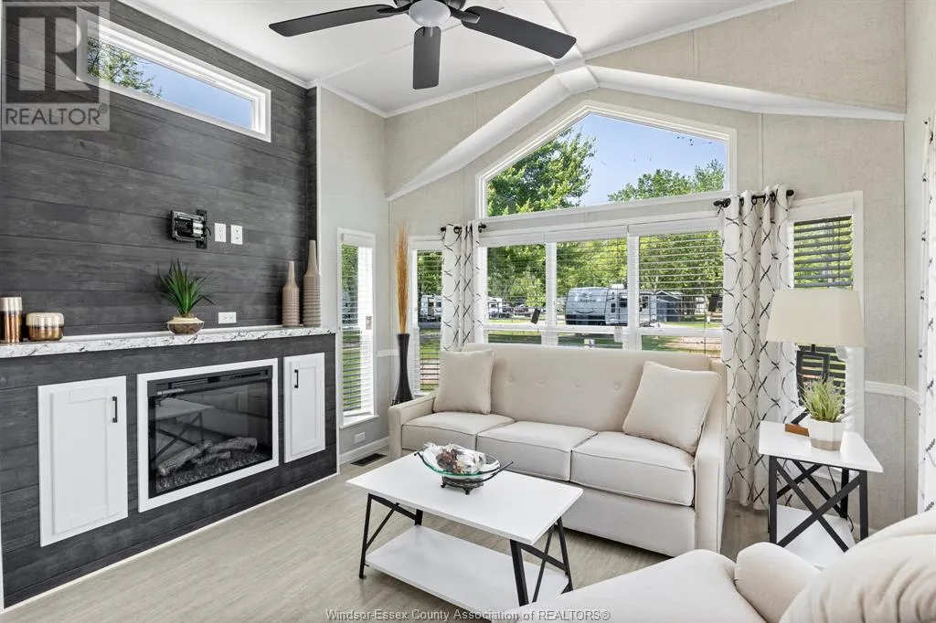 Welcome to the Hopewell Park Model Home at Rochester Place Golf Club & Resort, a charming retreat offering both comfort and style in a prestigious, private community. This fully furnished 2-bedroom home sleeps 6, making it perfect for family getaways or hosting guests. The home features a bar-height eat-in kitchen island, ideal for casual meals and entertaining, along with raised ceilings that create a spacious, open atmosphere. Large windows throughout bring in plenty of natural light, enhancing the airy and bright feel. With ample storage and beautifully landscaped surroundings, this home provides a peaceful escape. Enjoy all the amenities Rochester Place has to offer, including access to the golf course, pool, and more, from May to October. This is the perfect seasonal getaway or a home base for your summer adventures! (id:27476)